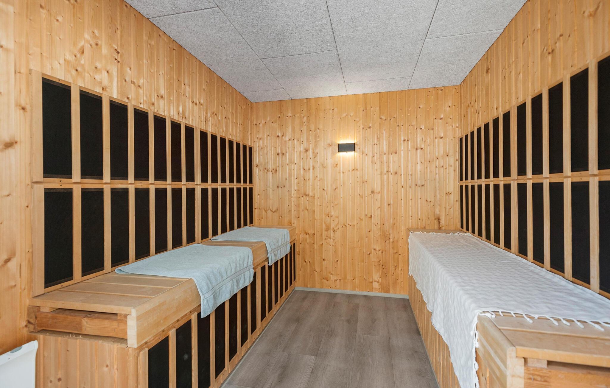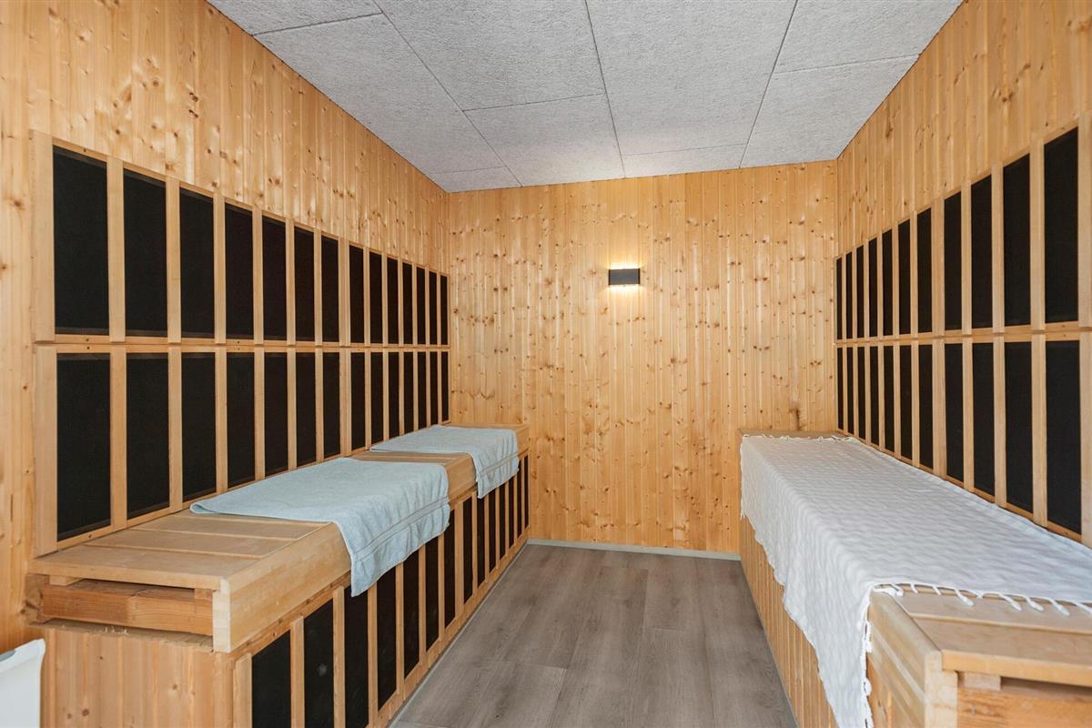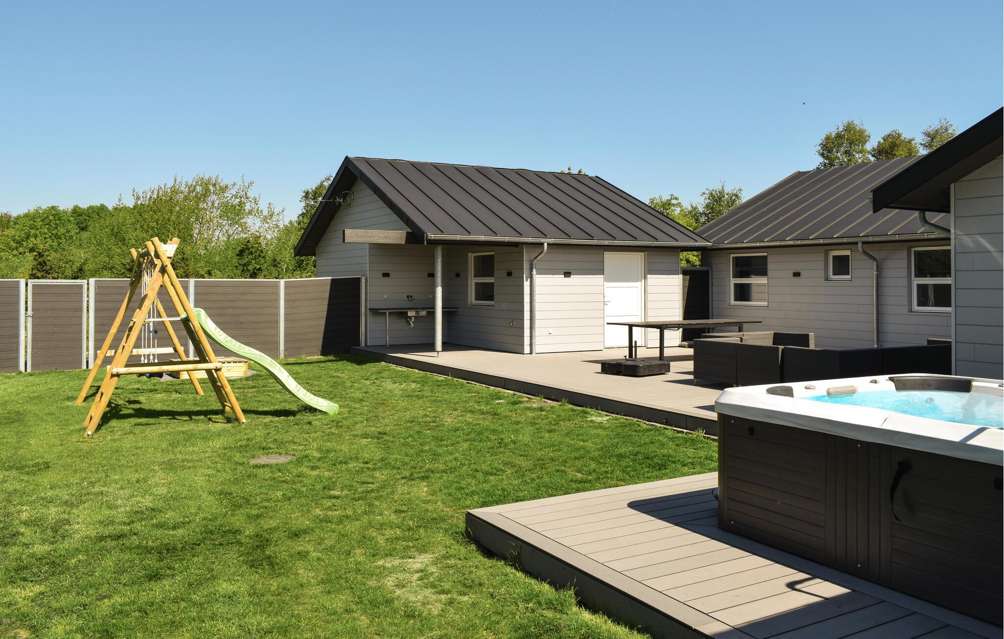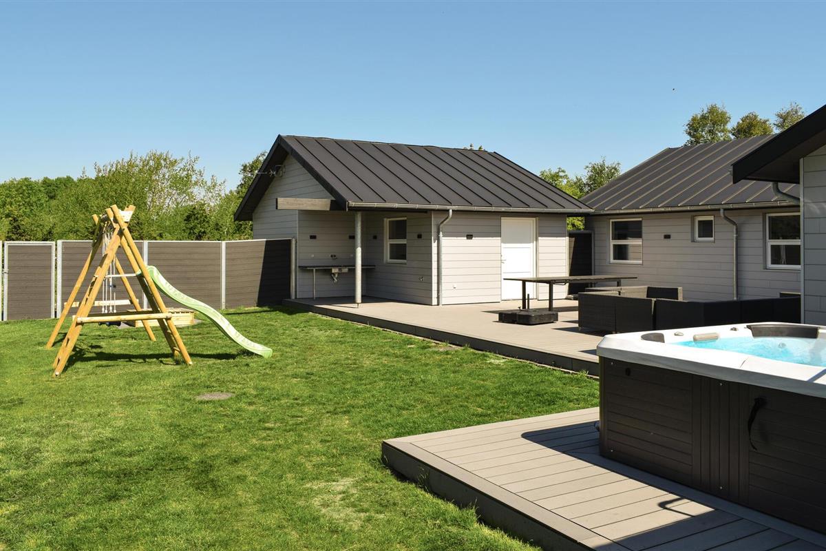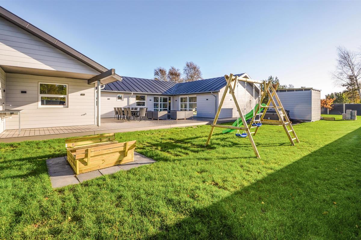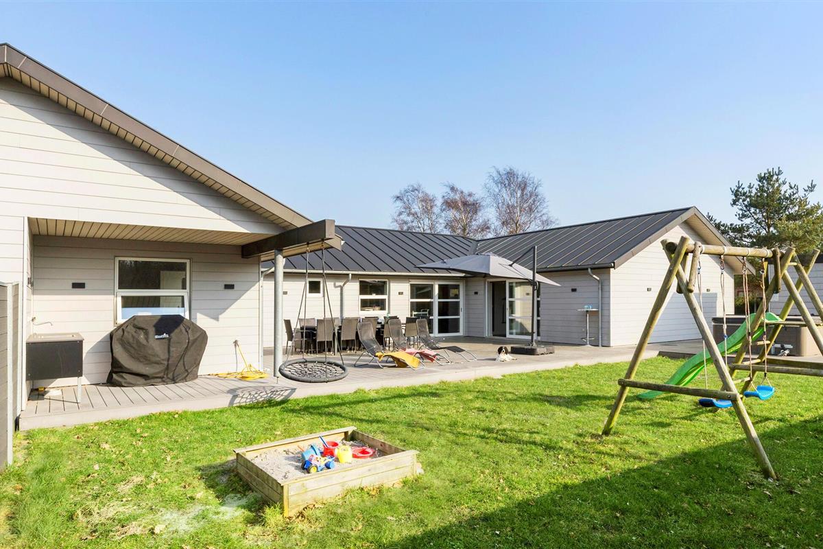 Modern vakantiehuis aan Øer Strand met sauna, whirlpool en veel recreatie.