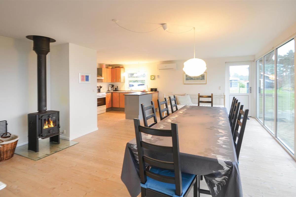 In een populair gebied buiten de stad Ebeltoft ligt dit gezinsvriendelijke vakantiehuis met uitzicht op de zee. Via het fietspad bereikt u de stad en het strand. Geniet van dit mooie vakantiehuis, dat licht en modern is ingericht en een open keuken/woonkamer heeft. Grote slaapzolder met uitzicht voor één persoon, waar u rechtop kunt staan. Het huis is bijna volledig omgeven door terrassen waar u beschut tegen de wind in de zon kunt liggen. Prachtig overdekt terras waar u 's avonds kunt dineren bij de laatste zonnestralen. Het gebied is een ideale uitvalsbasis voor het verkennen van veel van de bezienswaardigheden in Oost-Jutland.