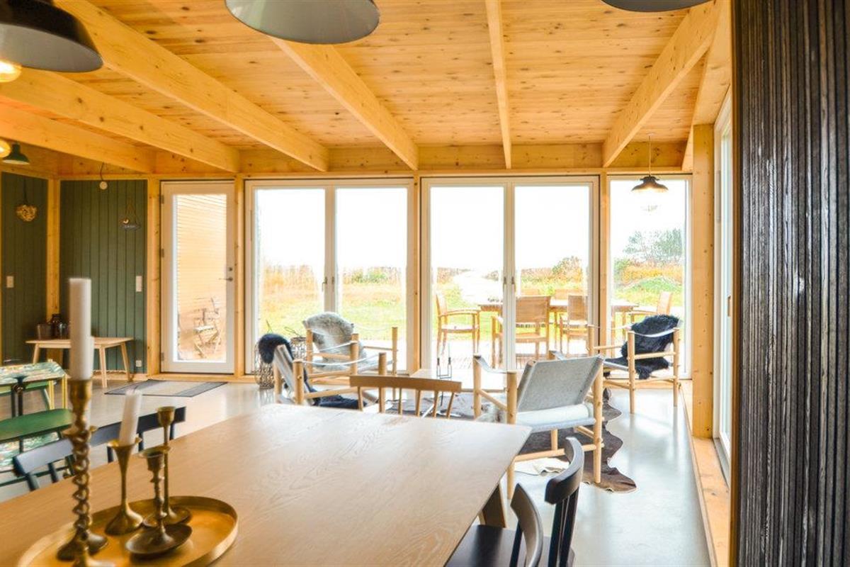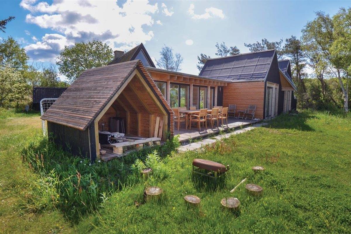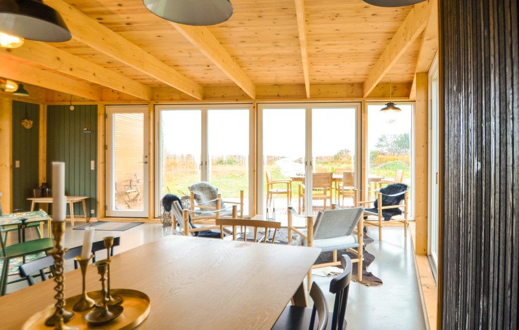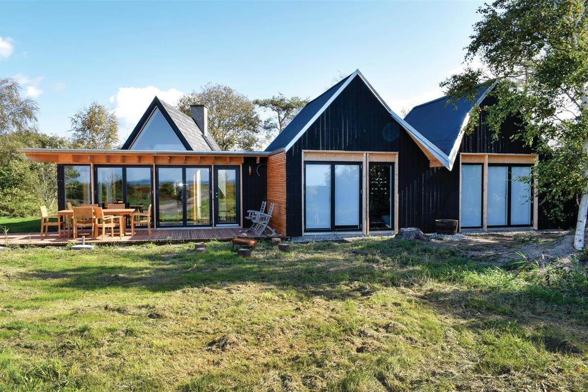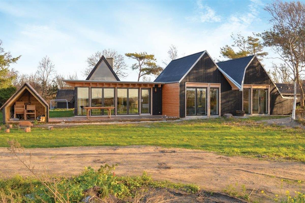 Modern vakantiehuis aan zee in Øer Strand met panoramisch uitzicht en luxe voorzieningen.