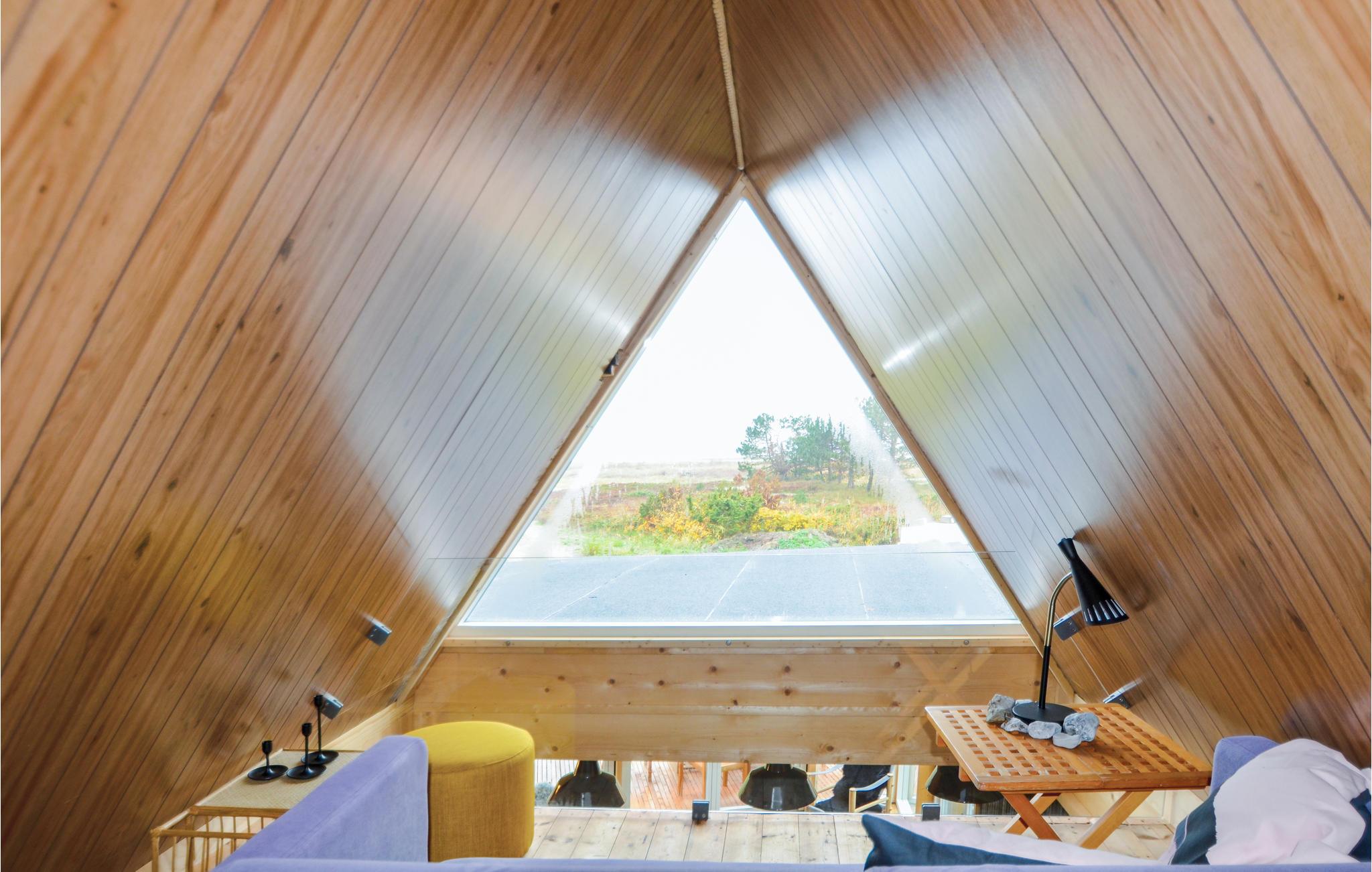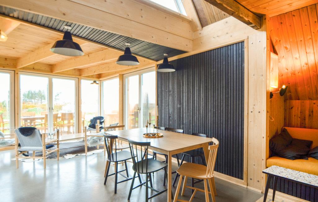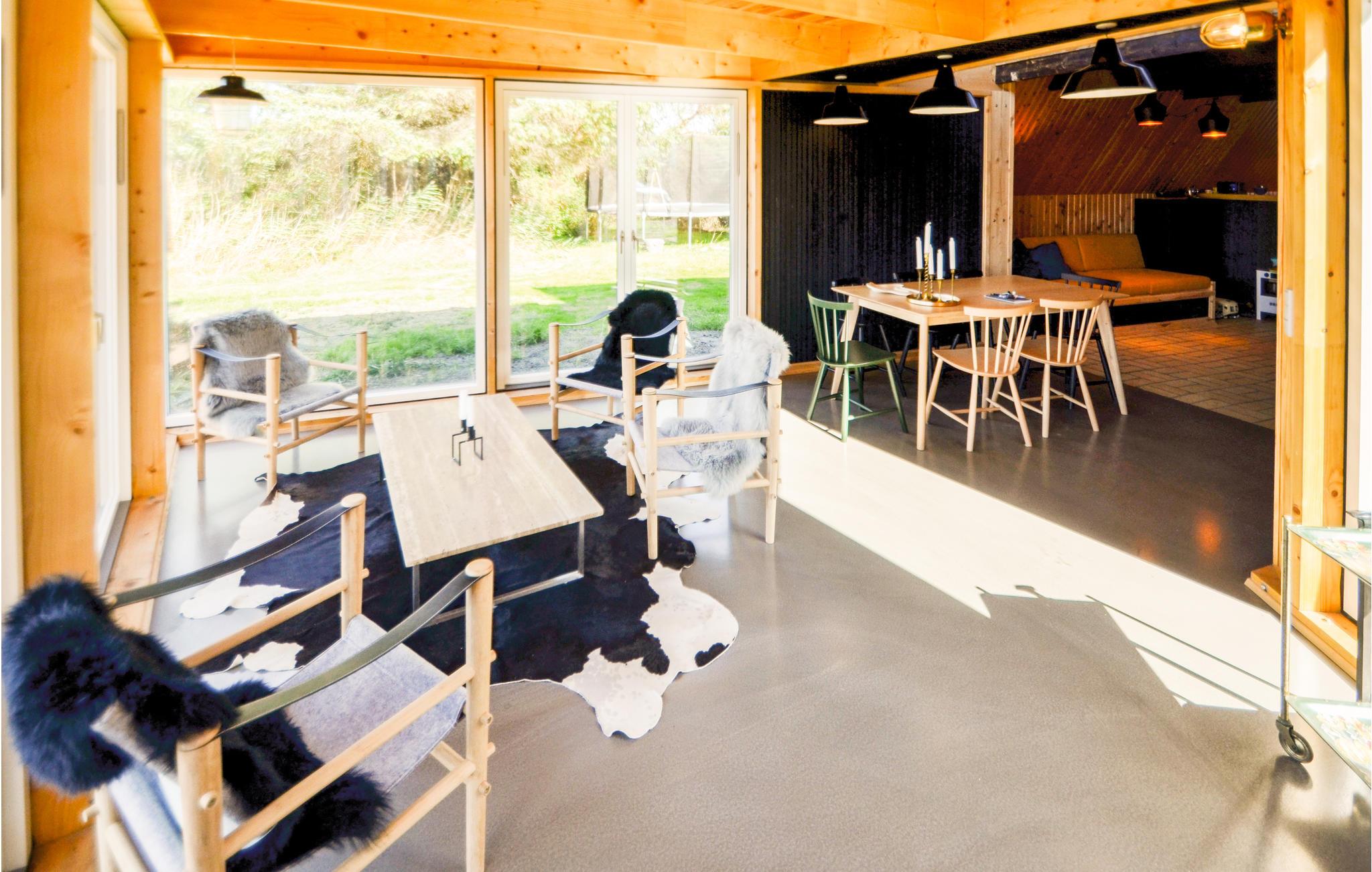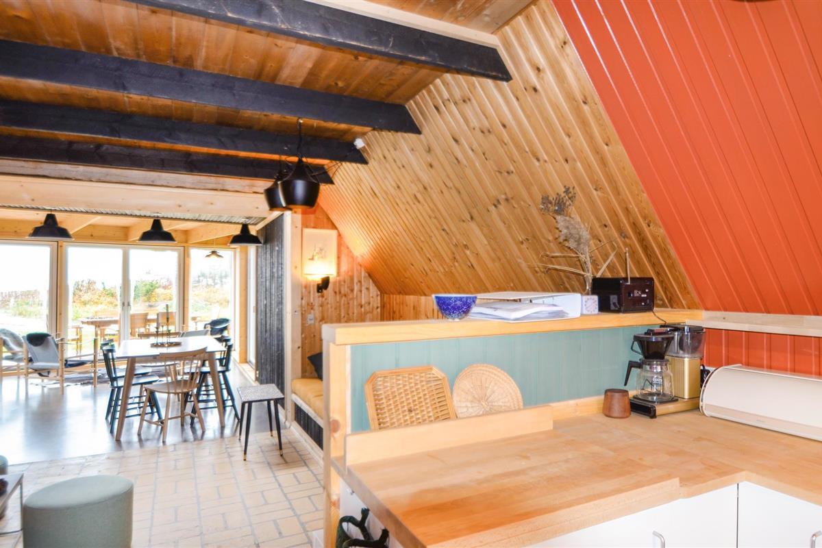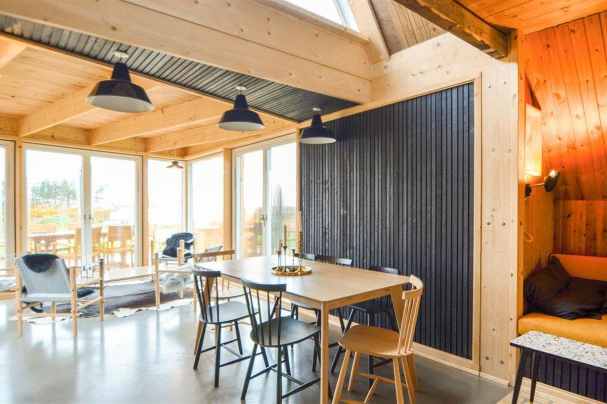 Modern vakantiehuis aan zee in Øer Strand met panoramisch uitzicht en luxe voorzieningen.