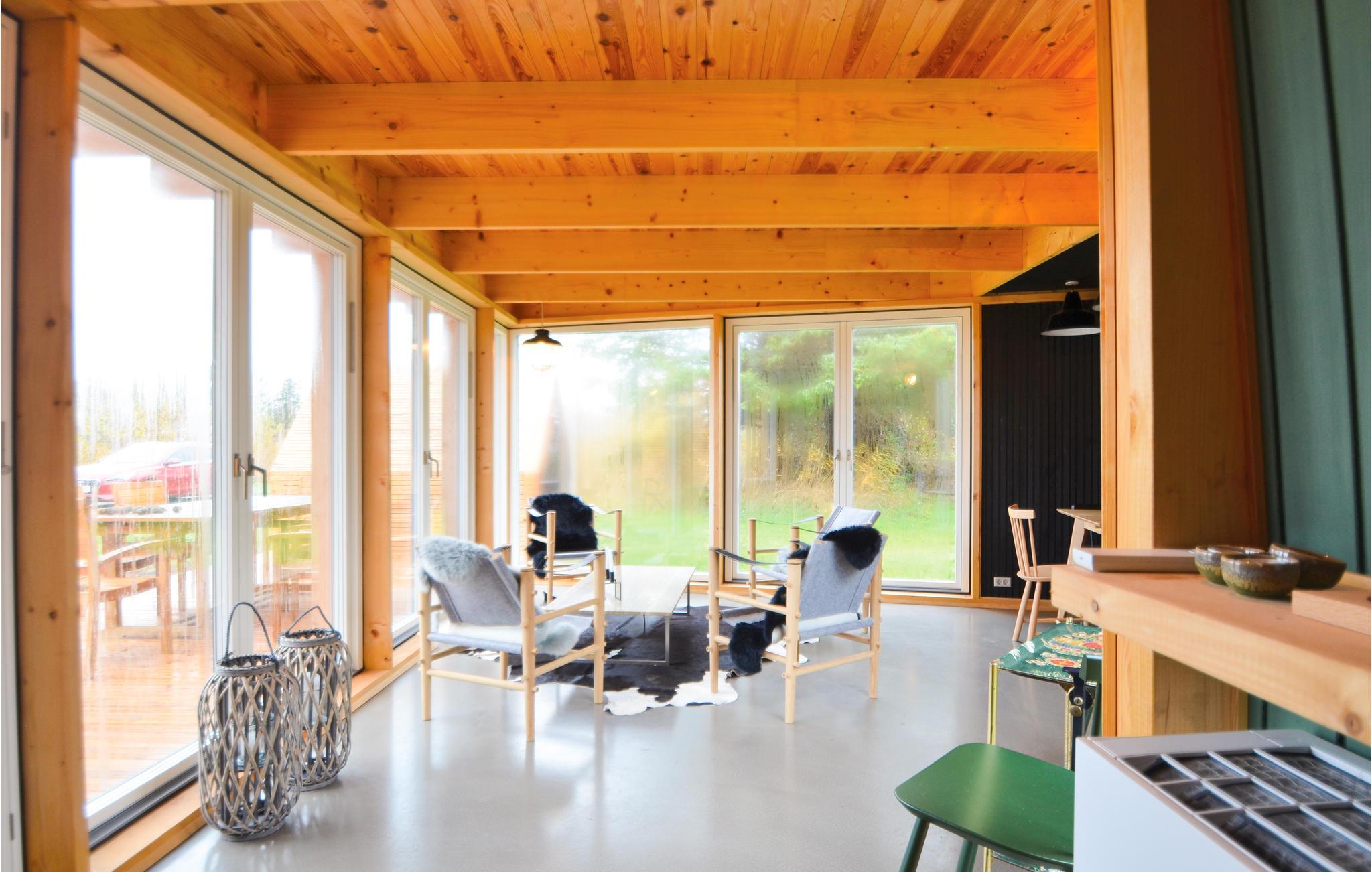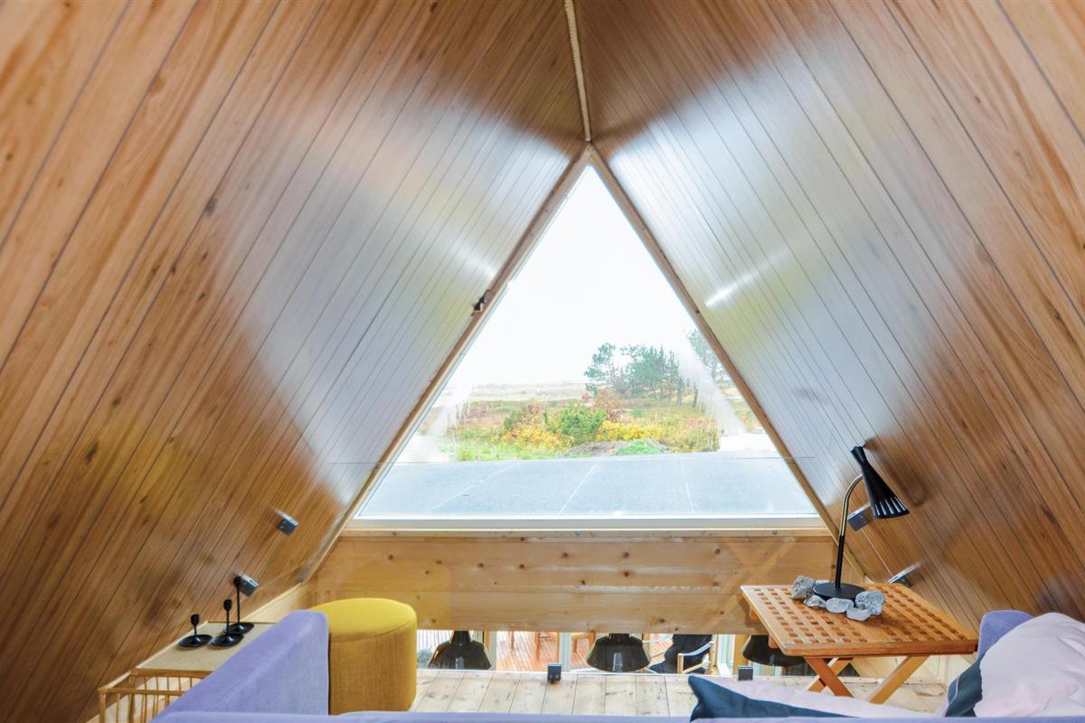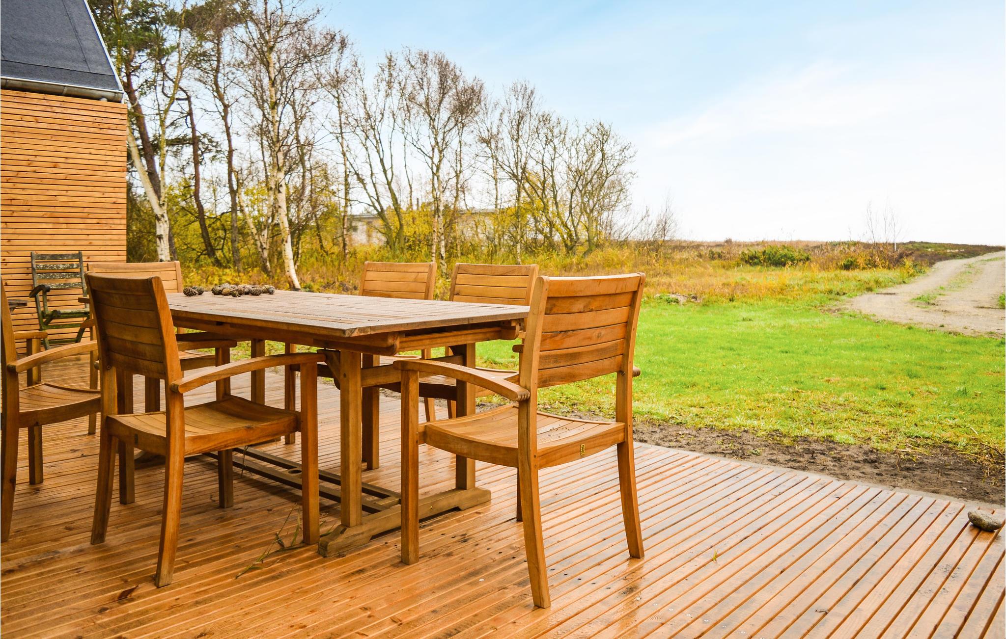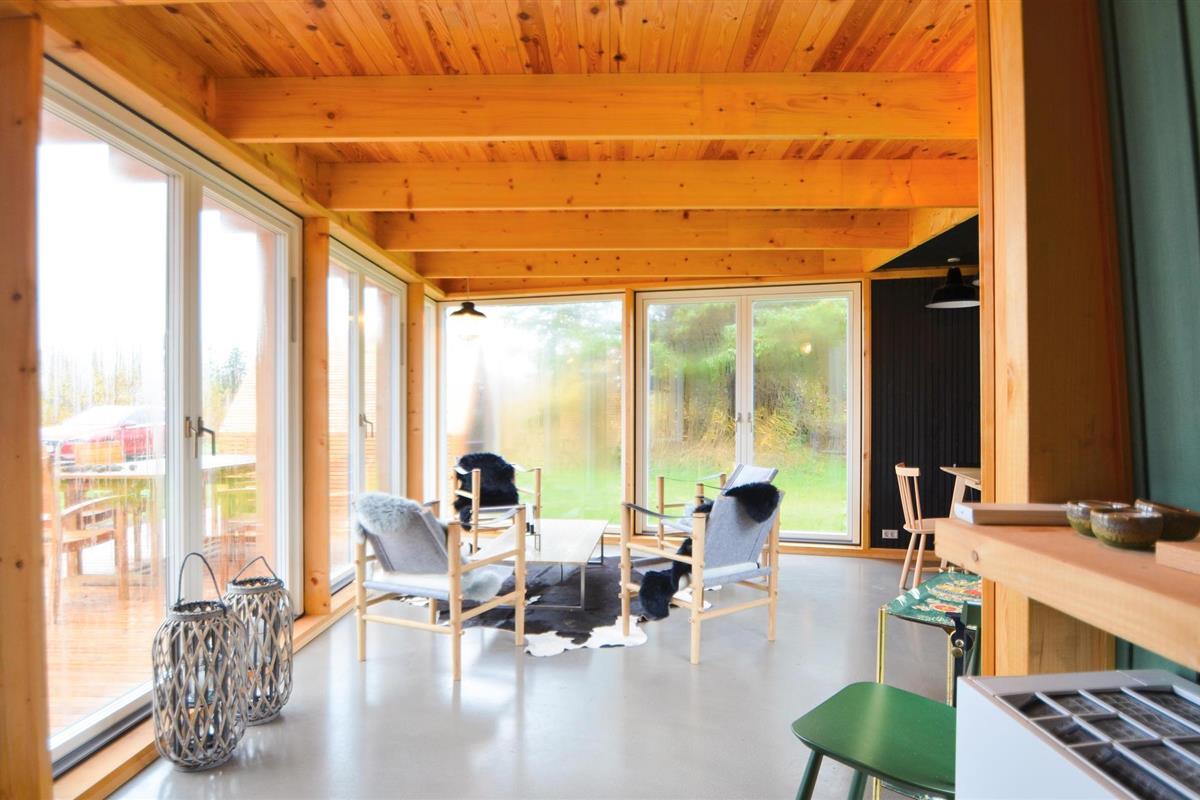Modern vakantiehuis aan zee in Øer Strand met panoramisch uitzicht en luxe voorzieningen.