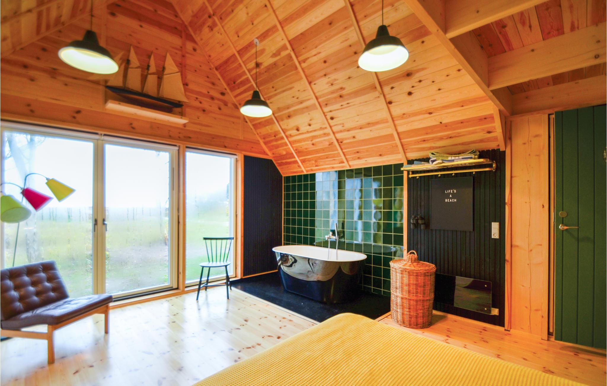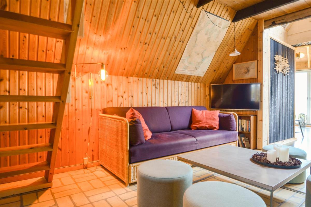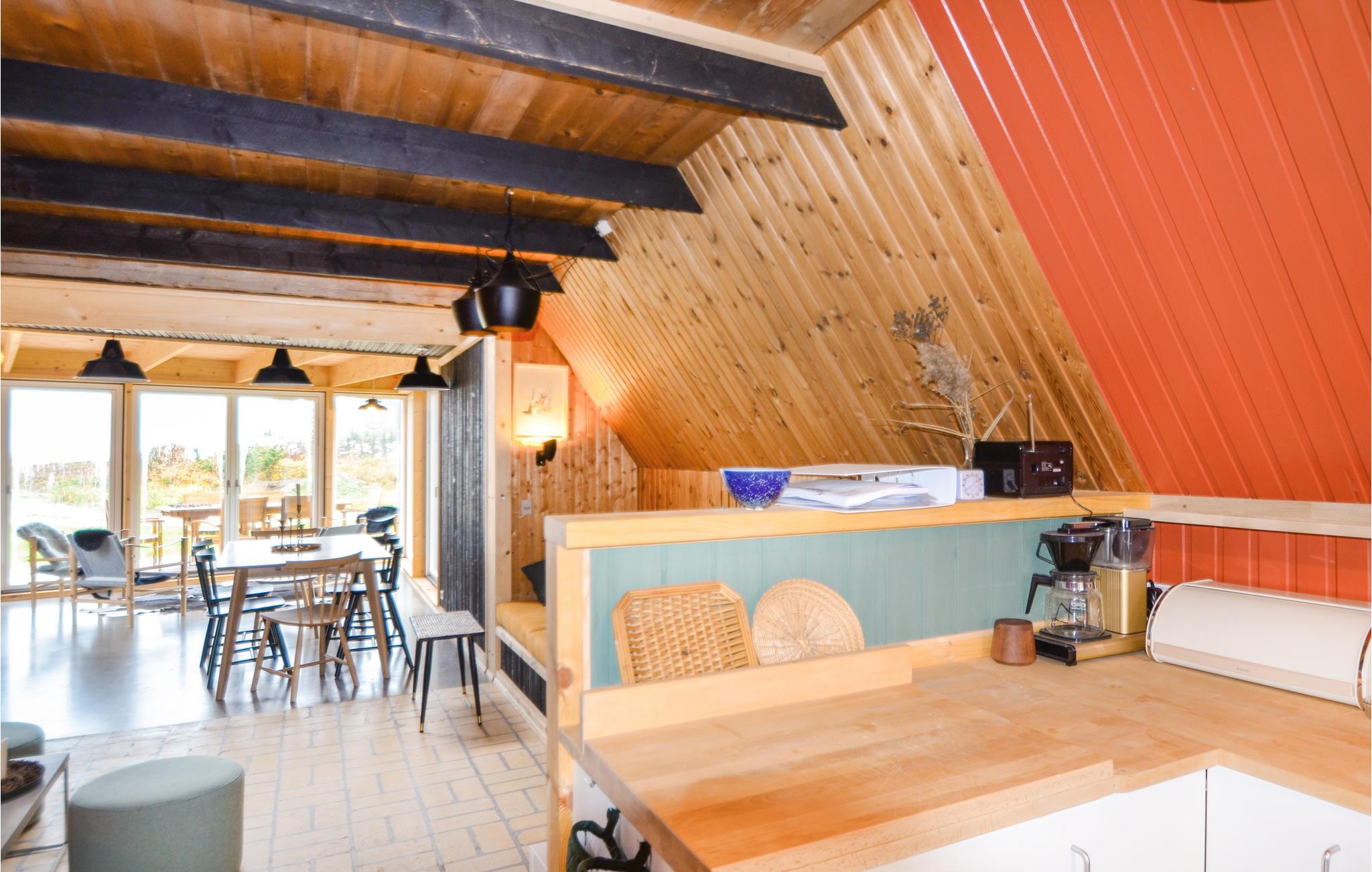 Op de eerste rij naar strand en zee in het populaire Øer Strand ligt dit architectonisch interessante vakantiehuis. Het iets andere interieur omvat ook het bad in de slaapkamer. Ervaar een goed uitgerust vakantiehuis met een prachtig uitzicht op zee. Op het grote terras op het zuidwesten, waar een afdak is geïntegreerd, kunt u ongestoord genieten van zon en rust. Na een duik in de zee wacht een buitendouche op u bij het huis. De straat op de foto is de toegangsweg tot het huis. De trap naar de eerste verdieping is niet geschikt voor mensen die slecht ter been zijn. Met de auto bent u in ongeveer 10 minuten in Ebeltoft.