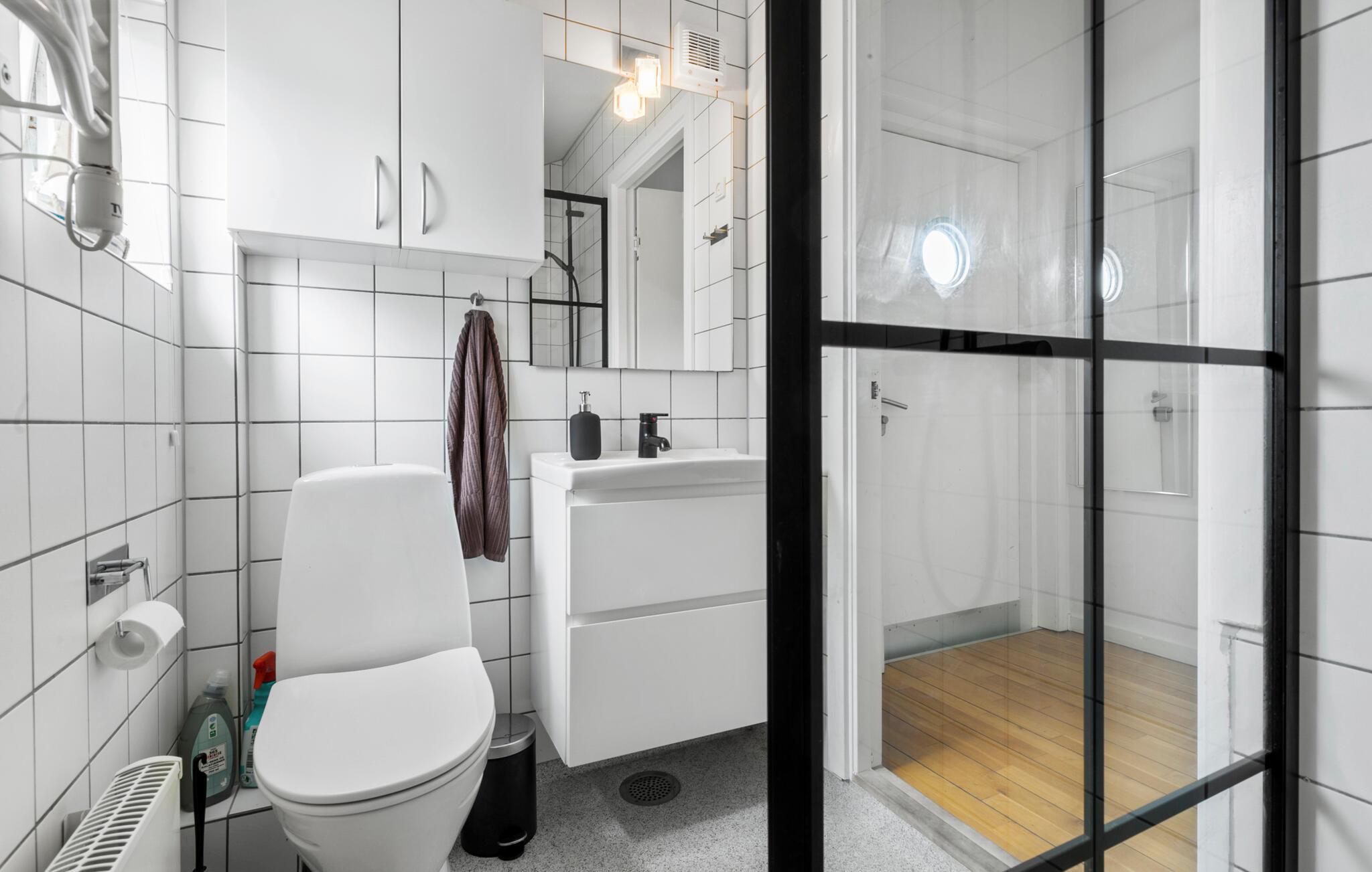 Badkamer (nr. 1) - Toilet: warm en koud water. Douche