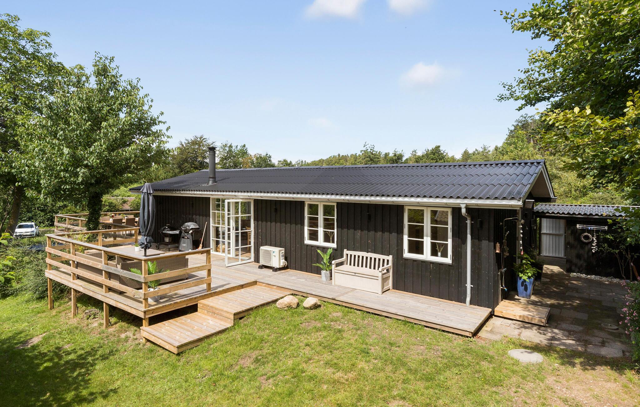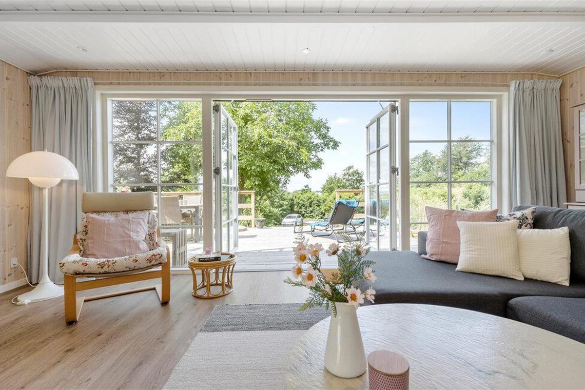 Ontspan in dit sfeervolle vakantiehuis met tuin, trampoline en gedeeltelijk zeezicht in het rustige Øer Strand, Denemarken.