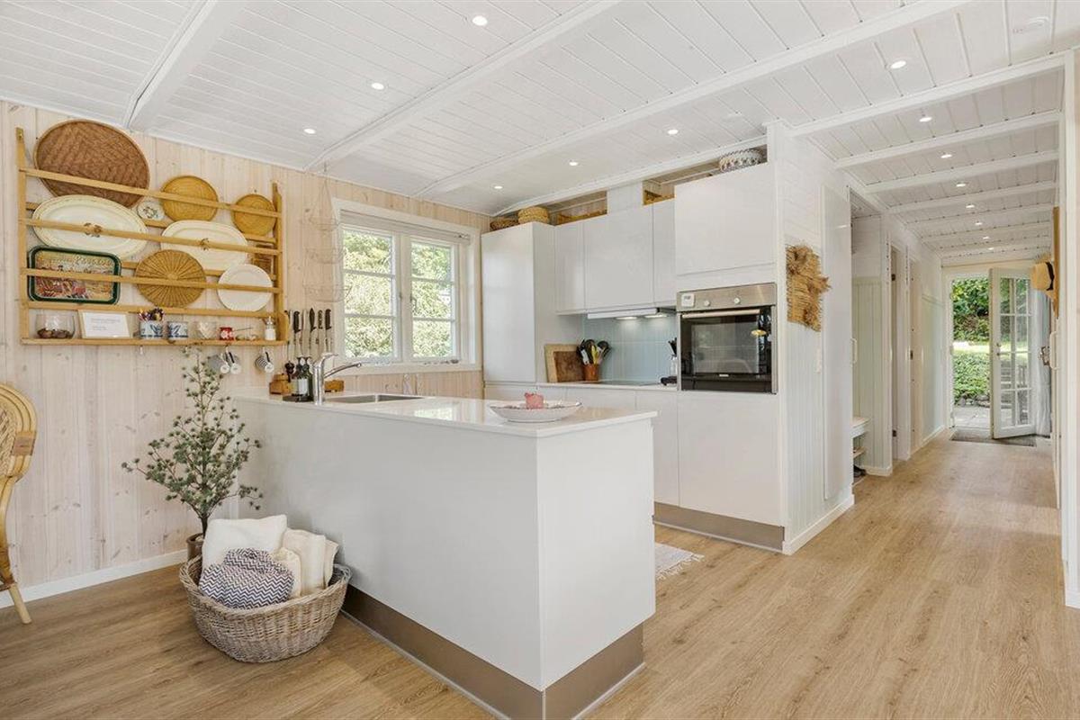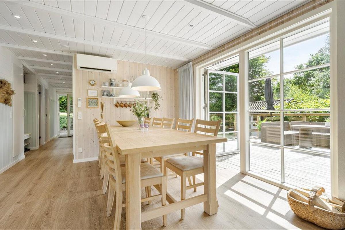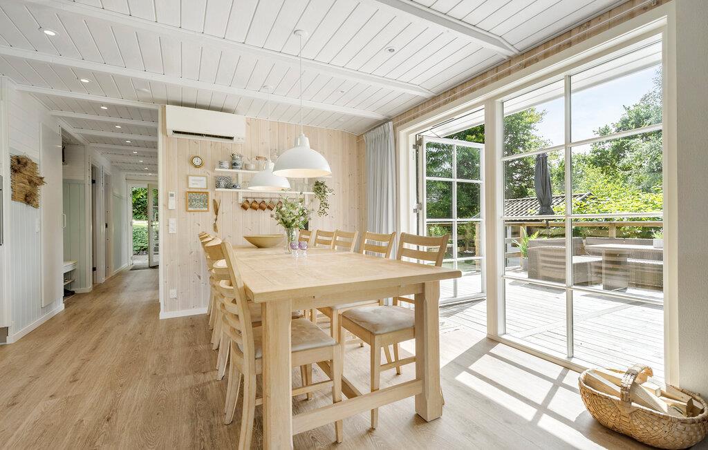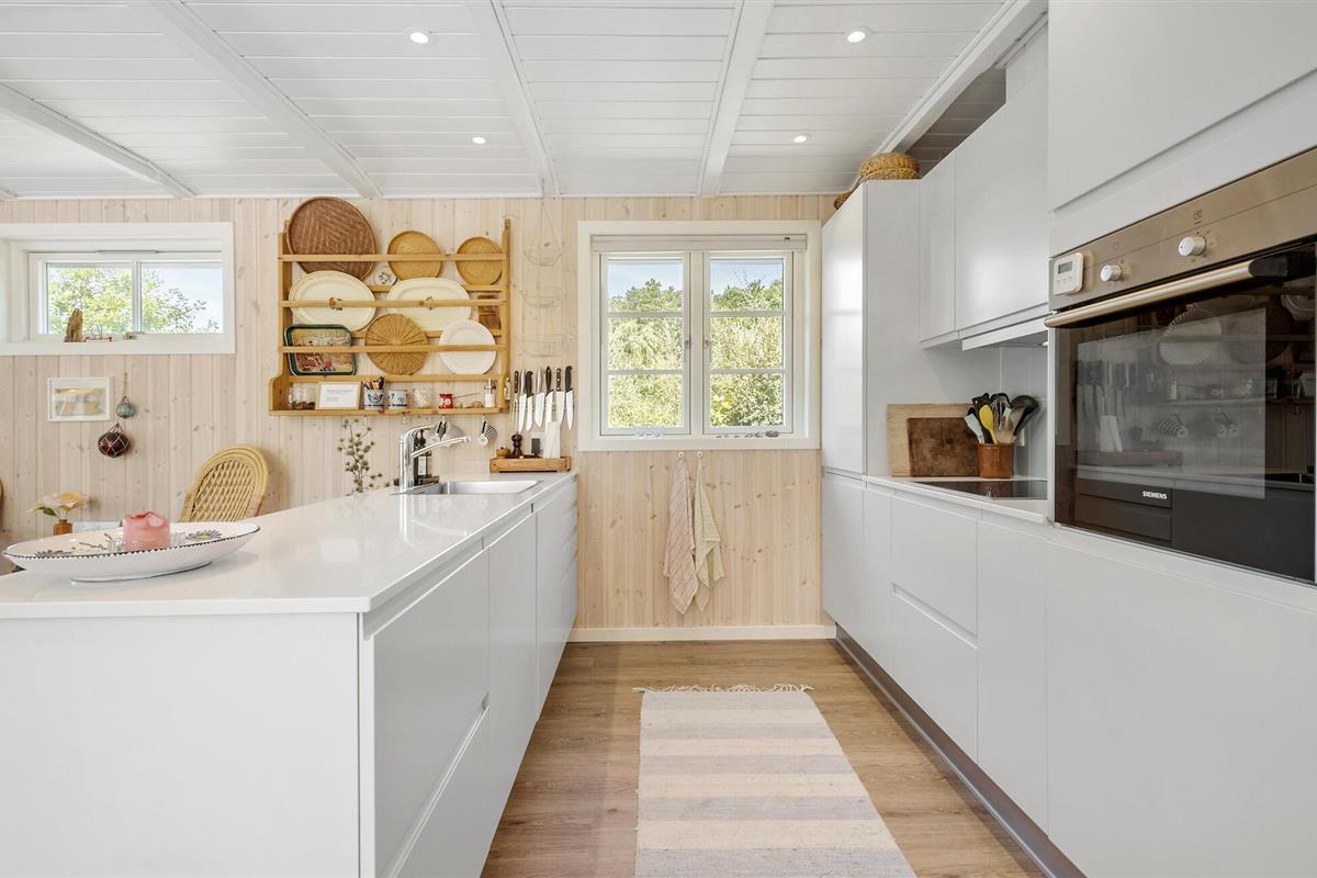 Dit uitnodigende vakantiehuis op Øer Strand biedt de ideale omgeving voor rust en ontspanning. Begin je dag met een heerlijk ontbijt aan de eettafel met uitzicht op de betoverende tuin voordat je neerstrijkt op de comfortabele bank in de gezellig ingerichte woonkamer. Het open ontwerp van de keuken en woonkamer creëert een warme, uitnodigende sfeer die perfect is voor een gezellig samenzijn met familie of vrienden.