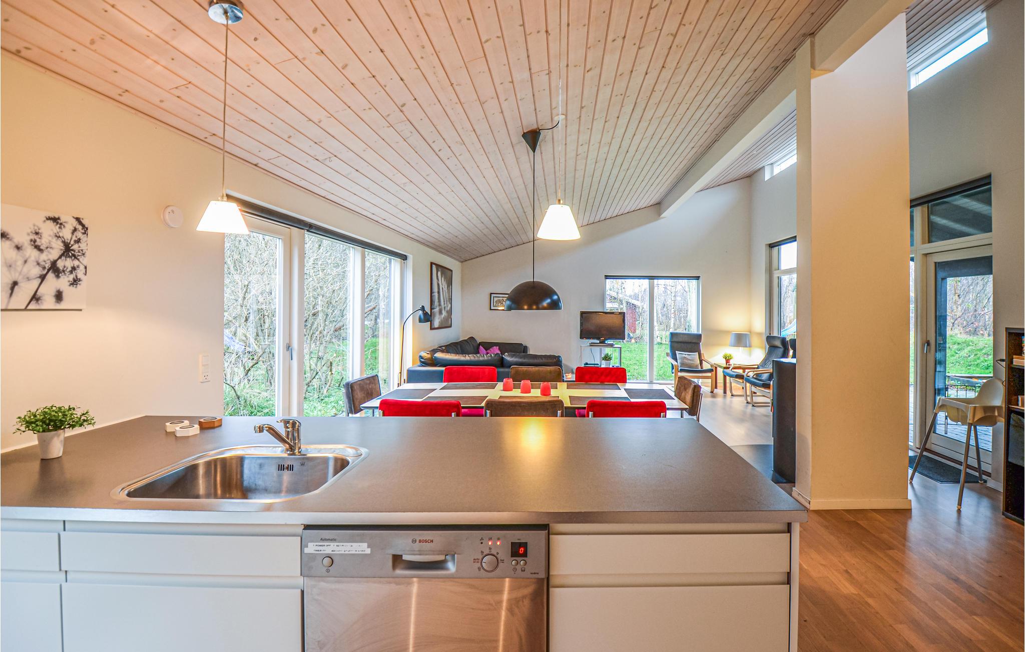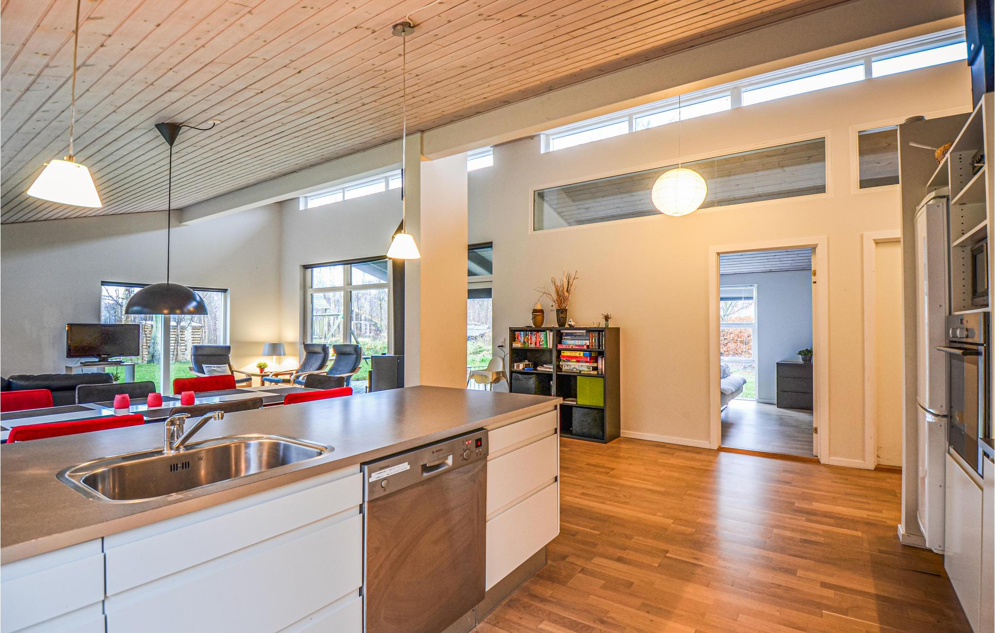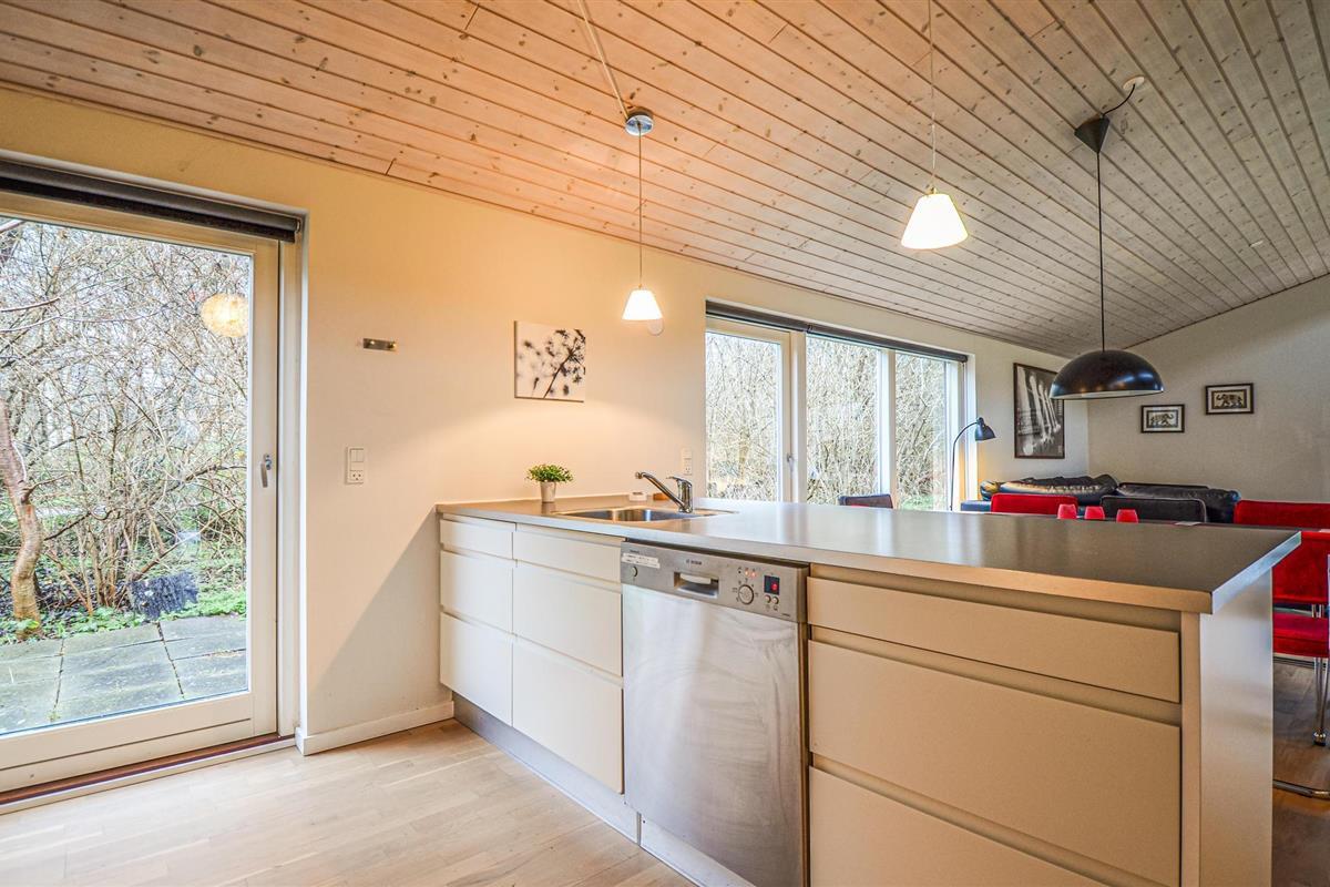 Modern vakantiehuis in Øer Strand, Ebeltoft, met veel licht, 3 slaapkamers en 2 badkamers, ideaal voor gezinnen.