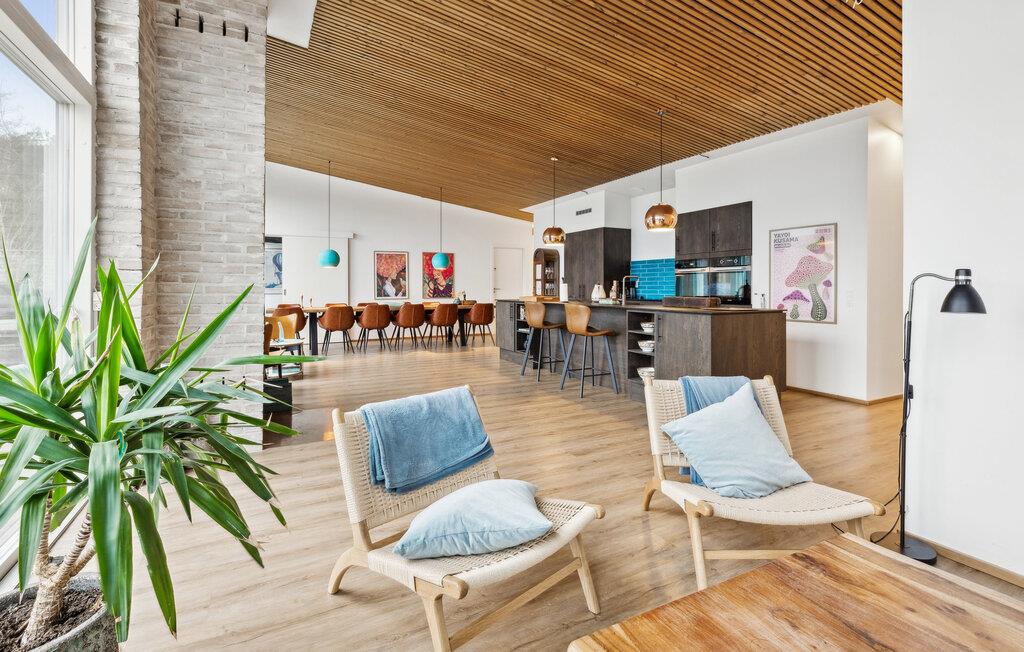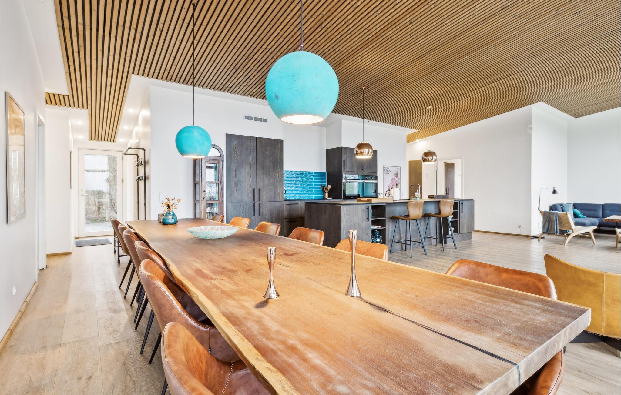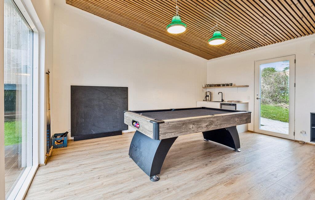Welkom bij je droomvakantie. Dit exclusieve vakantiehuis op Øer Strand heeft een prachtig ontwerp met hoge plafonds en een open indeling die een gevoel van ruimte en vrijheid uitstraalt. Het elegante interieur is hoogwaardig ingericht en biedt je maximaal comfort. Ontspan en ontspan samen op de bank of tover heerlijke gerechten tevoorschijn in de keuken. Ontspan en zwem in het binnenzwembad, perfect voor alle weersomstandigheden. De activiteitenruimte met tafeltennis en biljart of de thuisbioscoop zorgen voor vermaak voor het hele gezin en bieden je een verscheidenheid aan activiteiten.