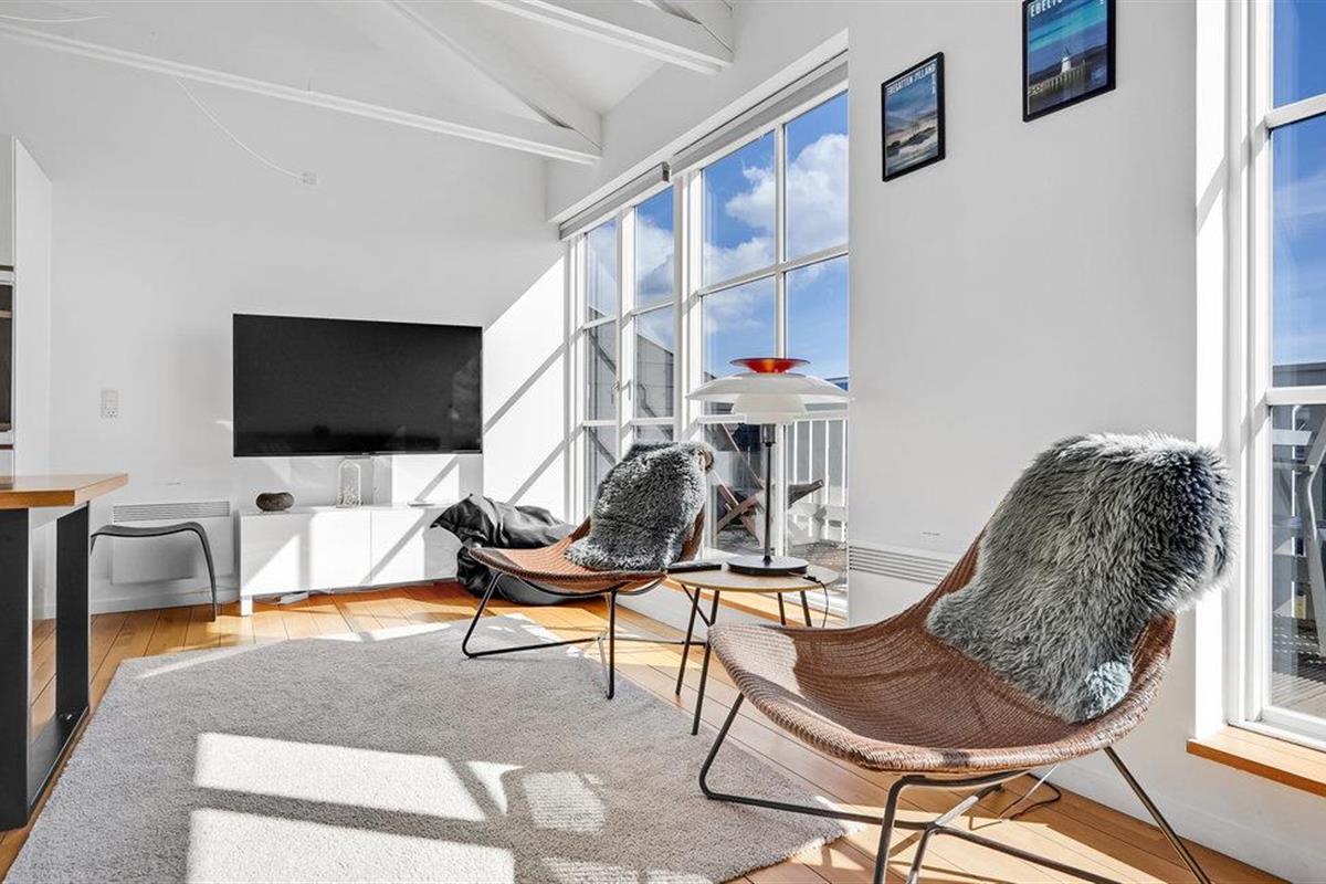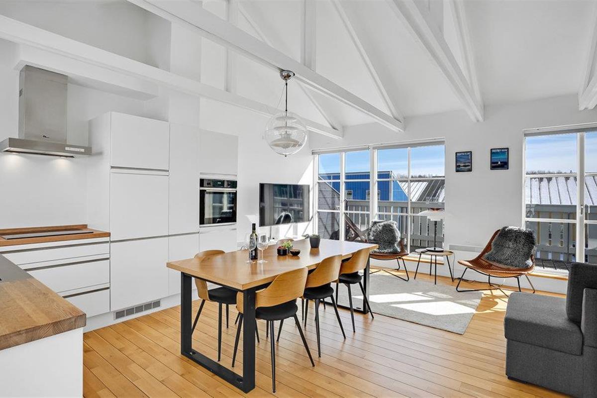 Stap binnen in een modern vakantiehuis in Øer Maritime Ferieby, ingericht in een elegante stijl.
