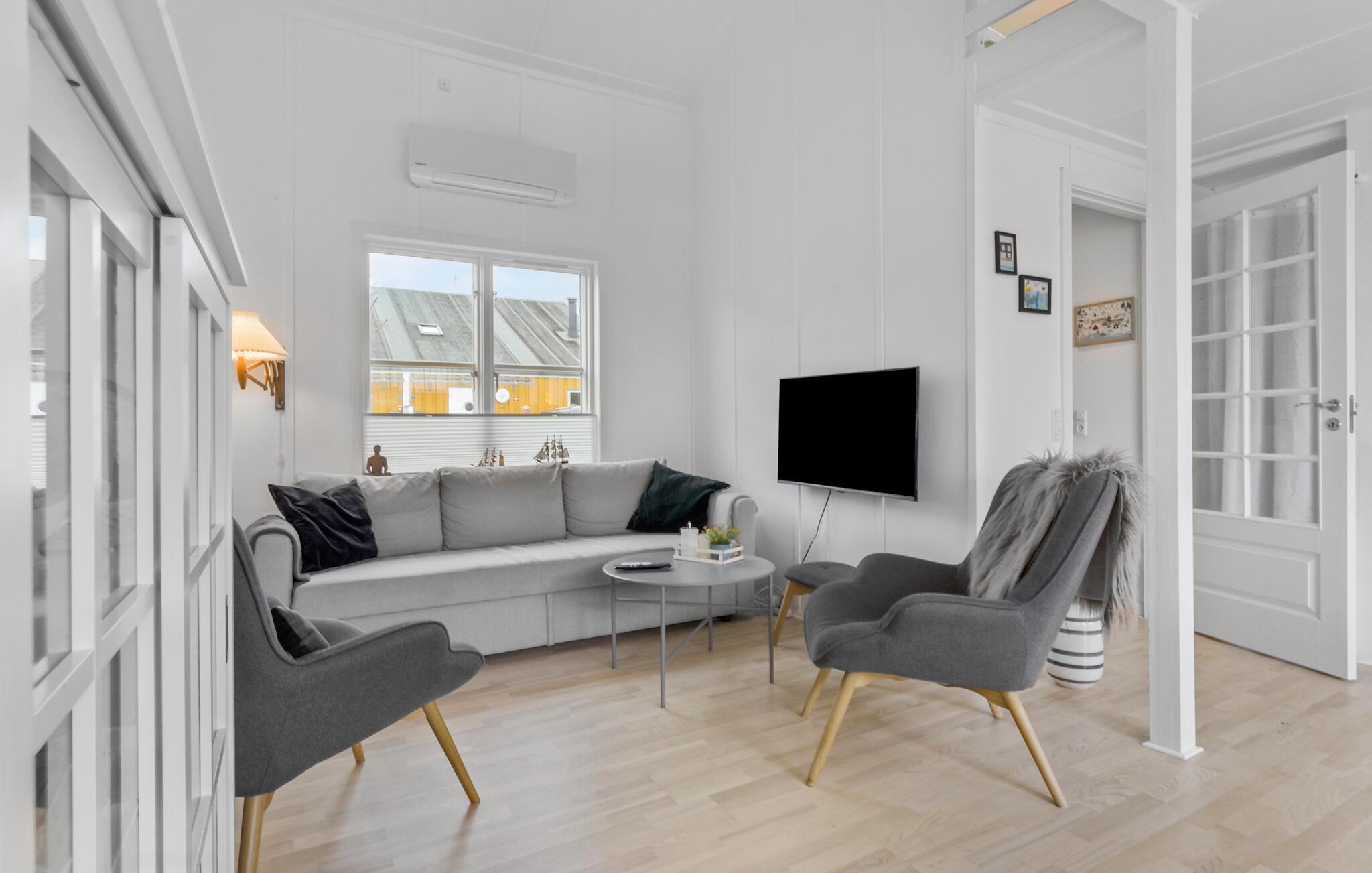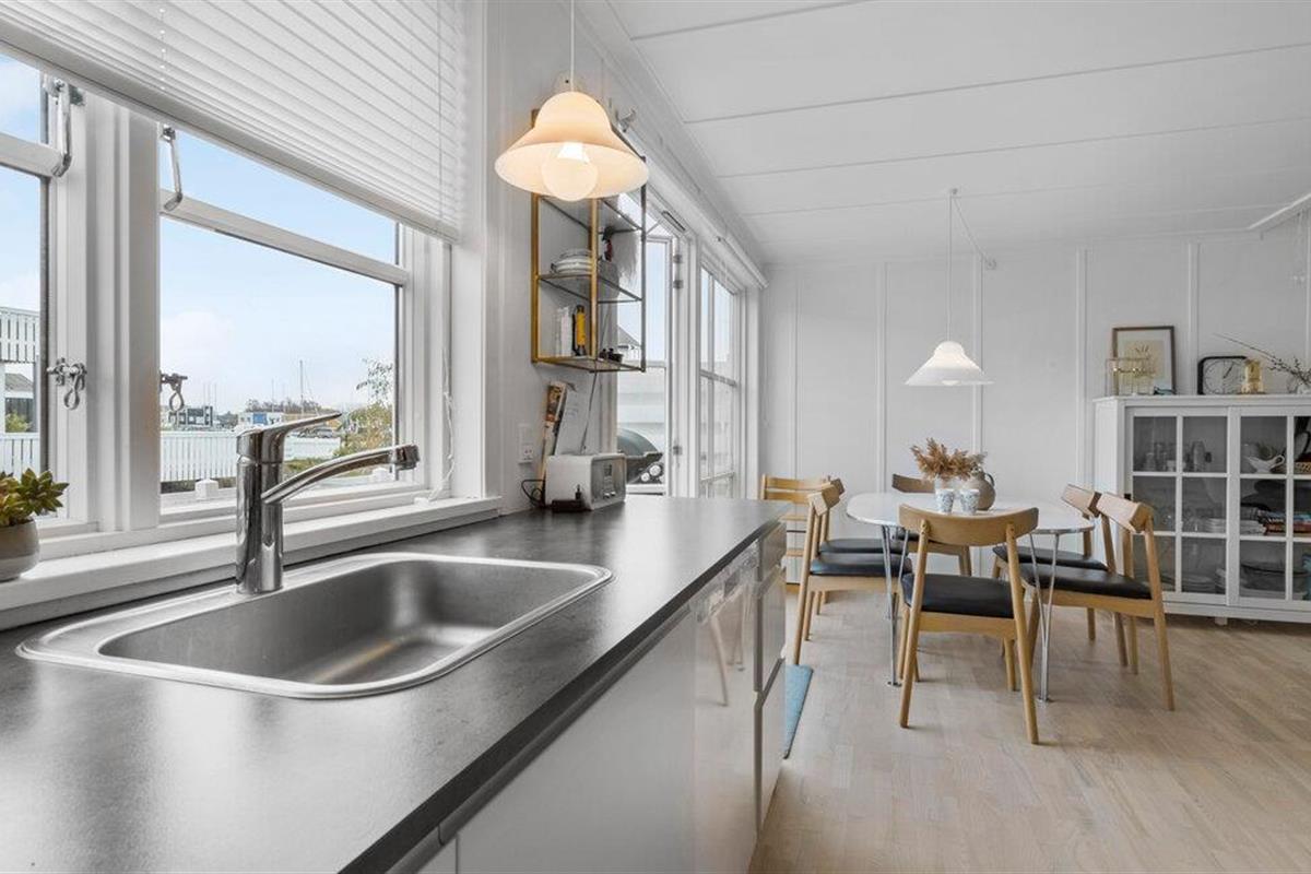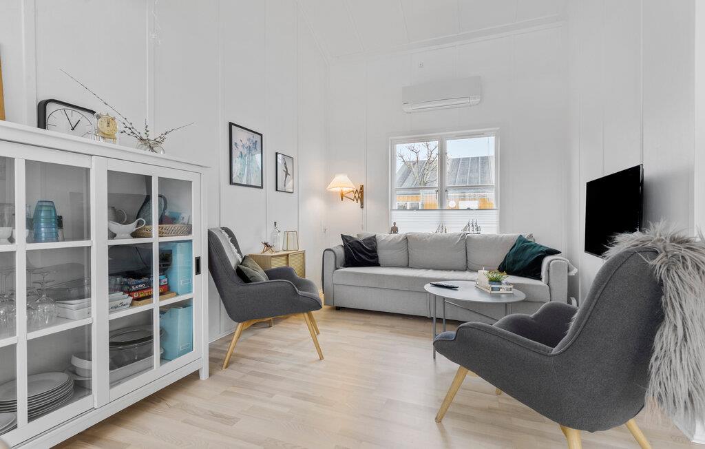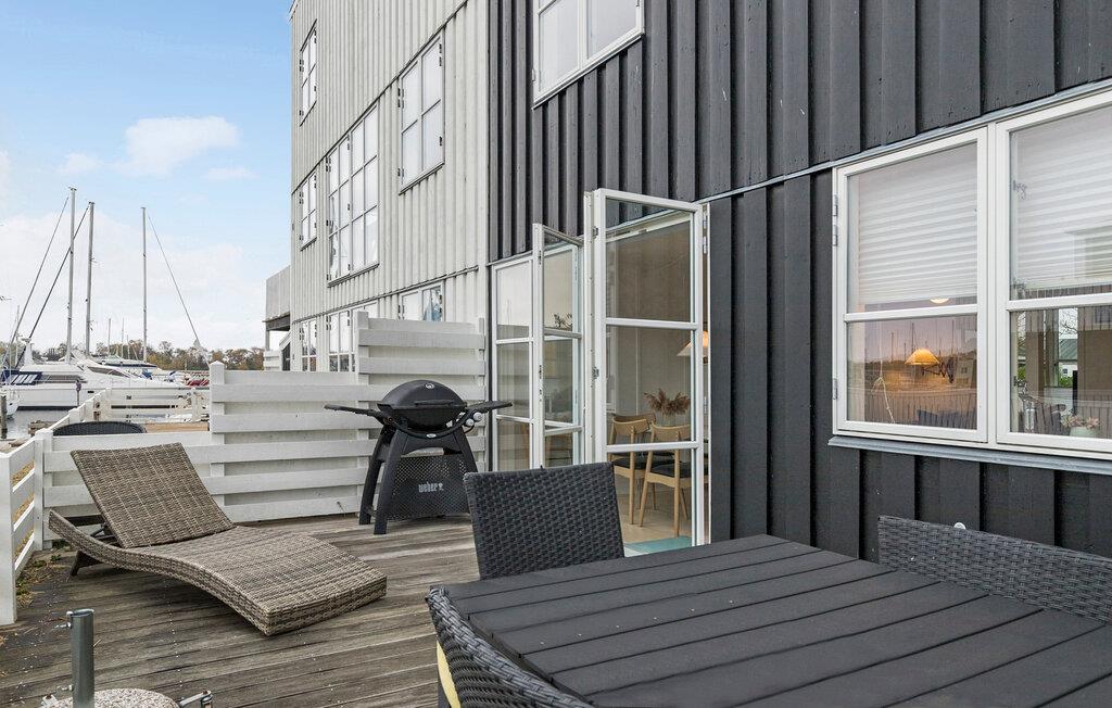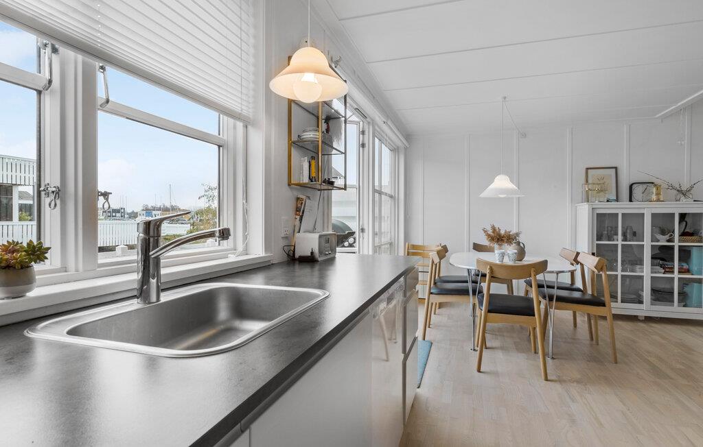 Je uitnodigende vakantiehuis op Øer Strand biedt veel ruimte op twee niveaus en een modern, licht interieur, ideaal voor gezinnen of stellen die samen ontspannen dagen willen doorbrengen. De open woonkamer met eethoek en keuken leidt direct naar het terras en creëert een luchtige, uitnodigende sfeer. Op het omheinde terras, voorzien van comfortabel tuinmeubilair, kun je genieten van het uitzicht op de boten in de haven en de dag beginnen met een ontspannen ontbijt in de buitenlucht. Het uitzicht op de haven nodigt je uit om te ontspannen en de maritieme flair op te snuiven.