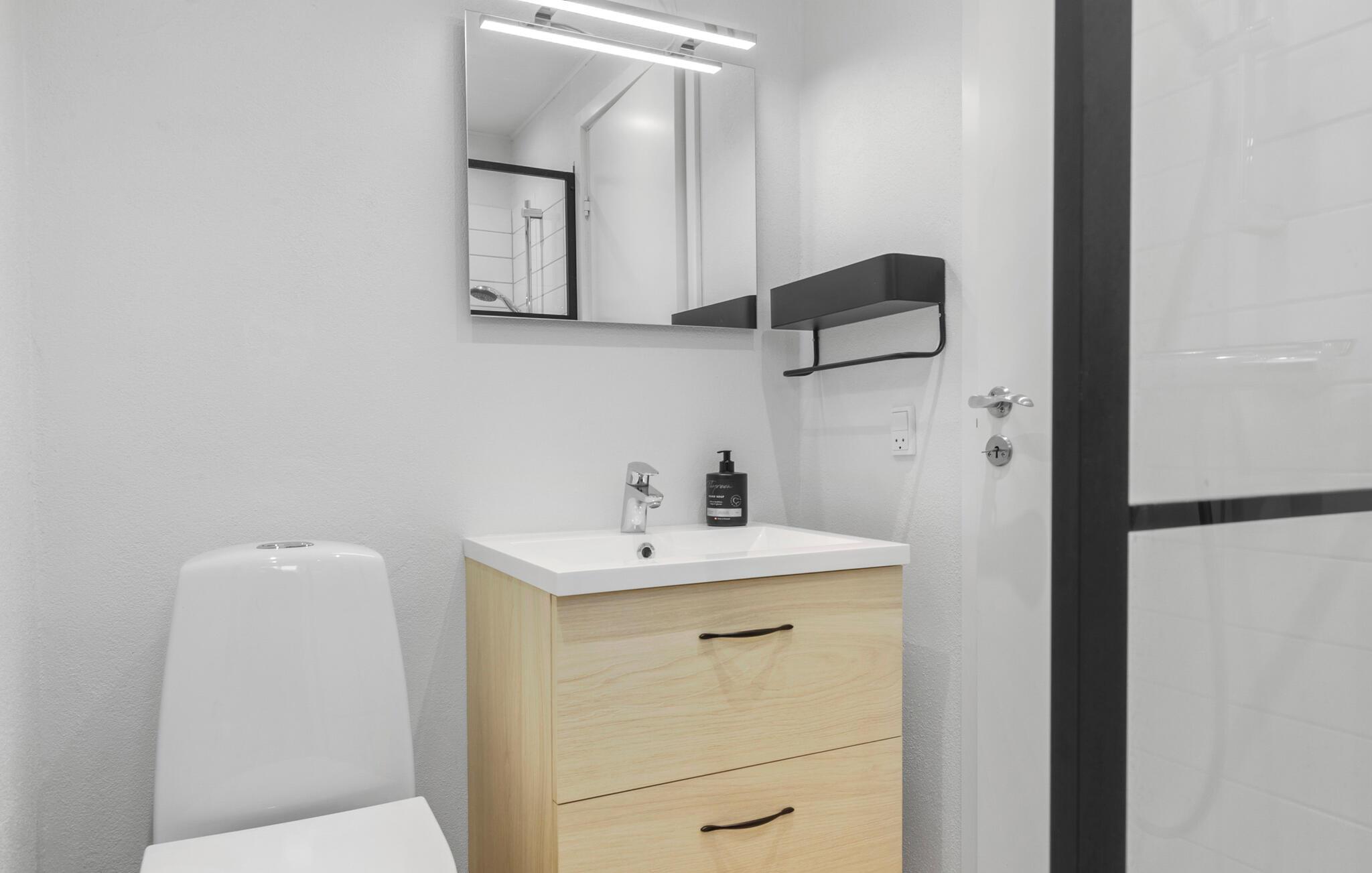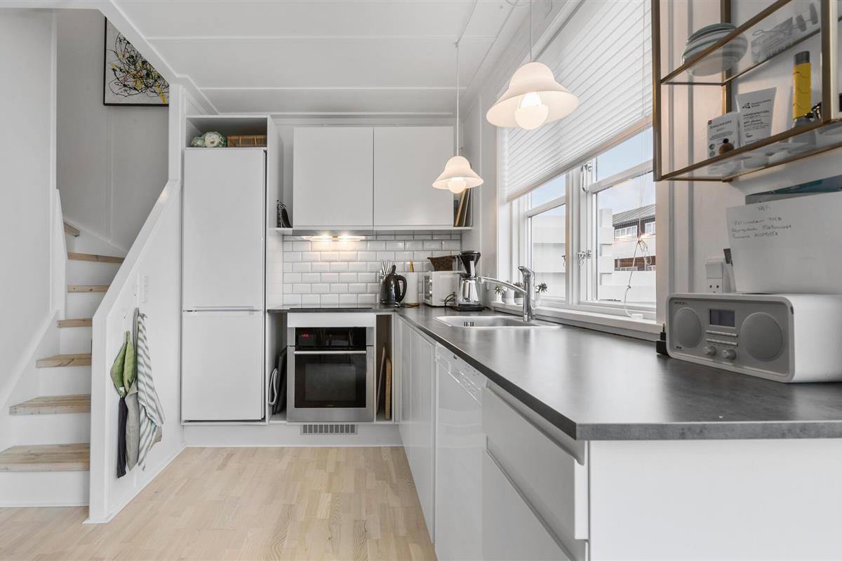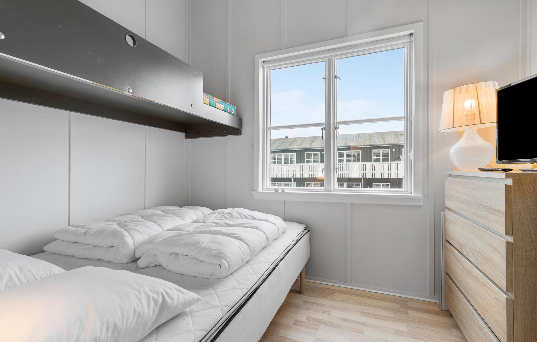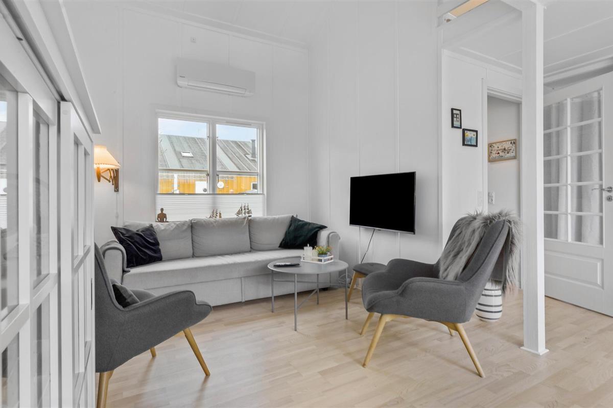 Je uitnodigende vakantiehuis op Øer Strand biedt veel ruimte op twee niveaus en een modern, licht interieur, ideaal voor gezinnen of stellen die samen ontspannen dagen willen doorbrengen. De open woonkamer met eethoek en keuken leidt direct naar het terras en creëert een luchtige, uitnodigende sfeer. Op het omheinde terras, voorzien van comfortabel tuinmeubilair, kun je genieten van het uitzicht op de boten in de haven en de dag beginnen met een ontspannen ontbijt in de buitenlucht. Het uitzicht op de haven nodigt je uit om te ontspannen en de maritieme flair op te snuiven.