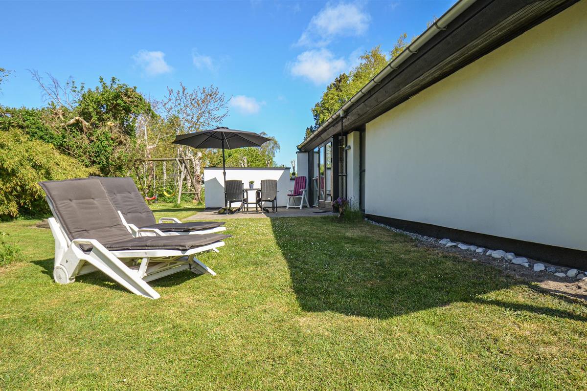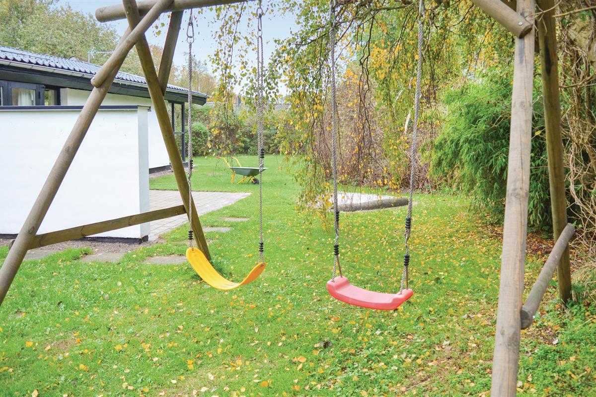Gezellig vakantiehuis nabij zee in Øer met sauna, terras en speeltoestellen, ideaal voor gezinnen.
