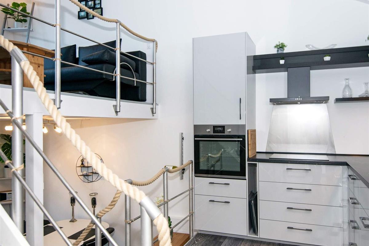 Off. Küche: E-Herd, Kühl-Gefrier-Kombi, Abzugsh., Kaffeem., Spülm.