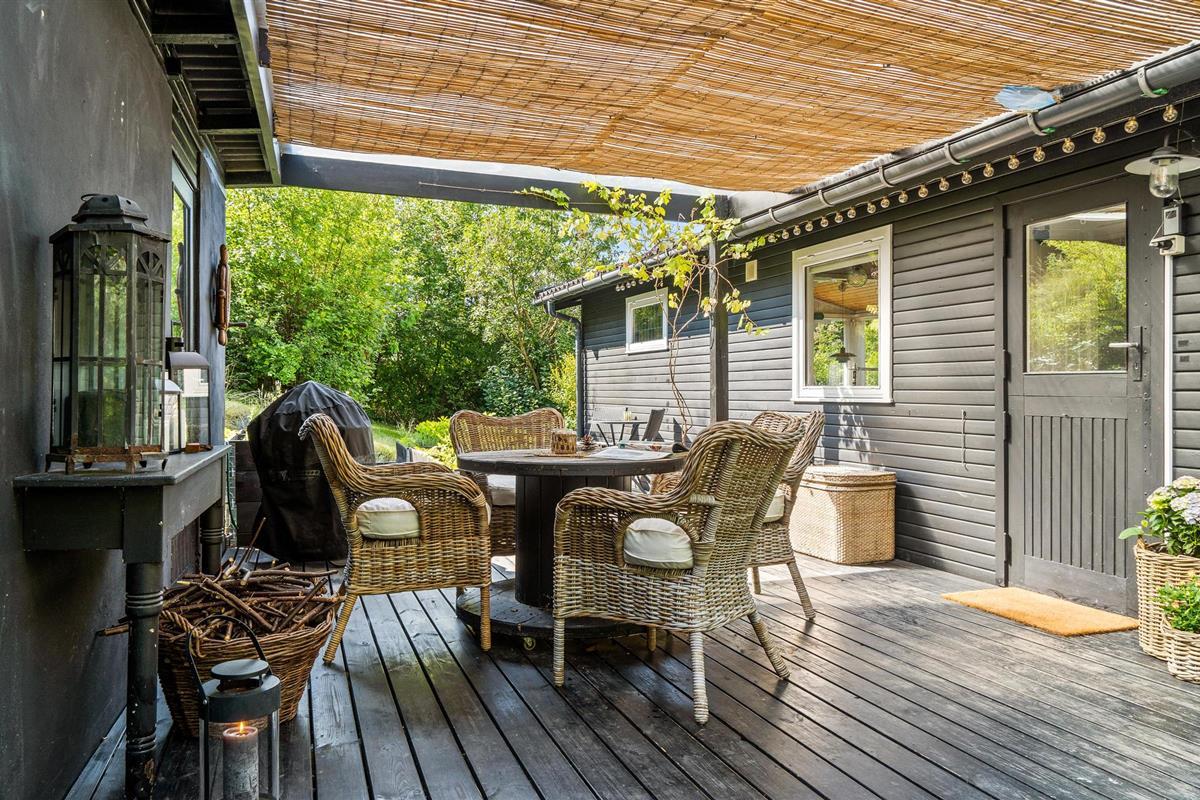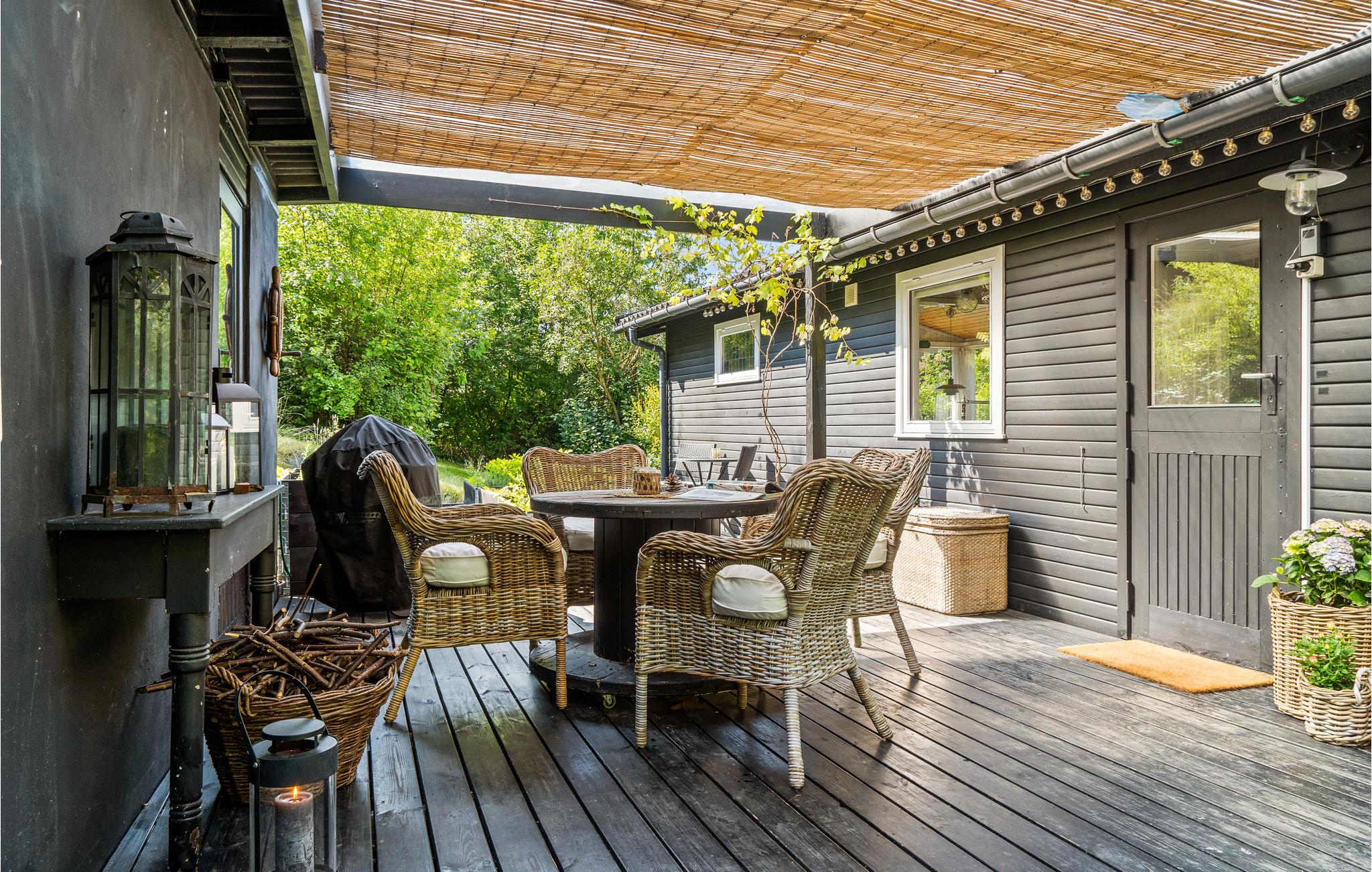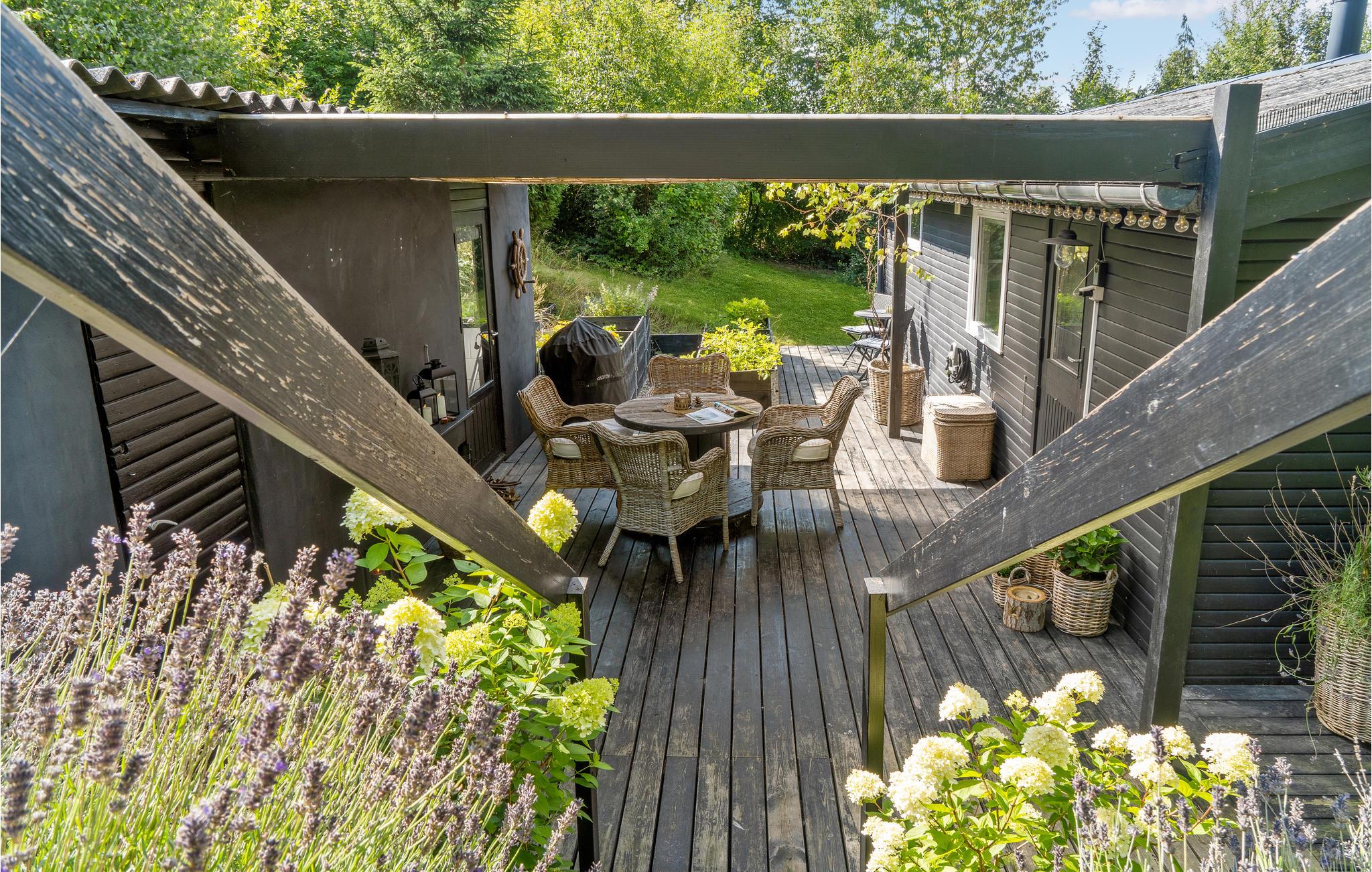 Charmant vakantiehuis nabij Roskilde Fjord met houtkachel en overdekt terras, ideaal voor ontspanning en strandplezier.