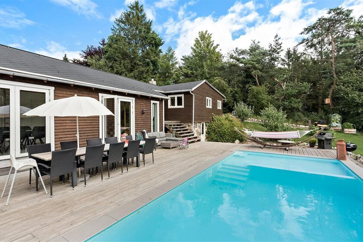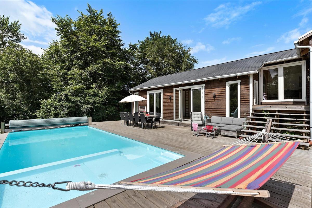Stijlvol vakantiehuis bij Ølsted Strand met privé zwembad en ruime tuin voor ultieme ontspanning.