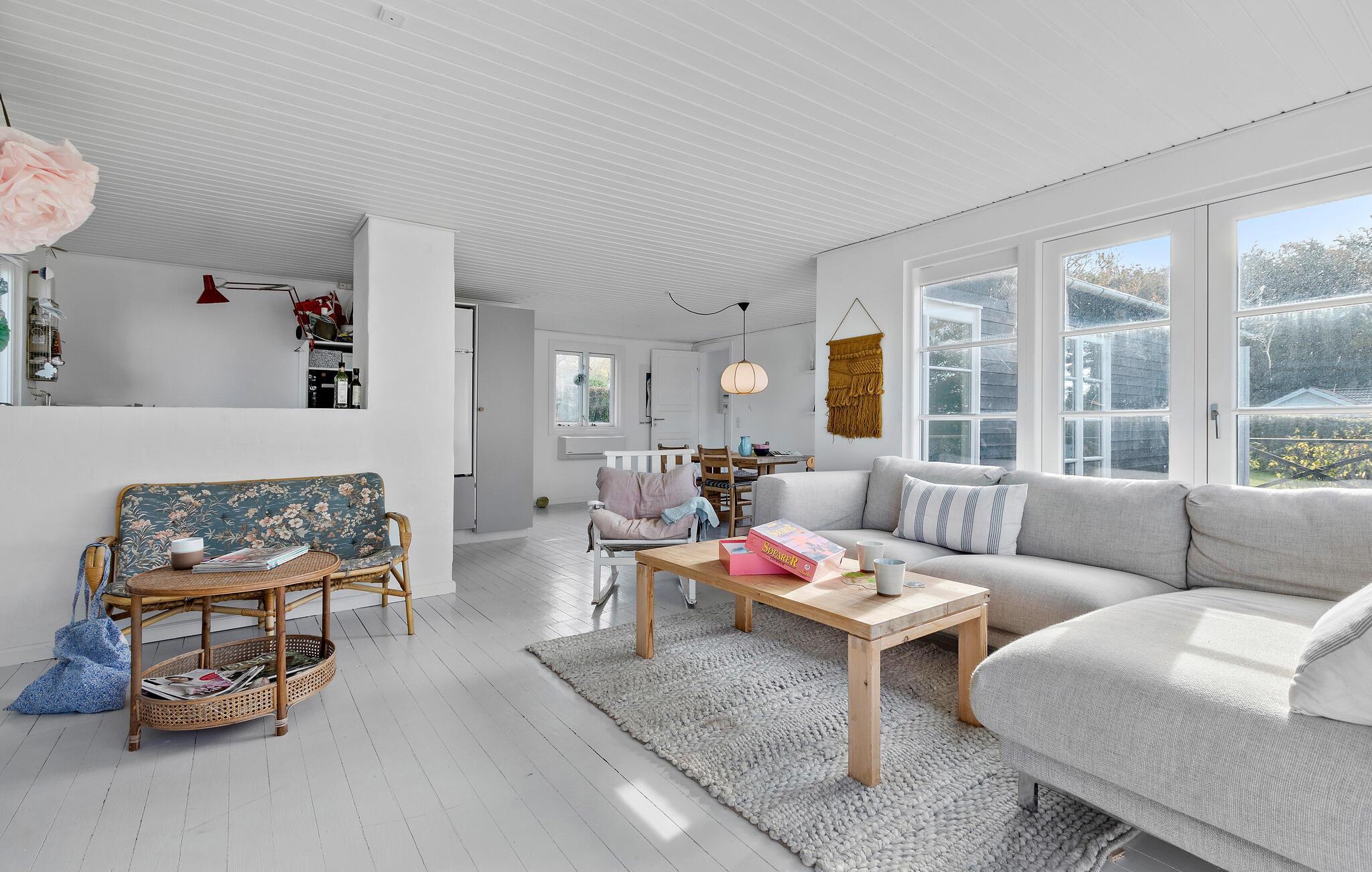 Het modern en smaakvol ingerichte huis biedt veel ruimte om te ontspannen en een gezellige sfeer. De lichtovergoten woonkamer nodigt uit om samen tijd door te brengen en de grote ramen bieden een prachtig uitzicht op de tuin en de zee op de achtergrond. Maak het jezelf gemakkelijk in de gezellige zithoek en geniet van de rust en het comfort van je vakantiehuis.