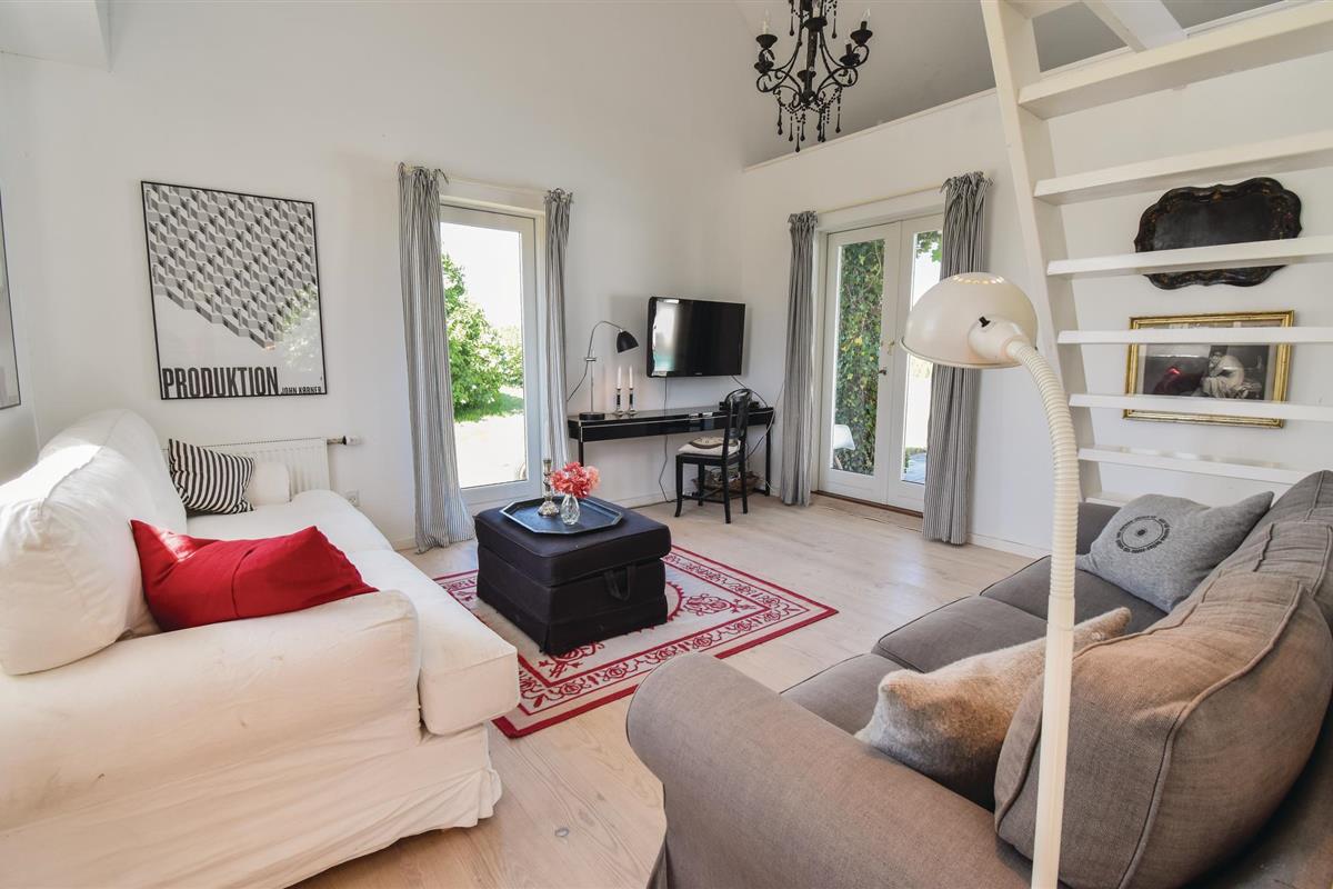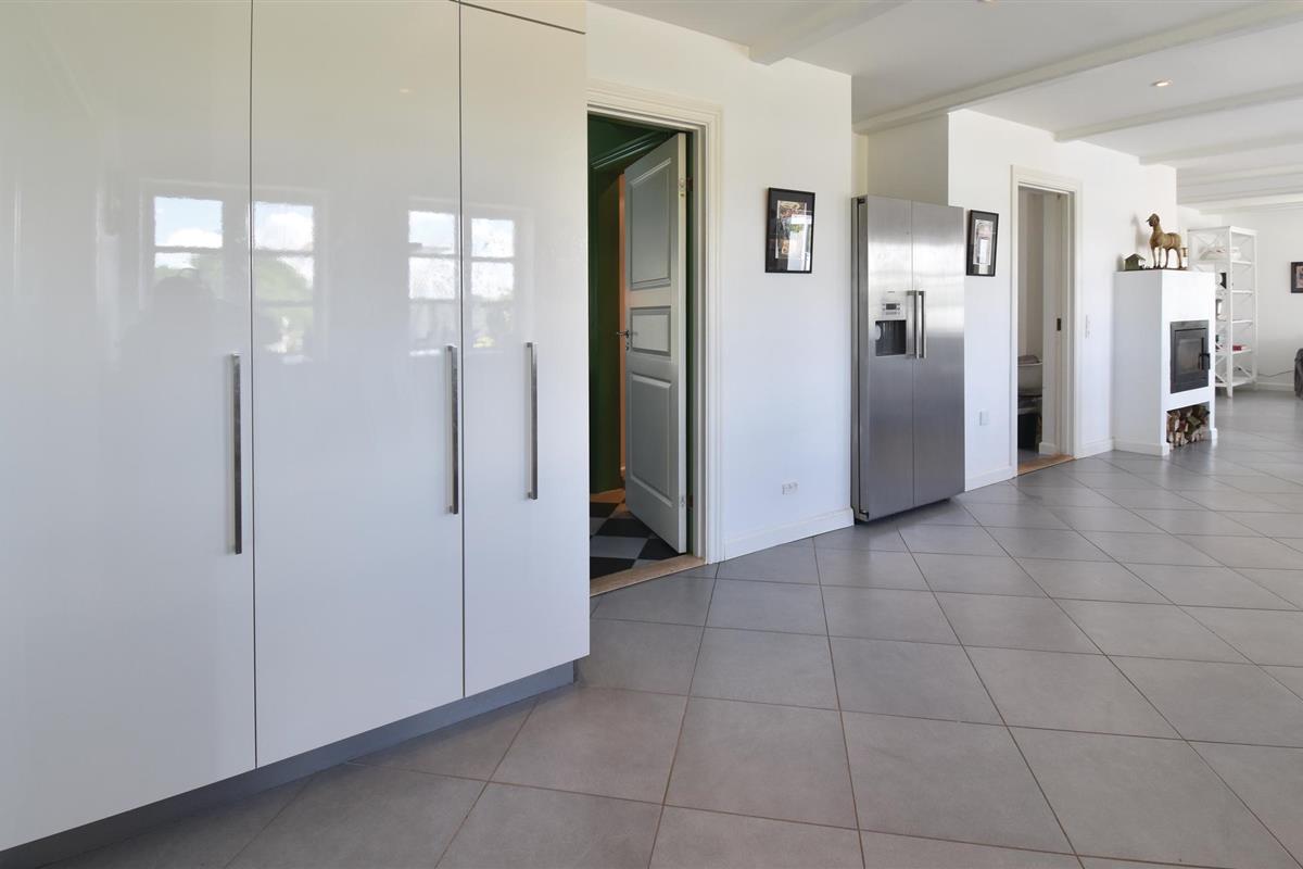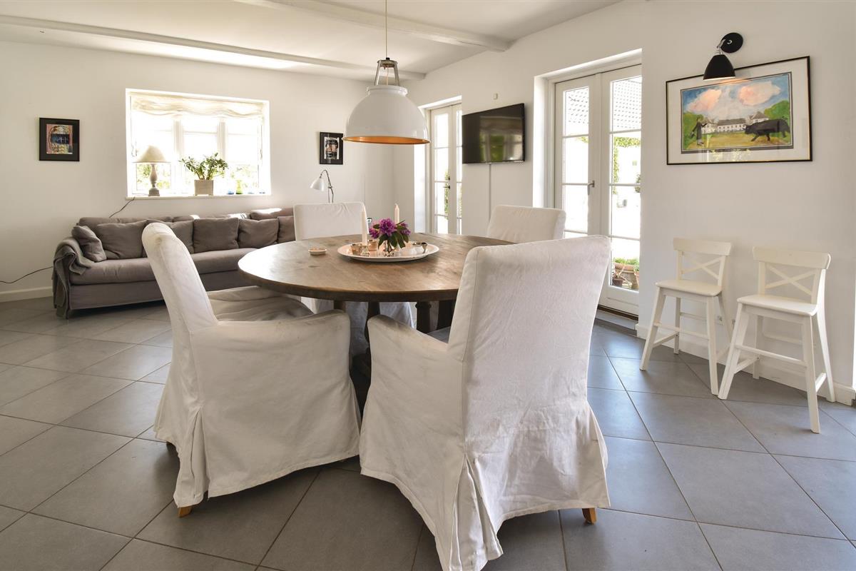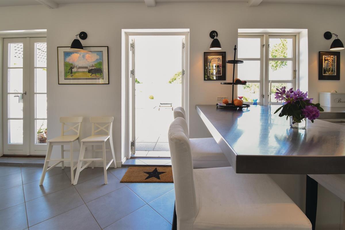 Bij aankomst kun je niet om de verbluffend mooie en unieke tuinkamer met open haard en bankgroep heen. Vervolgens kom je in de groene hal, versierd met jachttrofeeën, en ga je verder naar de grote keuken, die op natuurlijke wijze het middelpunt van het huis wordt. De ruime, lichte woonkamer bevat zowel de bank als de eettafel voor alle gasten.