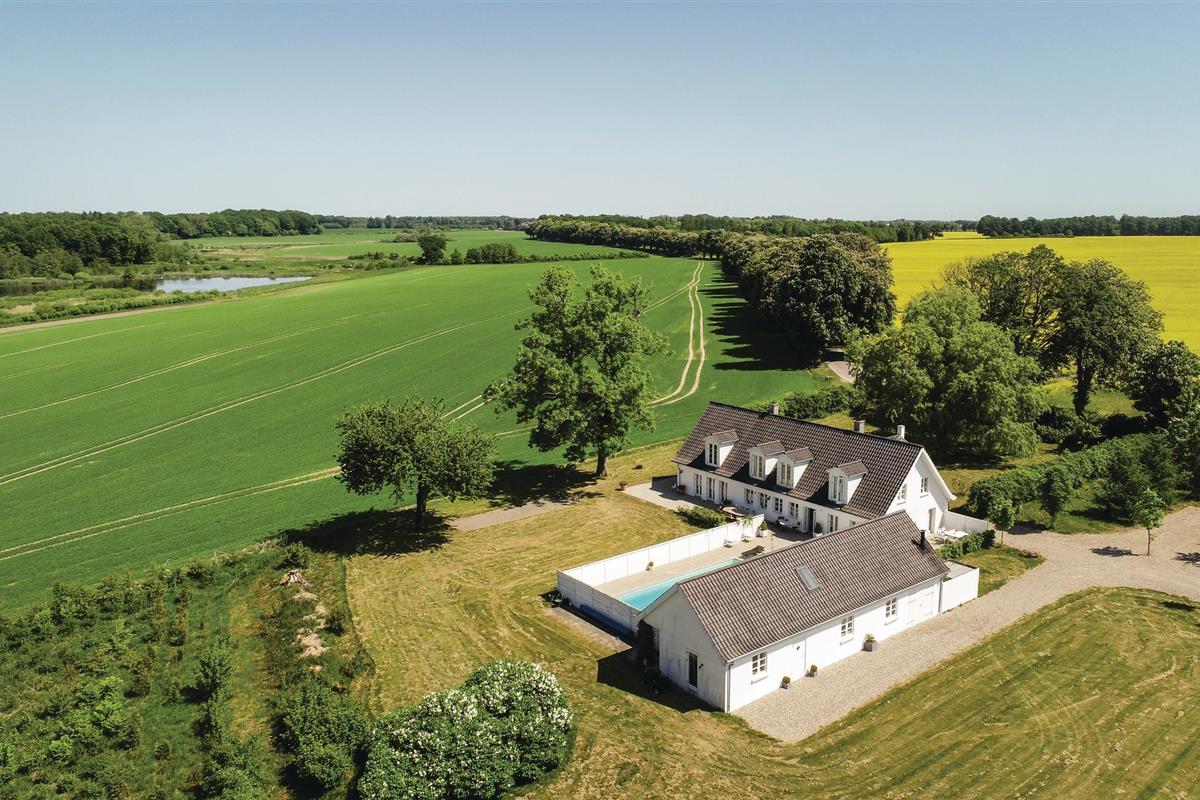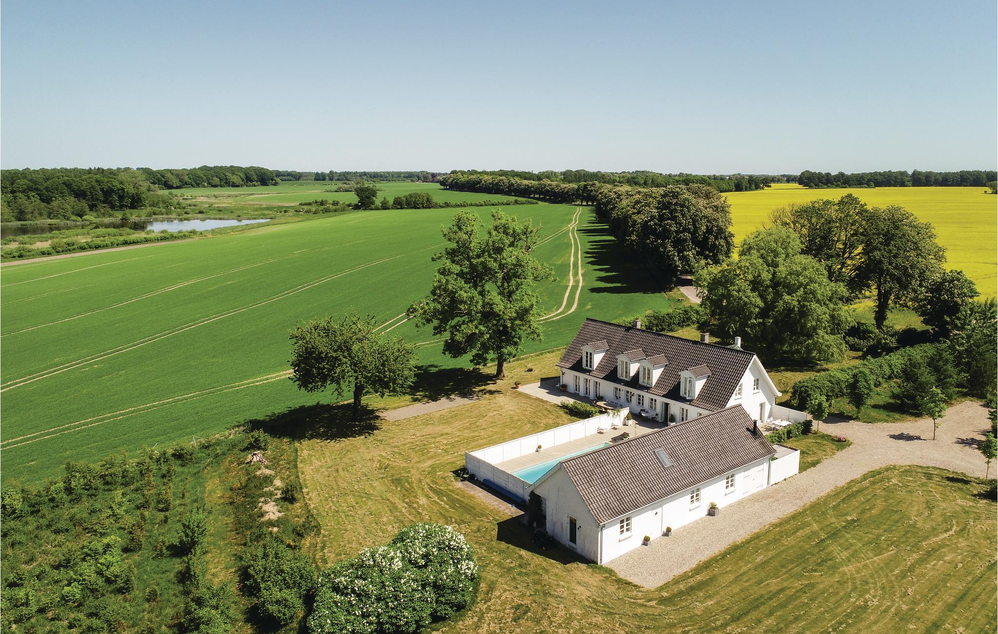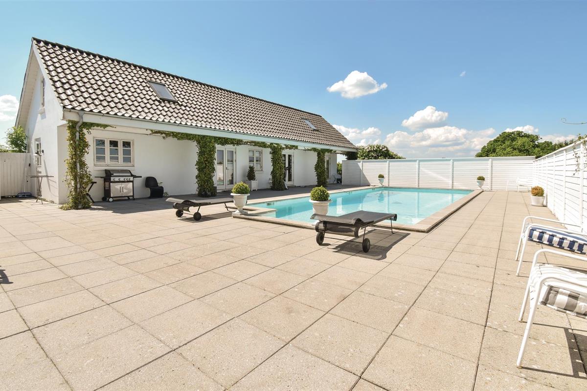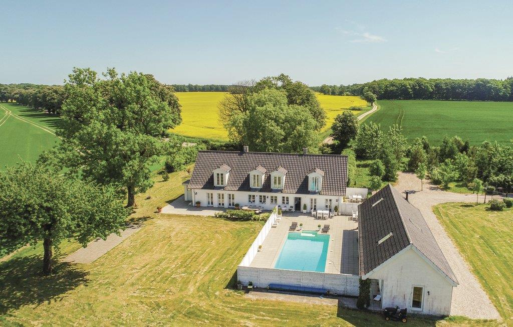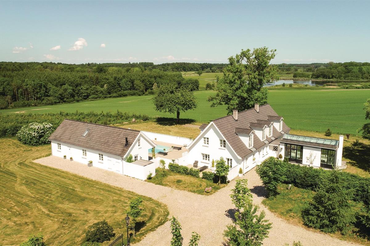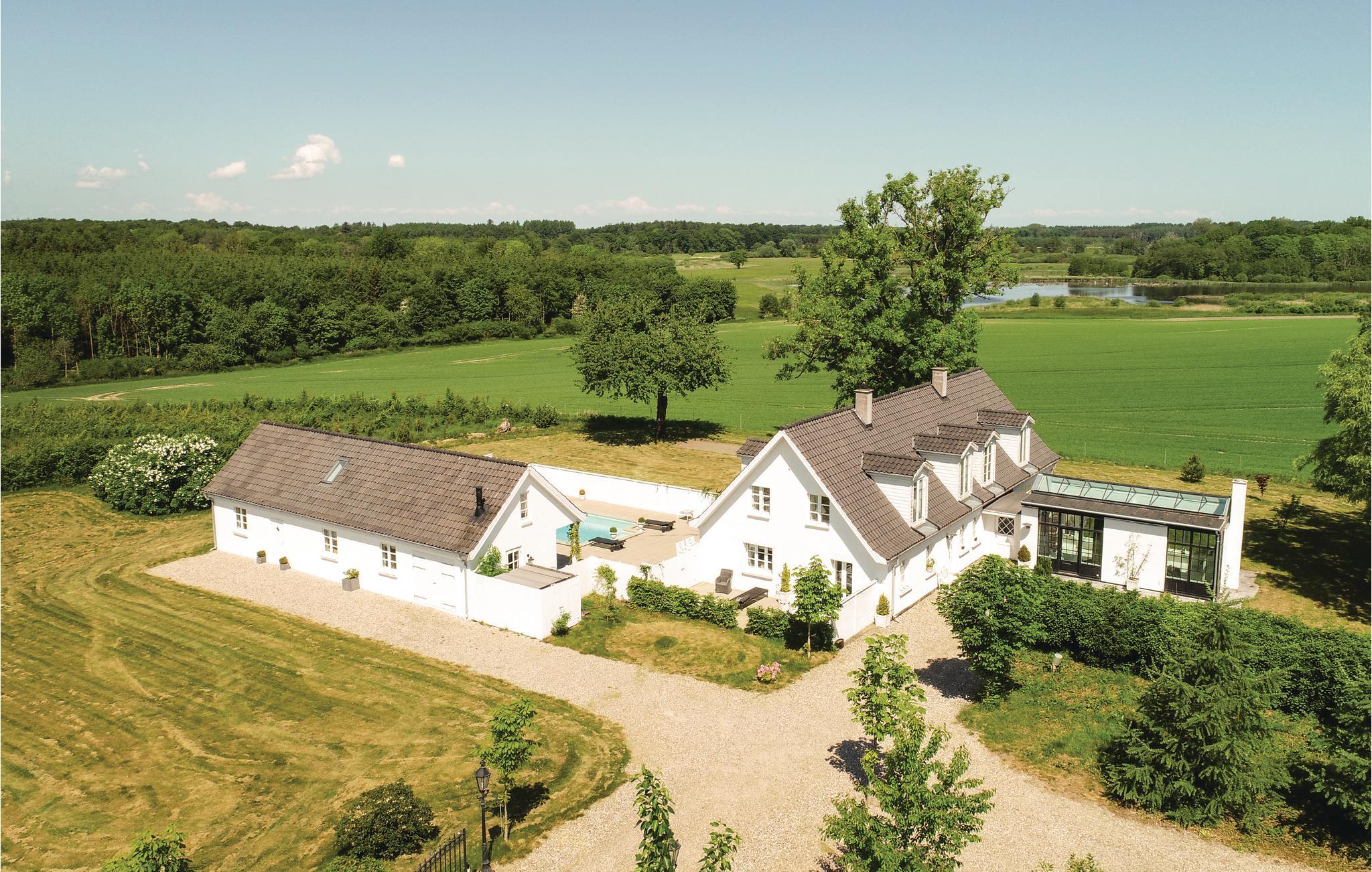 Ontdek dit luxe vakantiehuis met zwembad, ruime slaapkamers en prachtige natuuruitzichten in Ørbæk, Denemarken.