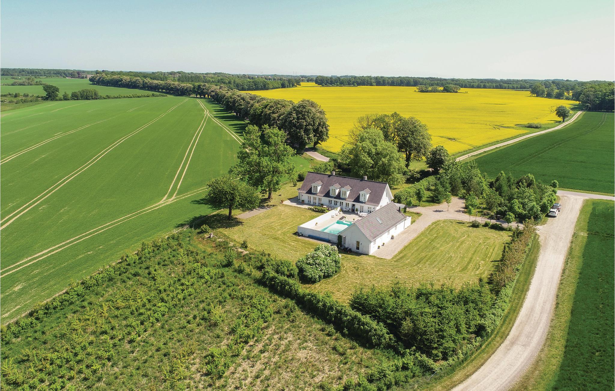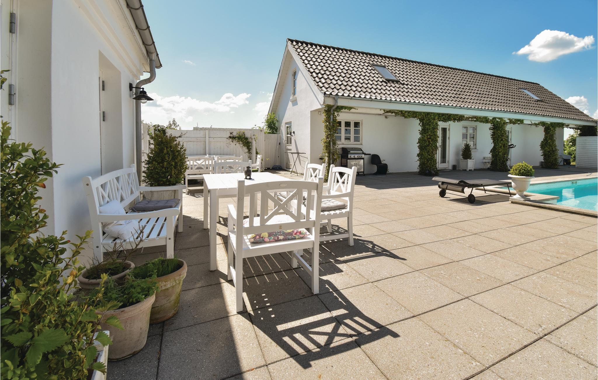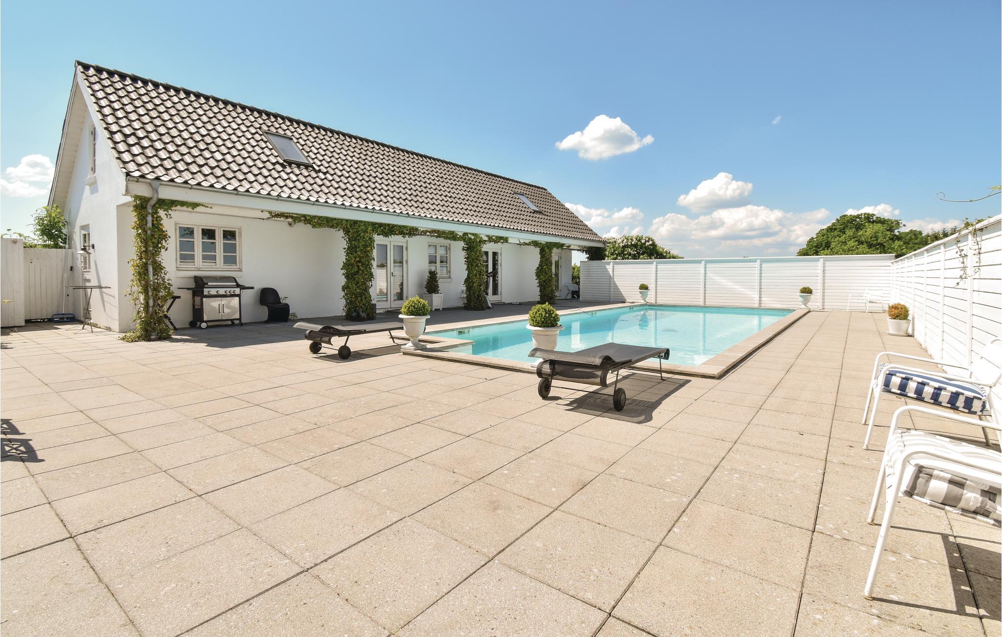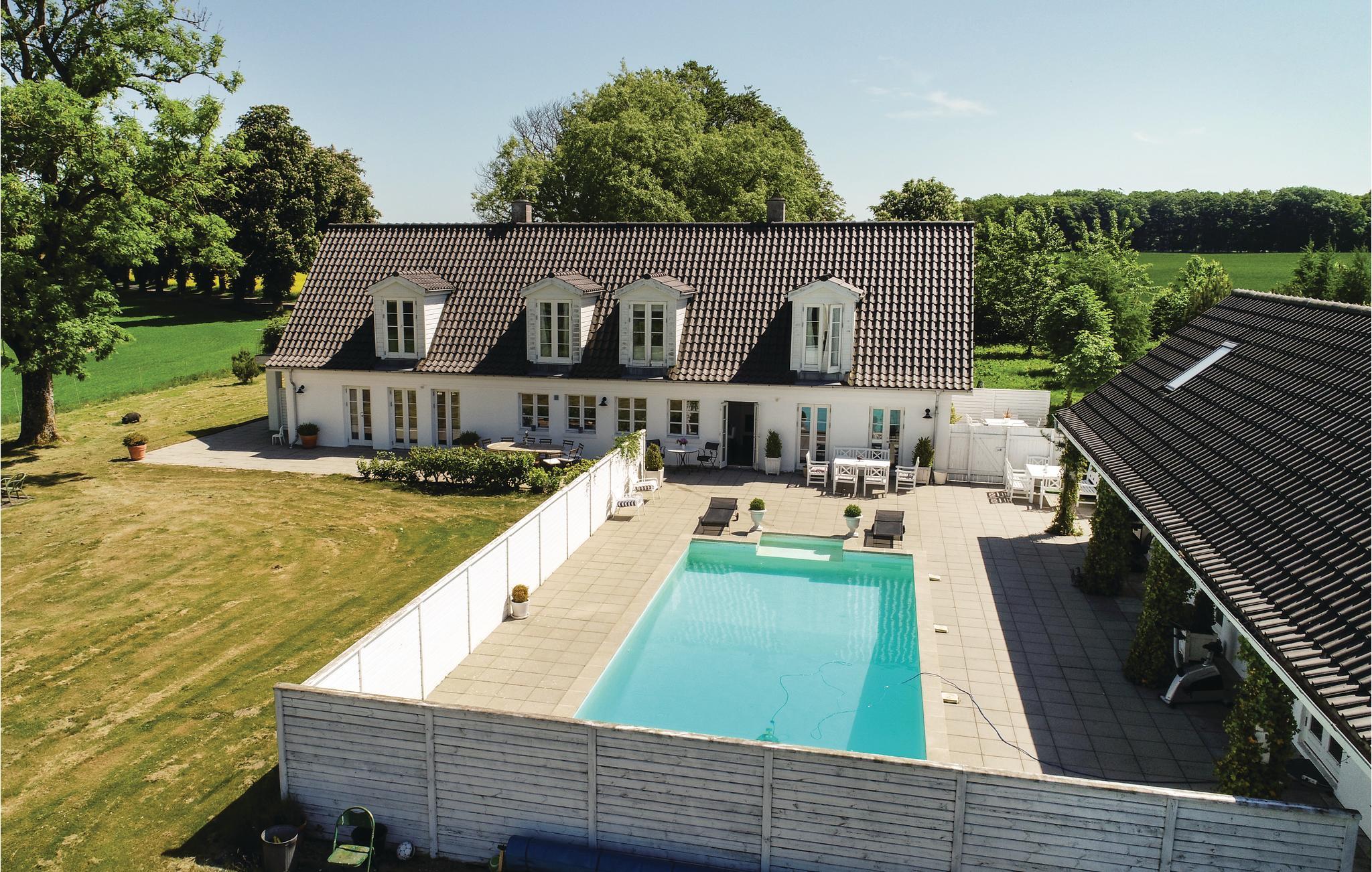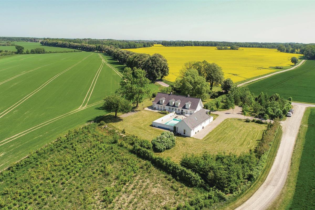Ontdek dit luxe vakantiehuis met zwembad, ruime slaapkamers en prachtige natuuruitzichten in Ørbæk, Denemarken.