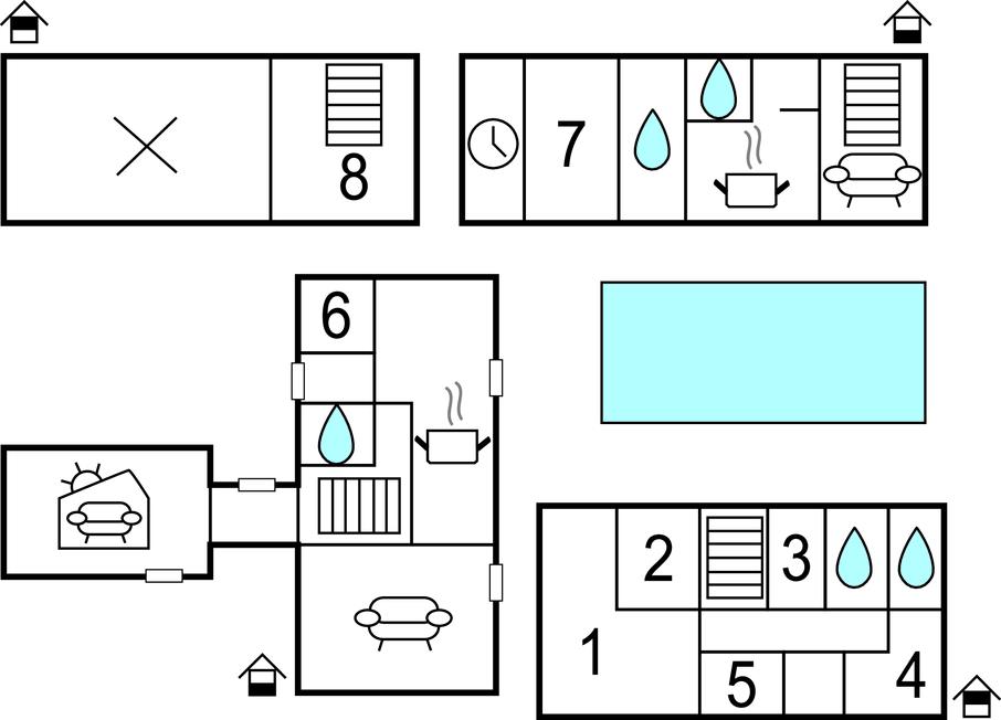 De mooie slaapkamers zijn verdeeld over de begane grond, de eerste verdieping en het bijgebouw. Een van de slaapkamers is een doorloopkamer, sommige hebben een eigen badkamer en een heeft een inloopkast.