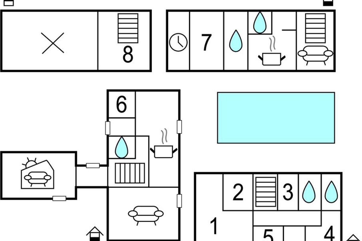 Vanuit de keuken is er toegang tot de omheinde binnenplaats met een groot buitenzwembad en het bijgebouw. Het bijgebouw bevat een suite met een eigen badkamer en een kleiner appartement met een eigen keuken, woonkamer, badkamer en een slaapzolder met drie eenpersoonsbedden. Je kunt spelen en plezier maken in de tuin rondom het huis. Er is ook een petanquebaan in de tuin.