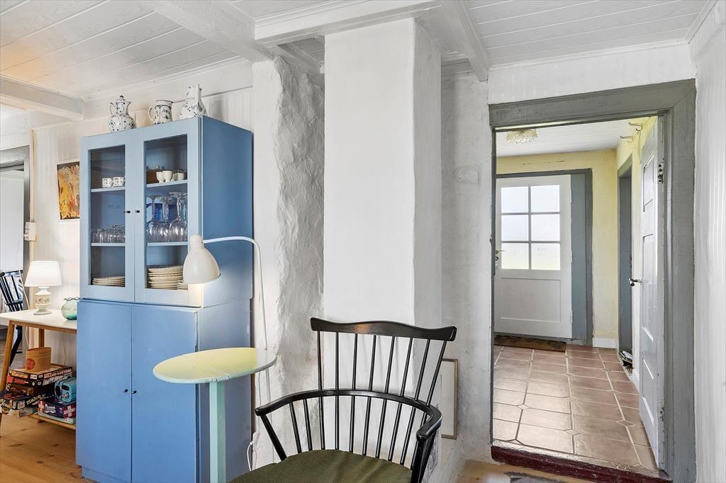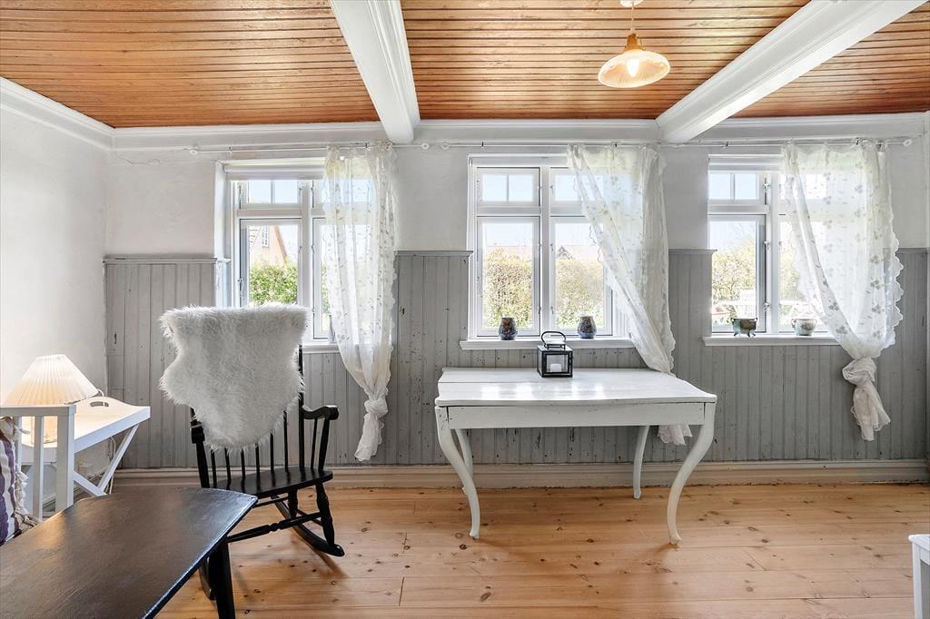 Das alte Wohnhaus auf dem Lande verzaubert mit seiner ganz besonderen Wohnatmosphäre, die auf die alten Sprossenfenster, die alten Türen, die rustikalen Wände und Decken sowie auf die teils unterschiedlichen Bodenhöhen zurückzuführen ist. Dein Ferienhaus wurde teilweise renoviert. Die Wohn- und Schlafbereiche ziert ein hübscher Holzfußboden. Im Wohnraum an der Westseite des Hauses kannst du es dir auf dem Sofa gemütlich machen, den Fernseher einschalten und dich beim Lesen eines guten Buches entspannen. Im Wohnraum steht zudem ein zusätzlicher Schlafplatz zur Verfügung. Das Esszimmer befindet sich neben der gut ausgestatteten Küche, die mit ländlichem Charme vergangener Tage verwöhnt und nach einer Renovierung unter anderem einen Geschirrspüler beinhaltet. Zusätzlich zum Schlafplatz im Wohnraum umfasst dein Ferienhaus drei Schlafräume. Es gibt also genug Platz für 4 Erwachsene und 2 Kinder im Haus. Einer der Schlafräume begrüßt dich mit zwei Einzelbetten. Die anderen Schlafräume sind kleiner und mit je einem Einzelbett eingerichtet. Dieses Ferienhaus wirst du lieben, sofern du die Ruhe und die Idylle eines beschaulichen Inseldorfes erleben und deinen Urlaub in einem gemütlichen, älteren Haus voller Geschichte und Charme verbringen möchtest.