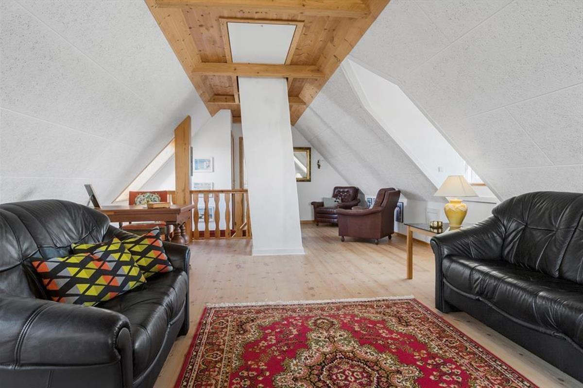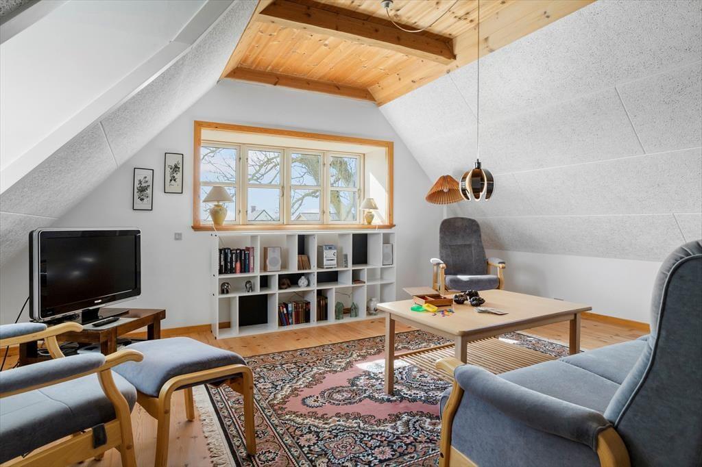 Durch die Eingangstür trittst du in den Raum. Dieser große Eingangsbereich ist sehr praktisch, insbesondere wenn ihr nach einem Tag voller Abenteuer im Freien nach Hause kommt oder bei der An- und Abreise das ganze Gepäck abstellt .Von hier aus führt auch eine Treppe in den ersten Stock, wo dich ein großes und gemütliches Wohnzimmer erwartet, das euch Raum bietet zum Entspannen und Nachdenken und für gemeinsame Stunden. Hier findest du Sofas auf denen du dich entspannen oder es dir mit einem Film gemütlich machen kannst. Zwei Sessel oder ein Platz am Schreibtisch laden ein, ein gutes Buch zu lesen oder deine Tagesabenteuer zu planen. Außerdem habt ihr von hier aus eine wundervolle Aussicht auf Felder und das Leben auf Südsamsø. Im ersten Stock befindet sich ein schönes und neu eingerichtetes Zimmer für diejenigen, die sich schöne Aussicht und viel Platz in ihrem Schlafzimmer wünschen und eine zweite Toilette, für alle die sich im ersten Stockwerk aufhalten.