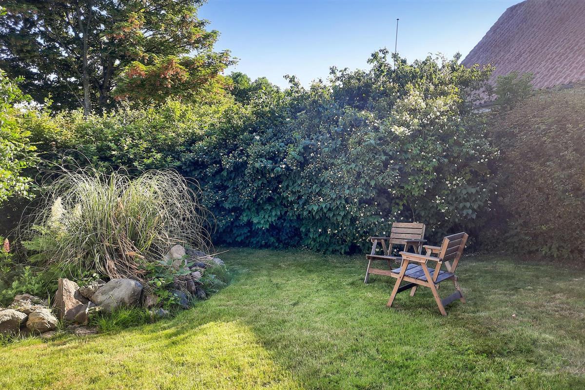 De decoratief beplante tuin is een echte oase van welzijn. Zoek een mooi plekje om buiten te genieten en zit 's avonds gezellig samen bij de vuurschaal.