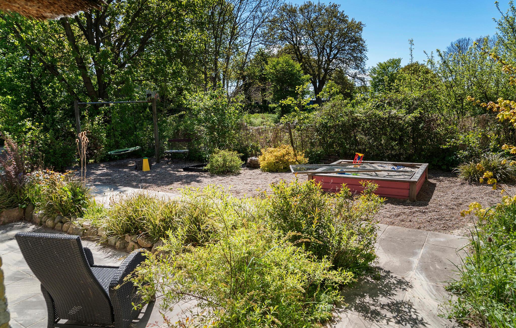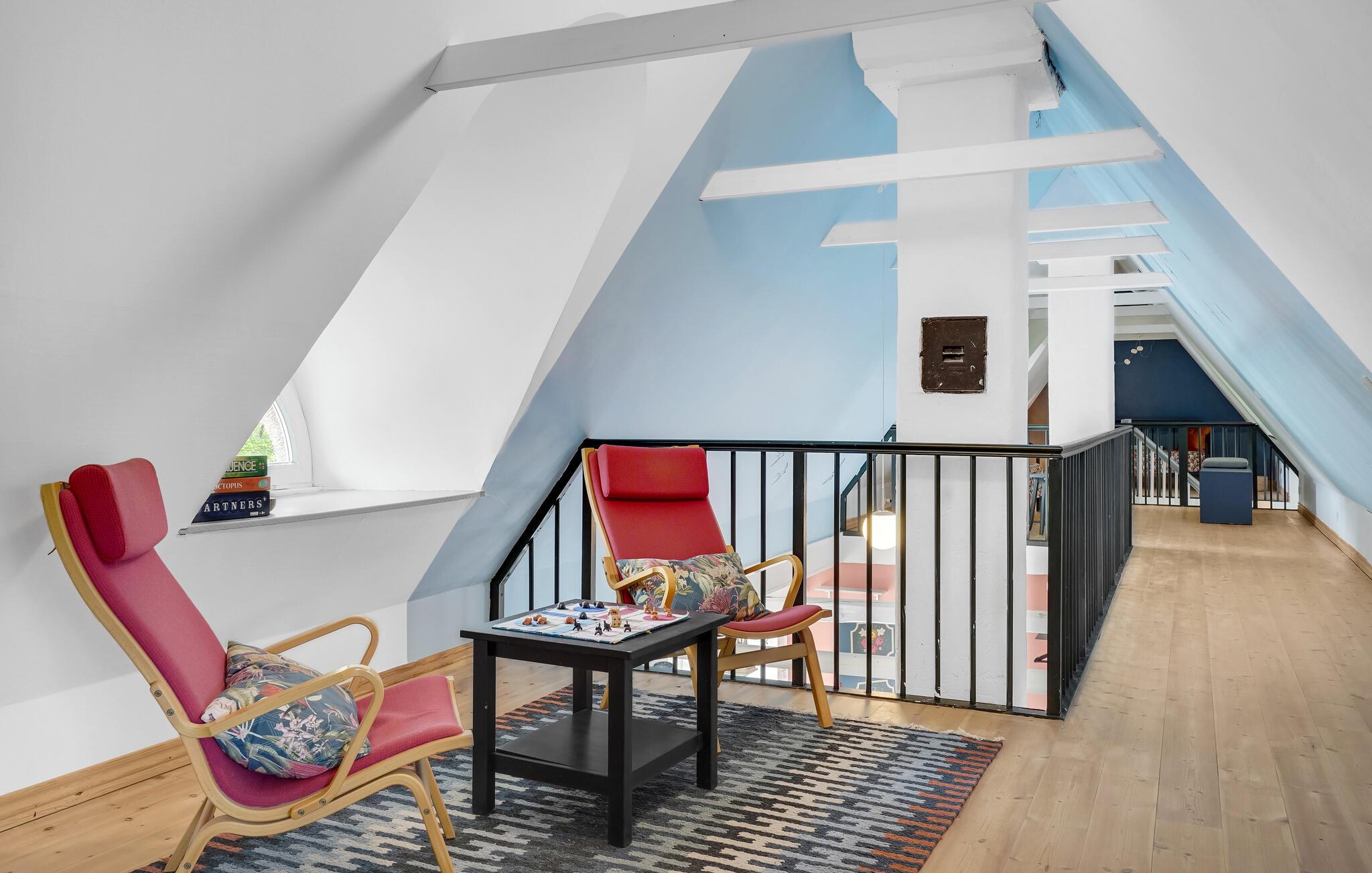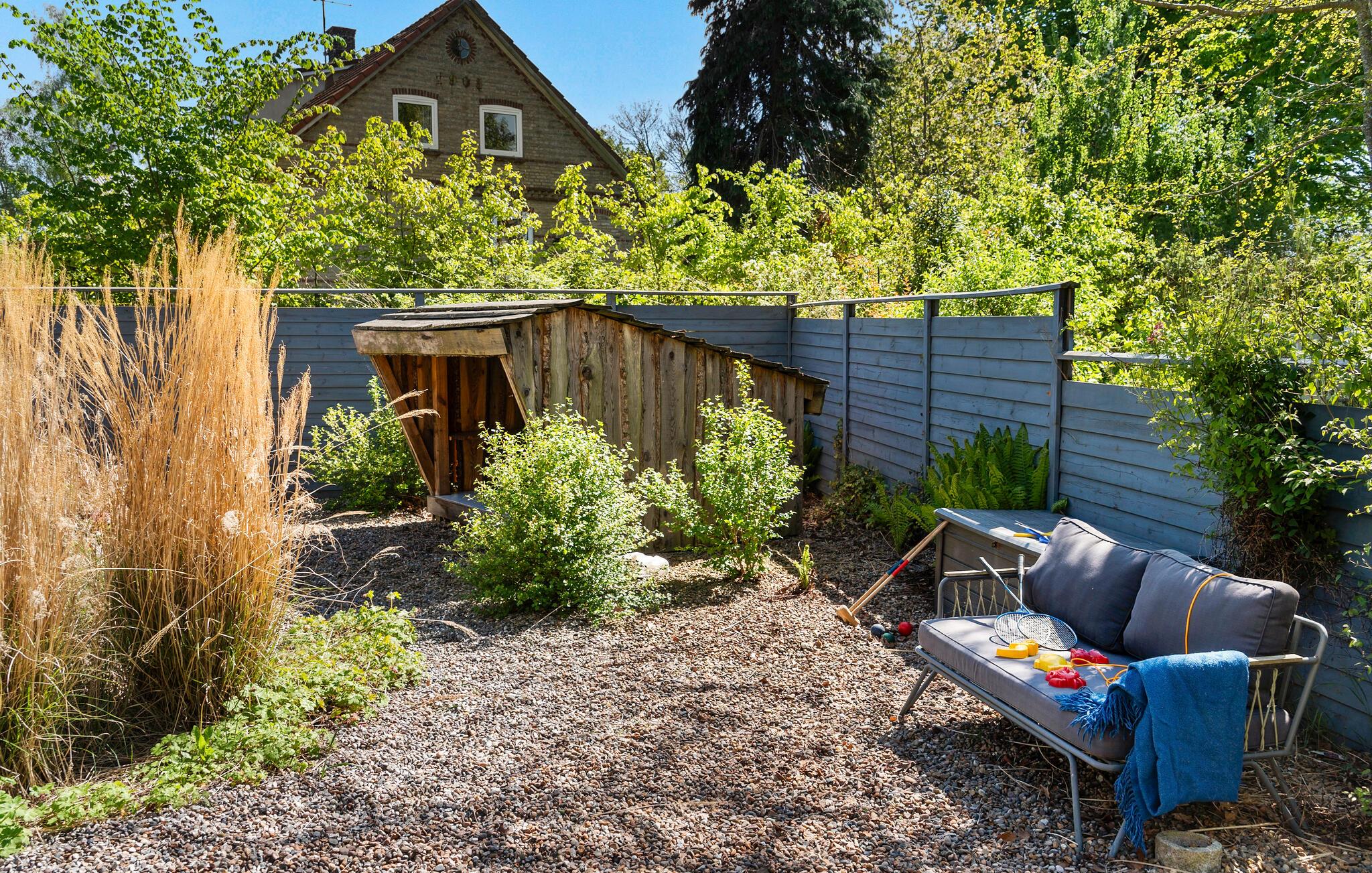 Het huis heeft een mooie binnenplaats met een overdekt terras, evenals een speeltuin en een typisch Deense schuilplaats met voorzieningen om buiten te slapen.