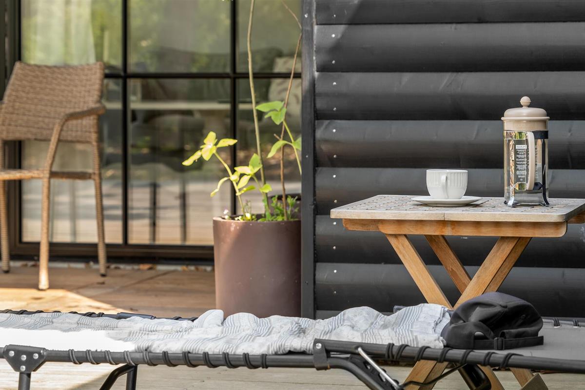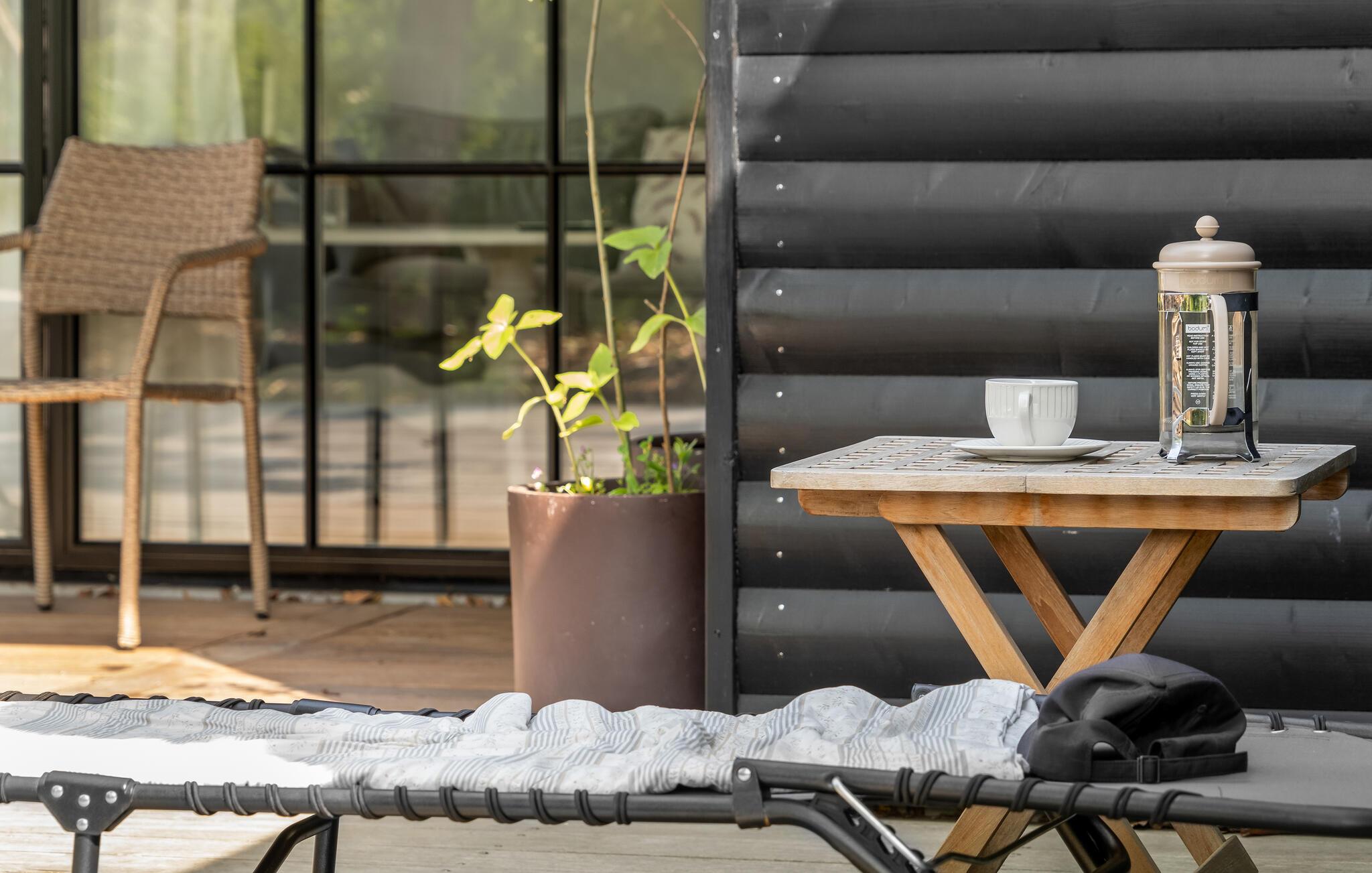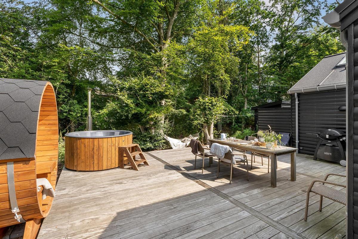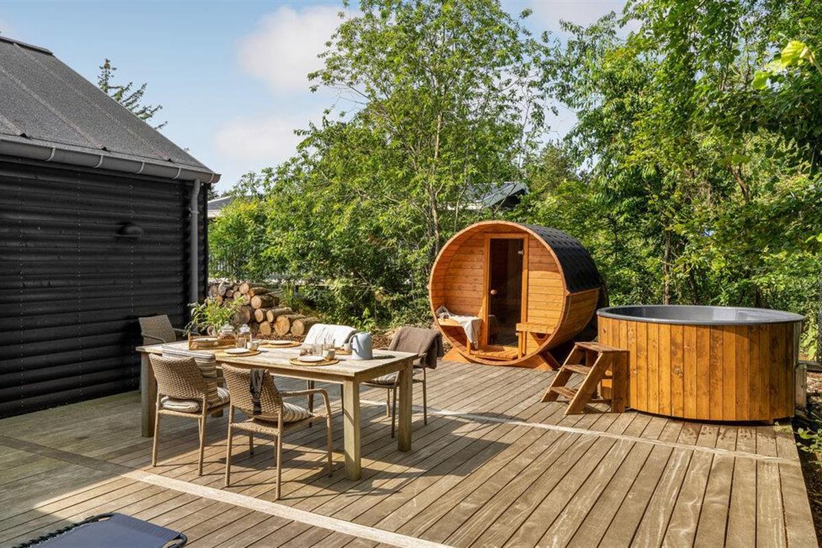 Het open terras met tuinmeubelen en barbecue is een geweldige plek om te genieten van een barbecue of een heerlijk ontbijt. Het Finse houten bad en de buitensauna nodigen u uit om te ontspannen.