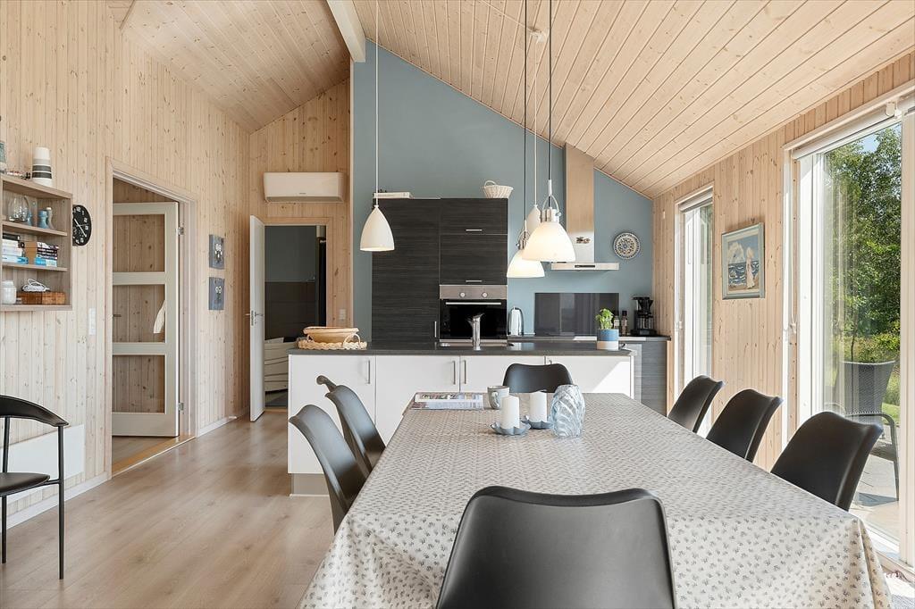 Viel Platz und Aktivitäten beschreiben die Einrichtung. Es sind drei Schlafzimmer mit jeweils zwei Einzelbetten, die zu Doppelbetten zusammen geschoben werden können, ein großer Schlafboden mit vier Matratzen für die jüngsten Familienmitglieder, zwei geräumige und tolle Badezimmer, eines mit Whirlpool und Sauna, ein Aktivitätsraum mit Dart und Poolbillard, der zu einer Tischtennisplatte umgebaut werden kann, vorhanden. Der große Küchenbereich bietet eine hochwertige Einrichtung und einen fantastischen Lichteinfall - und natürlich viel Platz. Es wurde überall auf das kleinste Detail geachtet und alles wird von dem atemberaubensten Blick auf die Ostsee begleitet.