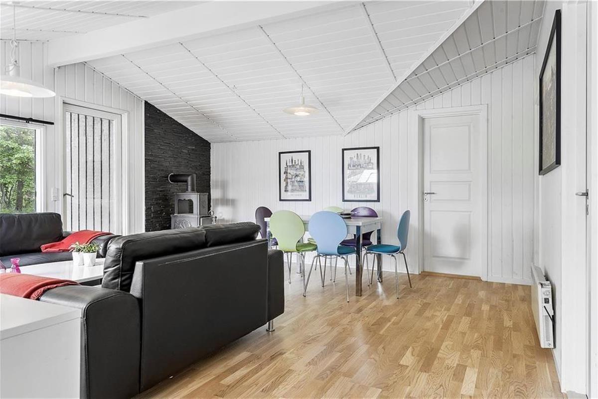 Das Ferienhaus ist sehr praktische Rahmenbedingungen für einen Familienurlaub oder einen Aufenthalt zu zweit oder mit zwei Paaren. Die Küche ist offen und nur durch eine Halbmauer vom Wohnzimmer optisch getrennt, so kann die gesamte Familie sich gegenseitig bei den jeweilig anderen Aktivitäten beobachten. Im Wohnzimmer sind ein Essplatz und eine gemütliche Sofagruppe vor den großen Fenstern vorhanden, die das herrliche Licht Nordjütlands hinein fließen lassen. Darüber hinaus verfügt das Haus über drei Schlafzimmer mit insgesamt sechs Schlafmöglichkeiten und ein Badezimmer mit Duschkabine. Die Einrichtung ist in warmen Farben gehalten. Der alte, immer noch voll funktionstüchtige Kamin trägt zu einer extra Portion Charme bei. Alles in allem ein gemütliches, charmantes und sehr praktisches Haus für jede Urlaubsform.