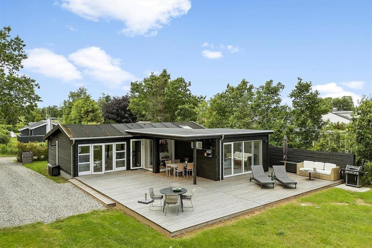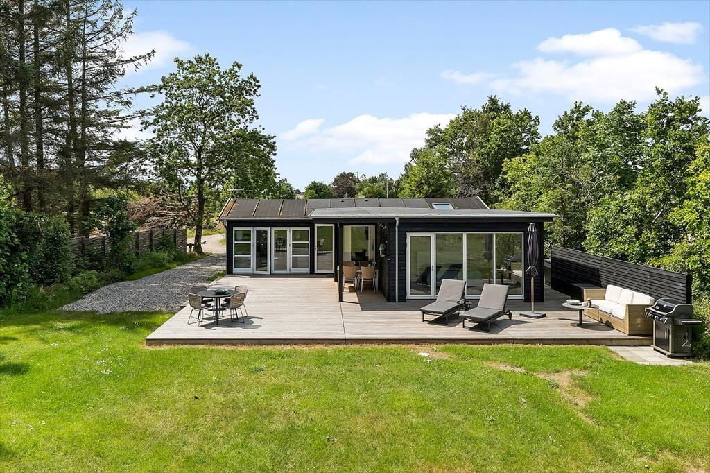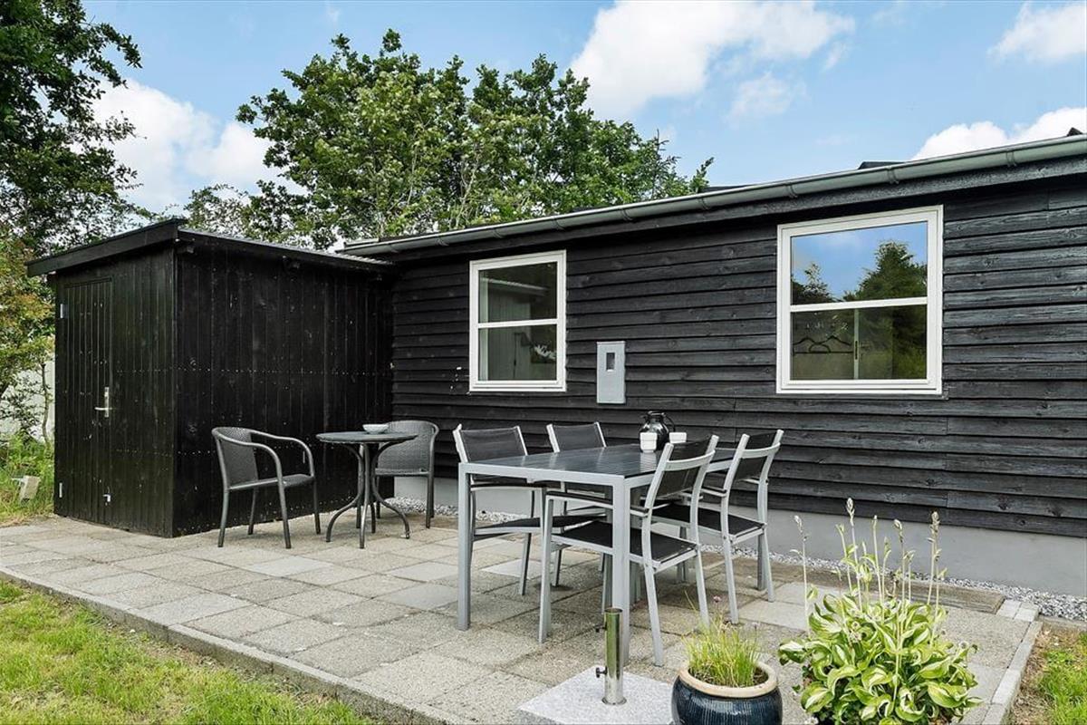 Føromtalte morgenkaffe kan det anbefales at nyde på husets store østvendte terrasse i det spæde morgengry, mens naturen vågner og nattens dug langsomt fordamper fra græs og planter. Det er en salig fornemmelse, som det er alle velundt at opleve, når man nu endelig har ferie fra den hektiske hverdag. En salighed, som bliver i kroppen langt op af dagen. En stor del af terrassen er overdækket, så der er næsten ingen vejrmæssige undskyldninger for at trænges indendørs. Frisk luft, masser af lys og frihed!