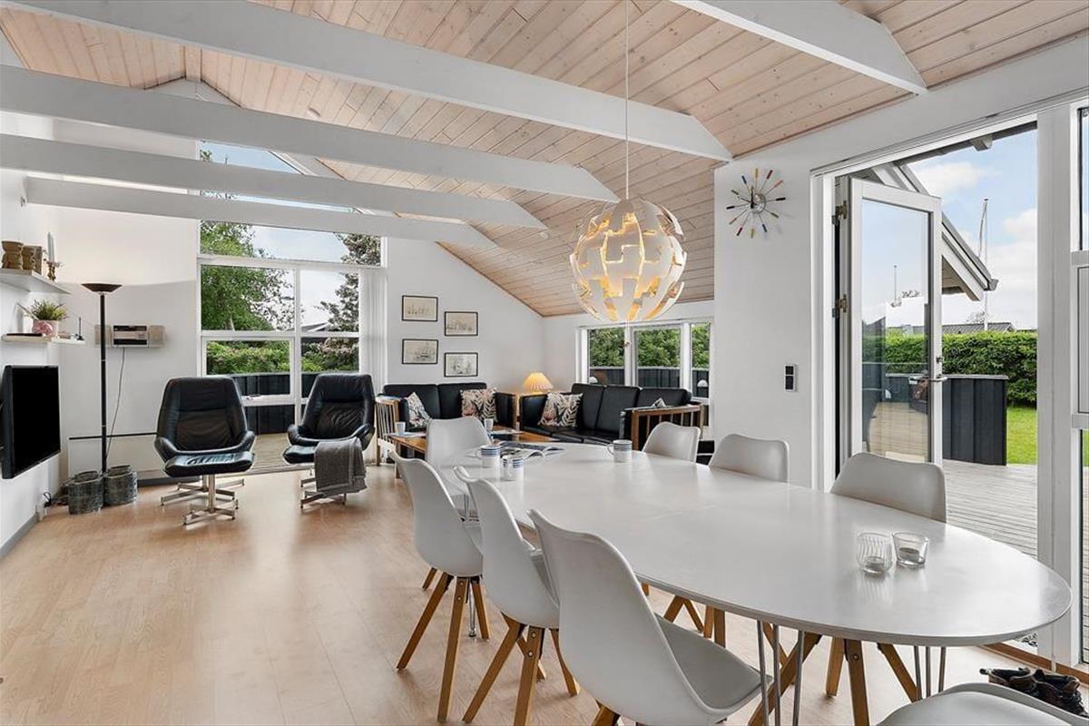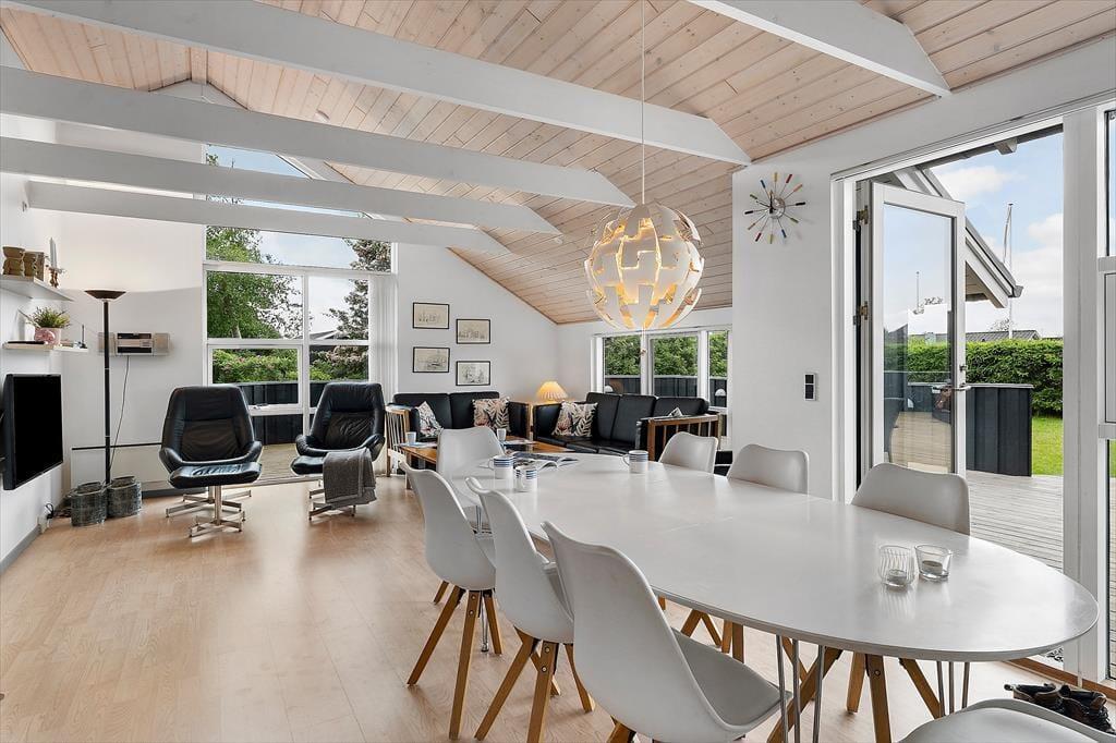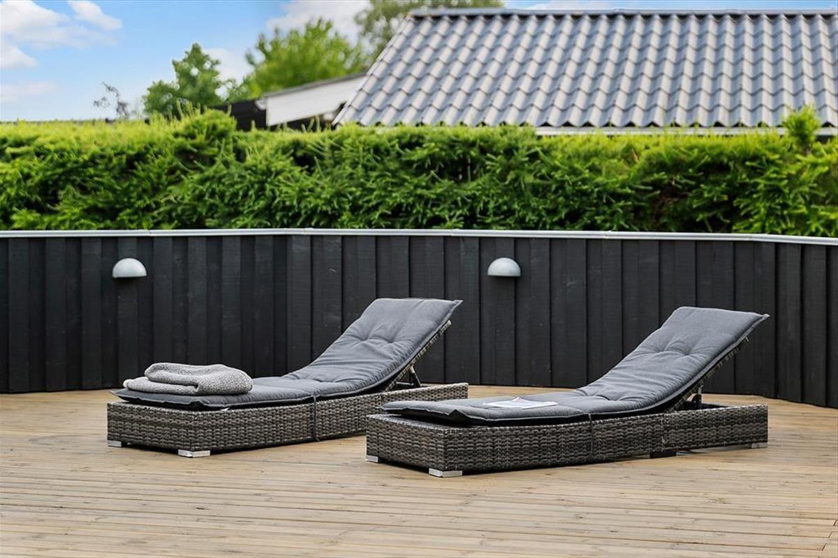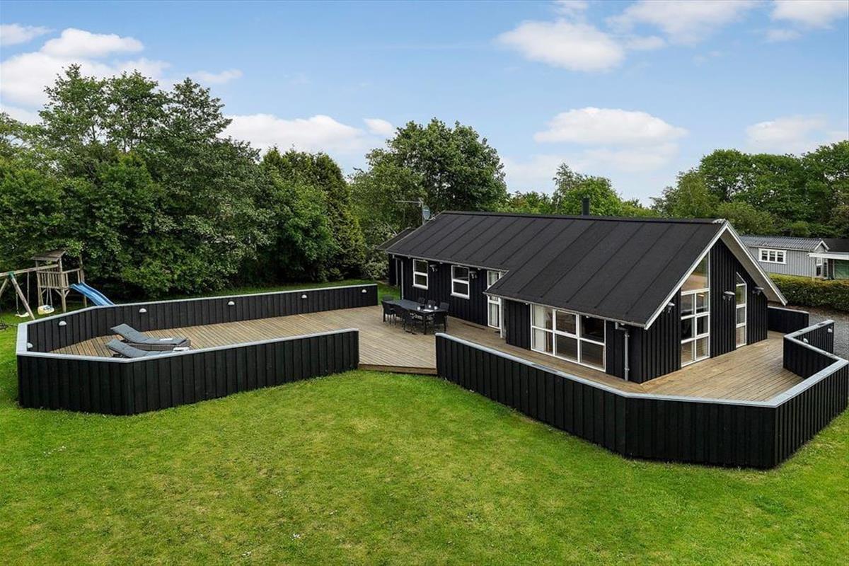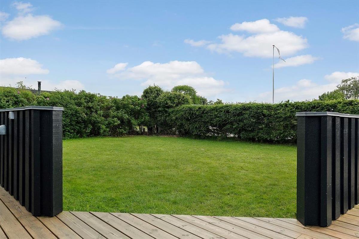 Das Ferienhaus liegt auf einem schönen Grundstück, jedoch ist es die Terrasse, die um das gesamte Haus verläuft, die besonders hervorzuheben ist. Hier finden Sie immer einen Platz in der Sonne oder, an den etwas windigeren Tagen, eine geschützte Ecke. Vom Essbereich aus gelangt man auf die Terrasse. Genießen Sie abends ein leckeres Essen, mit einer Flasche Wein oder Saft, im Freien.
