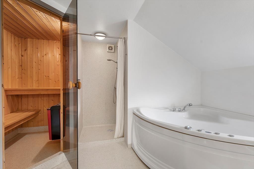 Dieses großartige Ferienhaus mit 78 m² im Haupthaus sowie 16 m² im Nebengebäude ist in tadellosem Zustand und bietet reichlich Gelegenheit, für größere Familien, bzw. zwei Familien, Urlaub zu machen. Durch die Glastüren des Eingangsbereichs fällt reichlich Licht ins Haus. Die offene Küche liegt in guter Verbindung mit dem Wohnzimmer. Vom Essbereich aus gelangen Sie auf die Terrasse, so haben Sie die freie Wahl, ob Sie drinnen oder draußen essen möchten. Das Wohnzimmer ist mit stilvollen Möbeln, wie Sofa und Lehnstuhl eingerichtet und bietet viel Platz für alle. Das Ecksofa lädt zum Entspannen ein, z. B. bei einem Fernsehfilm oder mit einer Decke und einem guten Buch. Die Küche ist hervorragend ausgestattet und verfügt selbstverständlich über eine Geschirrspülmaschine, einen Herd mit Ceran-Kochfeldern und eine Kühl-Gefrier-Kombination. Das Bad verfügt über einen Whirlpool und eine Sauna sowie natürlich auch über eine Duschnische. Ebenfalls im Bad befinden sich die Waschmaschine und der Trockner, somit ist das Haus für lange Urlaube bestens geeignet. Alle drei Schlafzimmer verfügen über bequeme Doppelbetten. Die kleinsten Gäste des Hauses können sich ganz gemütlich auf den Schlafboden unter dem Dach mit einem guten Buch oder dem iPad zurückziehen. Im Haus stehen zudem ein Kinderhochstuhl und ein Kinderbett für die allerkleinsten Gäste bereit. Der Kaminofen ist zentral platziert und somit der perfekte Wärmespender, der während Ihres Urlaubs Behaglichkeit im Haus verbreitet. Im Nebengebäude finden Sie weitere Schlafmöglichkeiten, dort sind ein Doppelbett sowie ein Bettsofa vorhanden. Außerdem ein kleines WC mit Waschbecken. Das Haus wird mit einer Wärmepumpe, dem Kaminofen und elektrischen Heizkörpern sehr kostengünstig beheizt, so dass Sie dieses schöne Haus das ganze Jahr über mieten können.