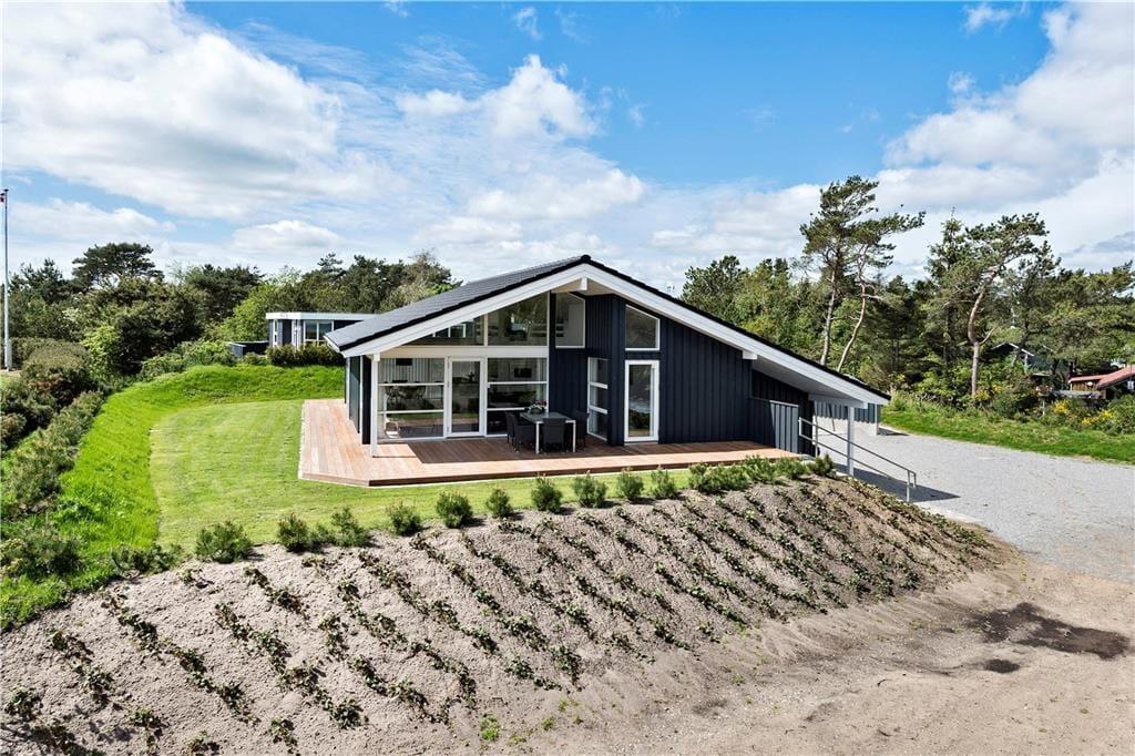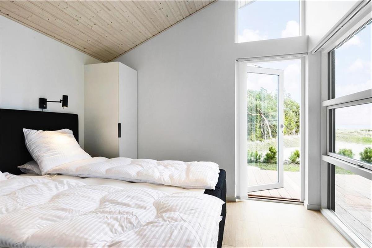 Dieses im Jahr 2018 erbaute Urlaubsdomizil empfängt Sie mit einer wohldurchdachten 118 m² umfassenden Wohnfläche, die sich über zwei Ebenen erstreckt. Hinzu gesellt sich, ganz oben in der Spitze des Hauses, ein eingezogener Hängeboden, der als zusätzlicher, gemütlicher Rückzugsort dient. Der gesamte Innenraum besticht mit einer geschmackvollen, schlichten Möblierung, die einen schönen, dunklen Kontrast zu den ansonsten hellen Farbauswahl bildet. Die hohen Decken unterstreichen sehr schön das helle und luftige Wohnambiente. Dank der großen Glaspartien eröffnet sich Ihnen ein herrlicher Ausblick auf das Meer, den Himmel und die Natur. Neben einem überaus angenehmen Ambiente, dürfen Sie sich auf zahlreiche schöne und komfortable Details freuen. So sind beispielsweise die drei vorhandenen Schlafräume allesamt mit großen Doppelbetten und guten Boxmatratzen ausgestattet und im Wohnbereich sorgt ein Smart-TV für Unterhaltung. Die in den Wohnraum integrierte Küchenabteilung wird mit ihrer guten Ausstattung selbst anspruchsvollste Hobbyköche begeistern. Eines der beiden Badezimmer verleiht dem Mietobjekt mit seinem Whirlpool und der Sauna einen Hauch von Wellnessflair und verspricht Ihnen unvergessliche Momente voller Erholung und Entspannung.