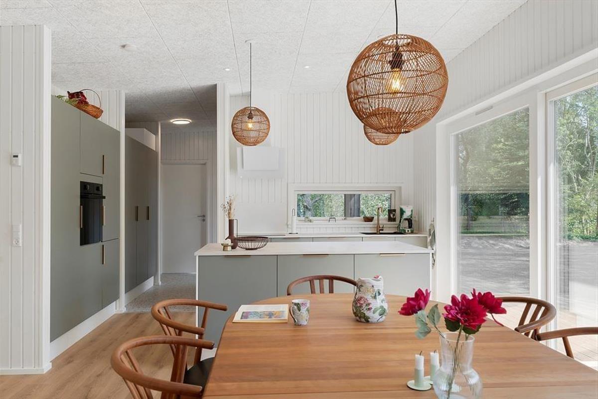 Das Ferienhaus empfängt Sie mit einer hellen und luftigen Atmosphäre, in der Sie sich dank der raffinierten Inneneinrichtung sofort wohlfühlen werden. Mit hohen Decken, großen Fenstern und modernen Lösungen wurde eine gemütliche und komfortable Umgebung geschaffen, die zu vielen Stunden Urlaubsspaß einlädt. Der offene Wohnbereich vereint Küche, Essbereich und Sofaecke, so dass die ganze Familie zusammenkommen kann, um zu kochen, zu spielen oder zu entspannen. Die gemütliche Einrichtung - mit warmen Stoffen und schönen Details - macht es leicht, in Urlaubsstimmung zu kommen, egal ob es draußen regnet oder die Sonne scheint. Die Tatsache, dass das Haus zwei Badezimmer hat, macht es besonders einfach, mehr als eine Person unter einem Dach zu sein, und alles ist in einem modernen Stil gehalten, der deutlich macht, dass das Ferienhaus brandneu ist. Mit anderen Worten: Sie haben alles, was Sie für einen komfortablen Urlaub brauchen, bei dem Funktionalität und Gemütlichkeit im Vordergrund stehen.
