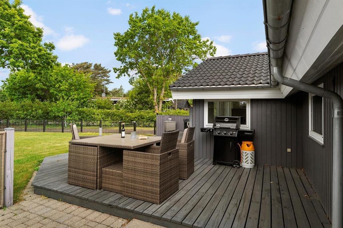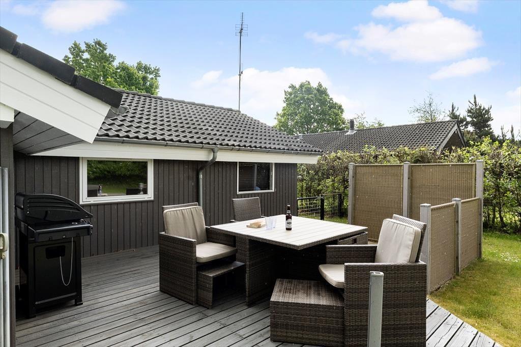Der Garten ist genauso einladend wie das Haus selbst. Die große Holzterrasse dient als natürlicher Treffpunkt, wo ihr die Mahlzeiten im Freien genießen, eine Tasse Kaffee in der Morgensonne trinken oder den Grill für einen stimmungsvollen Sommerabend anfeuern könnt. Der Garten ist eingezäunt, sodass Kinder und Hund sicher auf dem Rasen spielen können, während die Erwachsenen sich in den Gartenmöbeln zurücklehnen. Wenn die Sonne hoch am Himmel steht, bietet es sich an, unter freiem Himmel zu entspannen – vielleicht mit einem Buch, vielleicht mit einer Partie Krocket oder einfach mit geschlossenen Augen, während der Vogelgesang den perfekten Hintergrund für euren Ferientag bildet.