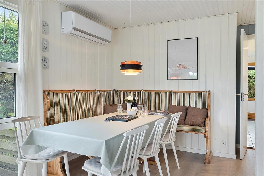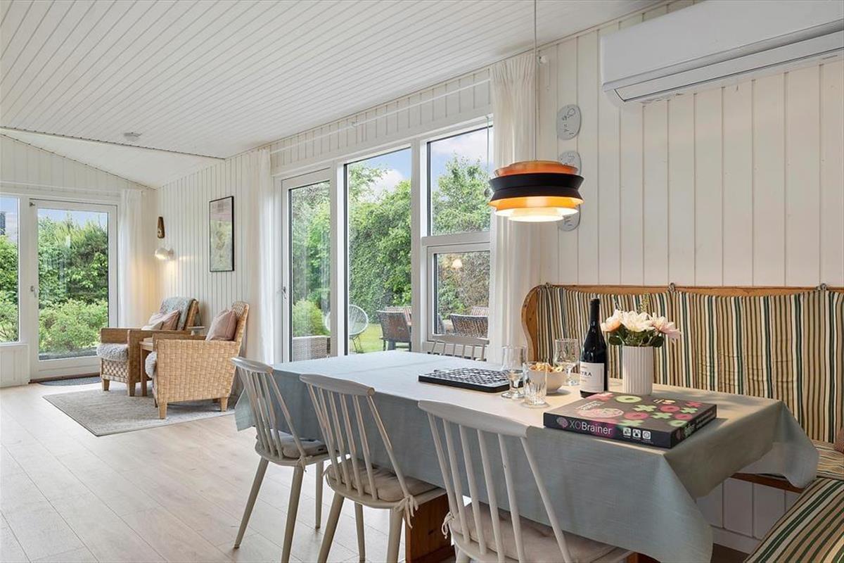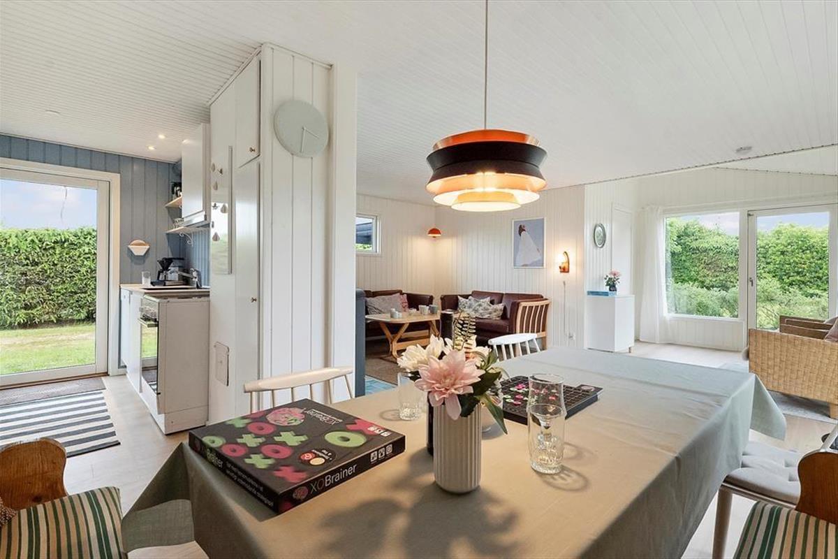 Wenn Sie das Ferienhaus in Hedegaarde Nord 18 betreten, spüren Sie sofort die besondere Atmosphäre, die ein echtes klassisches Ferienhaus auszeichnet. Die Einrichtung ist gemütlich und heimelig mit hellen Materialien, bequemen Möbeln und kleinen Details, die es Ihnen leicht machen, sich zu entspannen. Das Wohnzimmer lädt zum Entspannen mit einem guten Buch oder gemütlichen Brettspielen ein und bietet viel Platz für geselliges Beisammensein mit Ihren Lieben. Die Küche befindet sich in einem separaten Bereich und ist hell und funktional – hier finden Sie alles, was Sie für Ihre Mahlzeiten im Urlaub benötigen, sei es der Morgenkaffee, ein schnelles Mittagessen oder ein hausgemachtes Abendessen. Hier finden Sie eine Urlaubsbasis, wo die Atmosphäre warm ist und Sie die Tage in Ihrem eigenen Tempo genießen können.