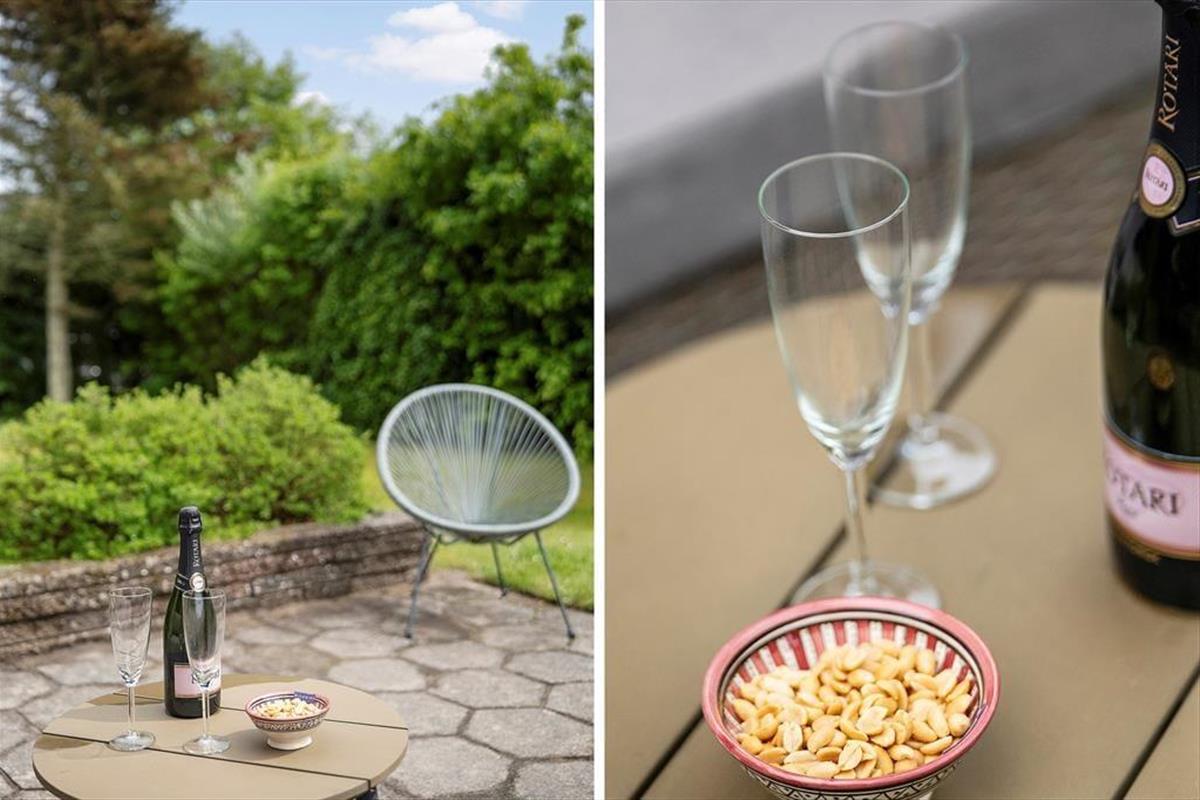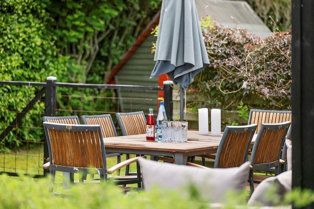 Im grünen und sonnigen Garten spielt sich das Leben von morgens bis abends im Freien ab. Hier gibt es viel Platz für Kinder und Erwachsene, um sich auszutoben – sei es beim Ballspielen auf dem Rasen oder beim Entspannen in den Gartenmöbeln. Die nach Süden ausgerichtete Fliesenterrasse ist ein idealer Treffpunkt, an dem Sie Ihre Mahlzeiten unter freiem Himmel genießen, einen ruhigen Moment in der Sonne verbringen oder sich einfach mit einem kühlen Getränk und Blick auf den blauen Himmel in Urlaubsstimmung versetzen können. Wenn der Abend hereinbricht und Sie den Grill anzünden, spüren Sie sofort, dass der Urlaub richtig begonnen hat. Alles rund um das Haus strahlt eine entspannte Urlaubsatmosphäre und die Freiheit aus, einfach nur zu sein.