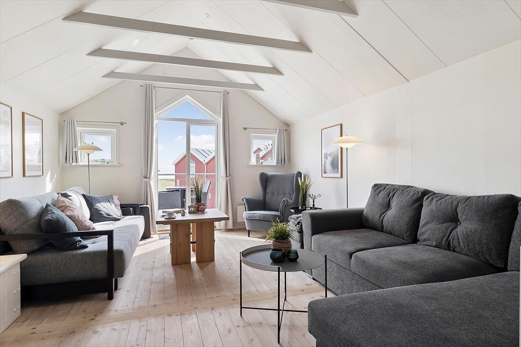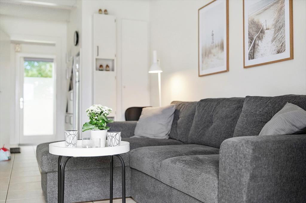 Im Inneren des Ferienhauses erwartet Sie eine helle und einladende Atmosphäre, in der die gemütlichen Details eine warme und angenehme Stimmung schaffen. Die Räume sind mit Fokus auf Komfort und Entspannung eingerichtet, und das Wohnzimmer lädt zu ruhigen Momenten mit guter Lektüre oder Gesprächen mit der Familie ein. Vom Wohnzimmer aus haben Sie einen freien Blick auf das Meer, sodass Sie auch drinnen das Rauschen der Wellen und die frische Seeluft genießen können. Die Einrichtung der Ferienwohnung ist ideal für Paare und Familien, und da die Kinder sicher draußen spielen können, können die Erwachsenen Kaffeepausen, das Kochen und gemütliche Abende in Ruhe genießen. Hier fühlt man sich schnell wie zu Hause, und die hellen Farbtöne und gemütlichen Details des Hauses machen es zu einem Ort, an dem man gerne verweilt – auch wenn die Tage Sonne und Strand versprechen.