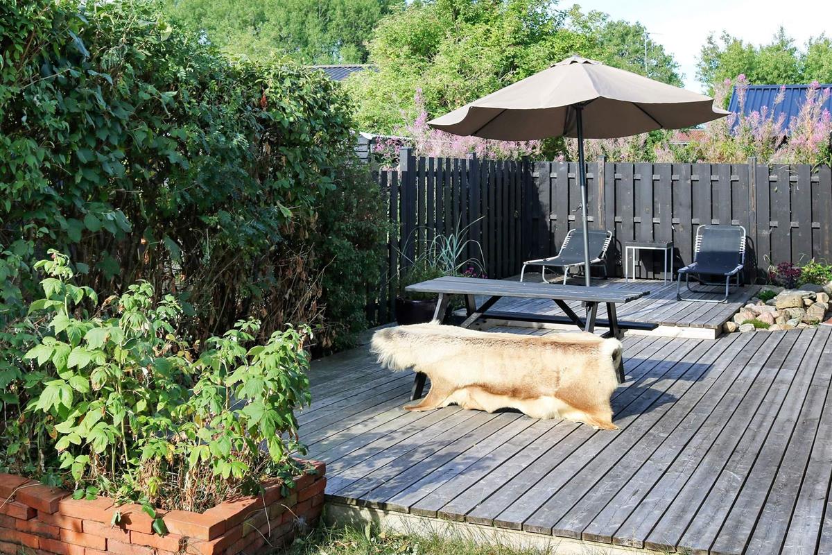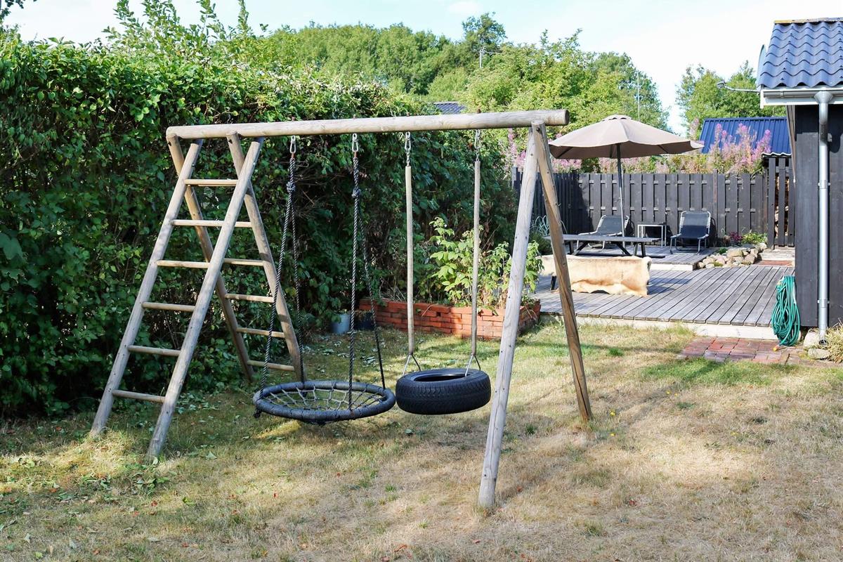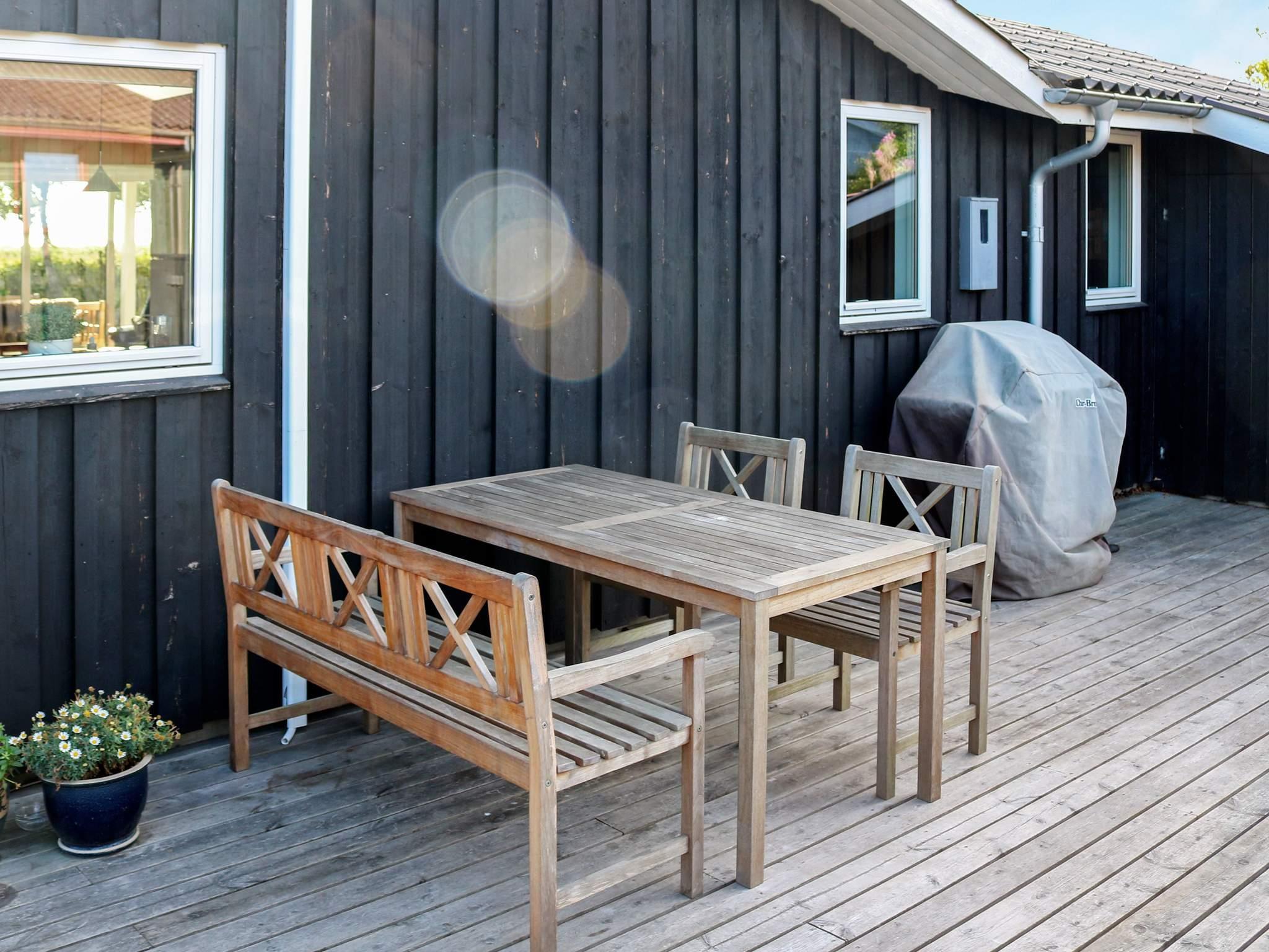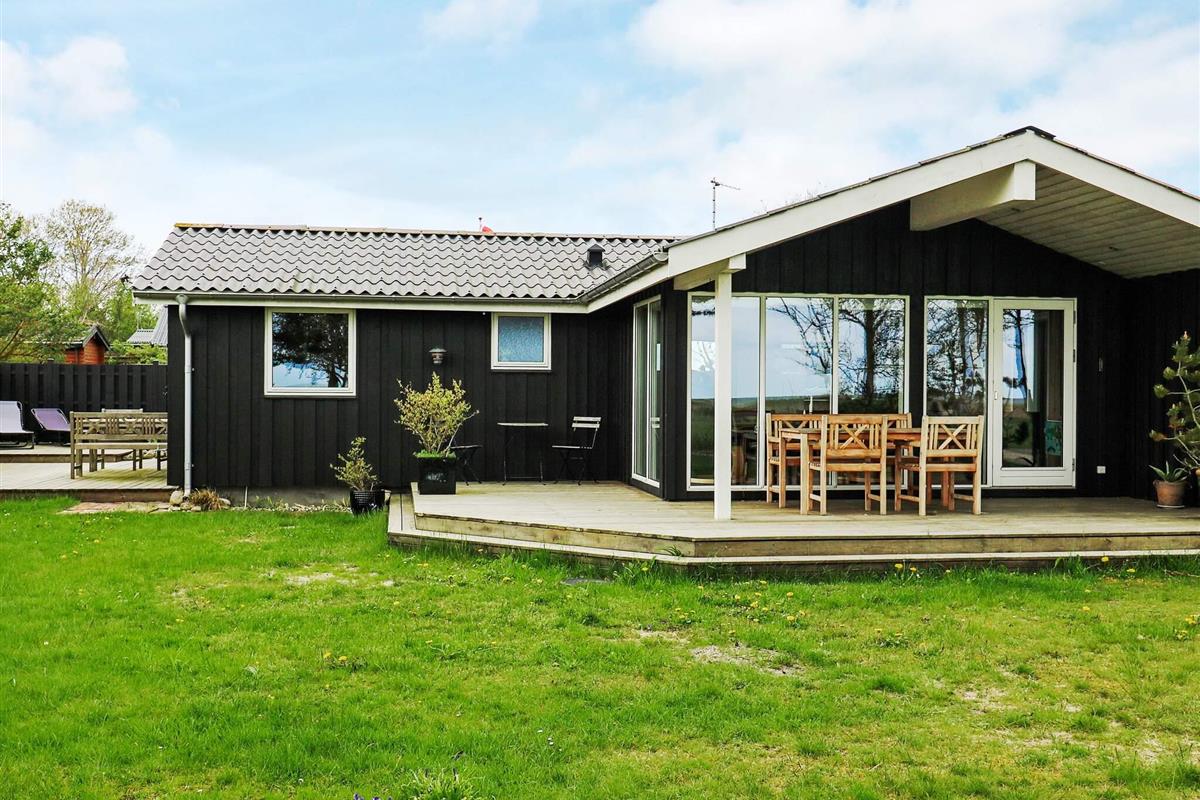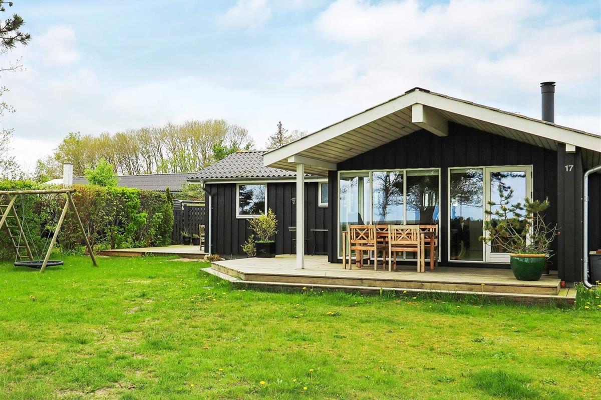 Mehrere Terrassenflächen umgeben das Haus, von denen die eine überdacht und zum Wasser und Innenhof ausgerichtet ist. Das Haus liegt am Ende eines kleinen Weges in einem ruhigen Ferienhausgebiet. Auf dem Grundstück gibt es Schaukeln, einen Sandkasten, eine Feuerstelle sowie viele gemütliche Sitzplätze.