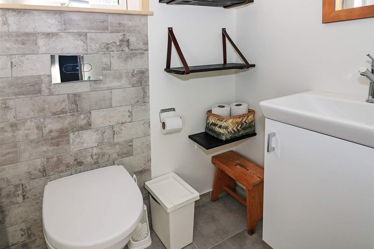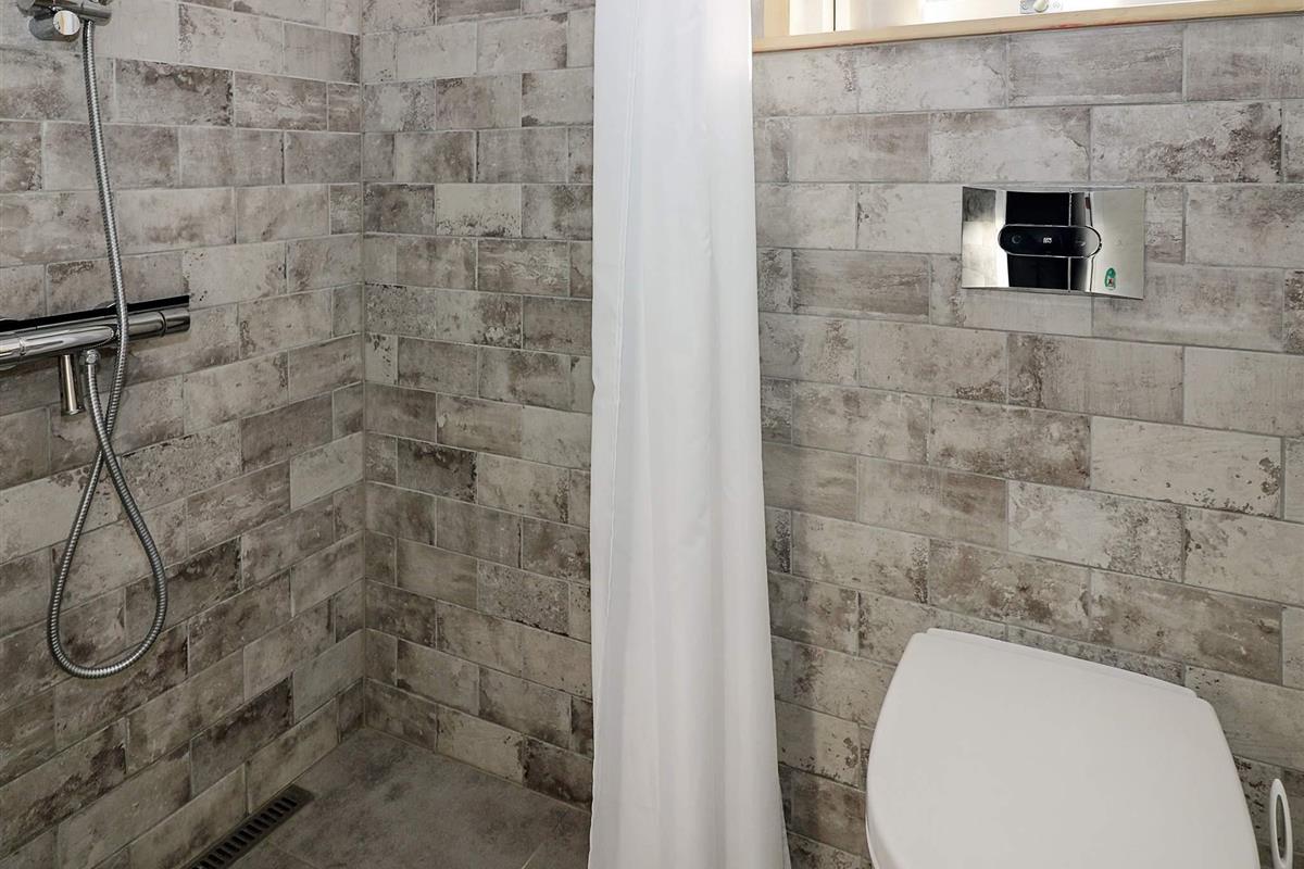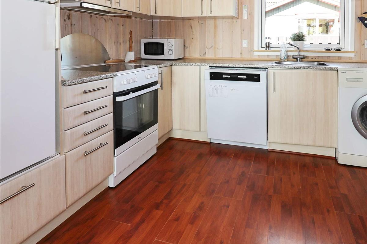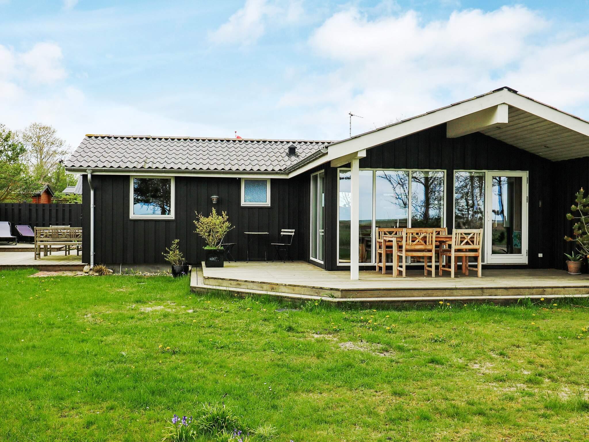 Mehrere Terrassenflächen umgeben das Haus, von denen die eine überdacht und zum Wasser und Innenhof ausgerichtet ist. Das Haus liegt am Ende eines kleinen Weges in einem ruhigen Ferienhausgebiet. Auf dem Grundstück gibt es Schaukeln, einen Sandkasten, eine Feuerstelle sowie viele gemütliche Sitzplätze.