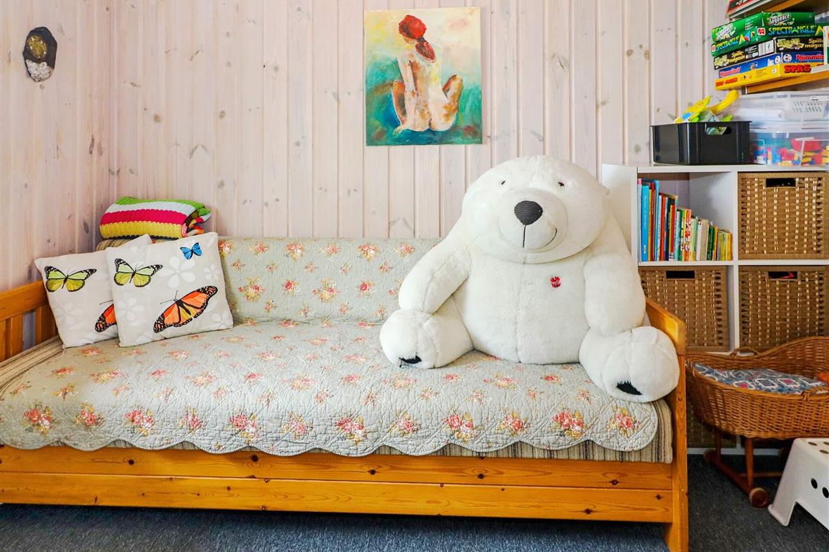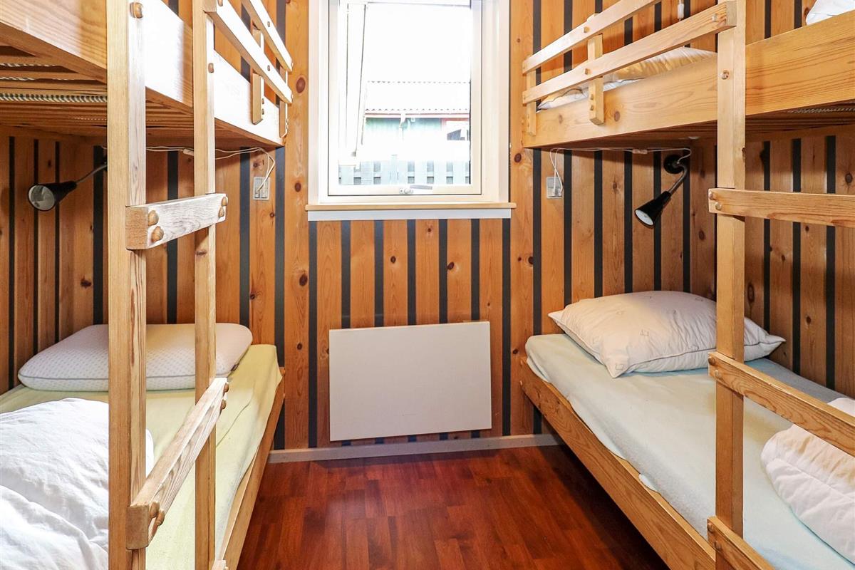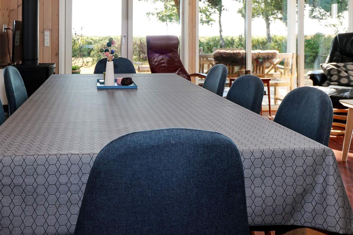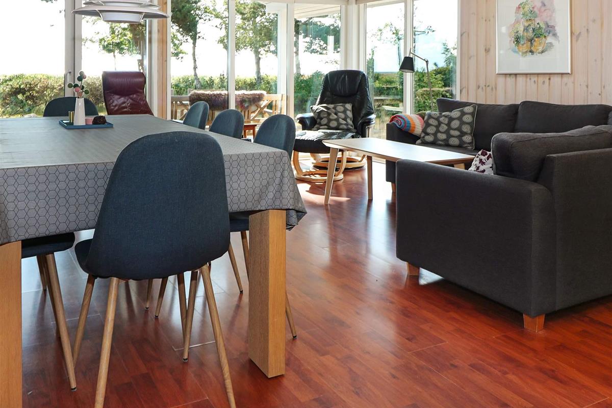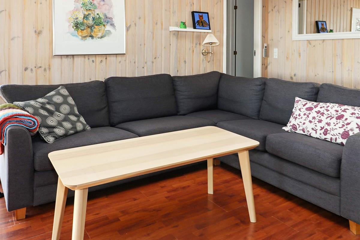 Schön gelegenes Ferienhaus in 1. Reihe zum Meer und einem kinderfreundlichen Sandstrand in Øster Hurup. Das helle Wohnzimmer mit schönem Wasserblick liegt in offener Verbindung mit der Küche. Weiterhin gibt es ein Bad, eine praktische Waschküche sowie zwei Schlafzimmer mit je einem Doppelbett, ein Zimmer mit zwei Etagenbetten und ein Zimmer mit einem Schlafsofa.