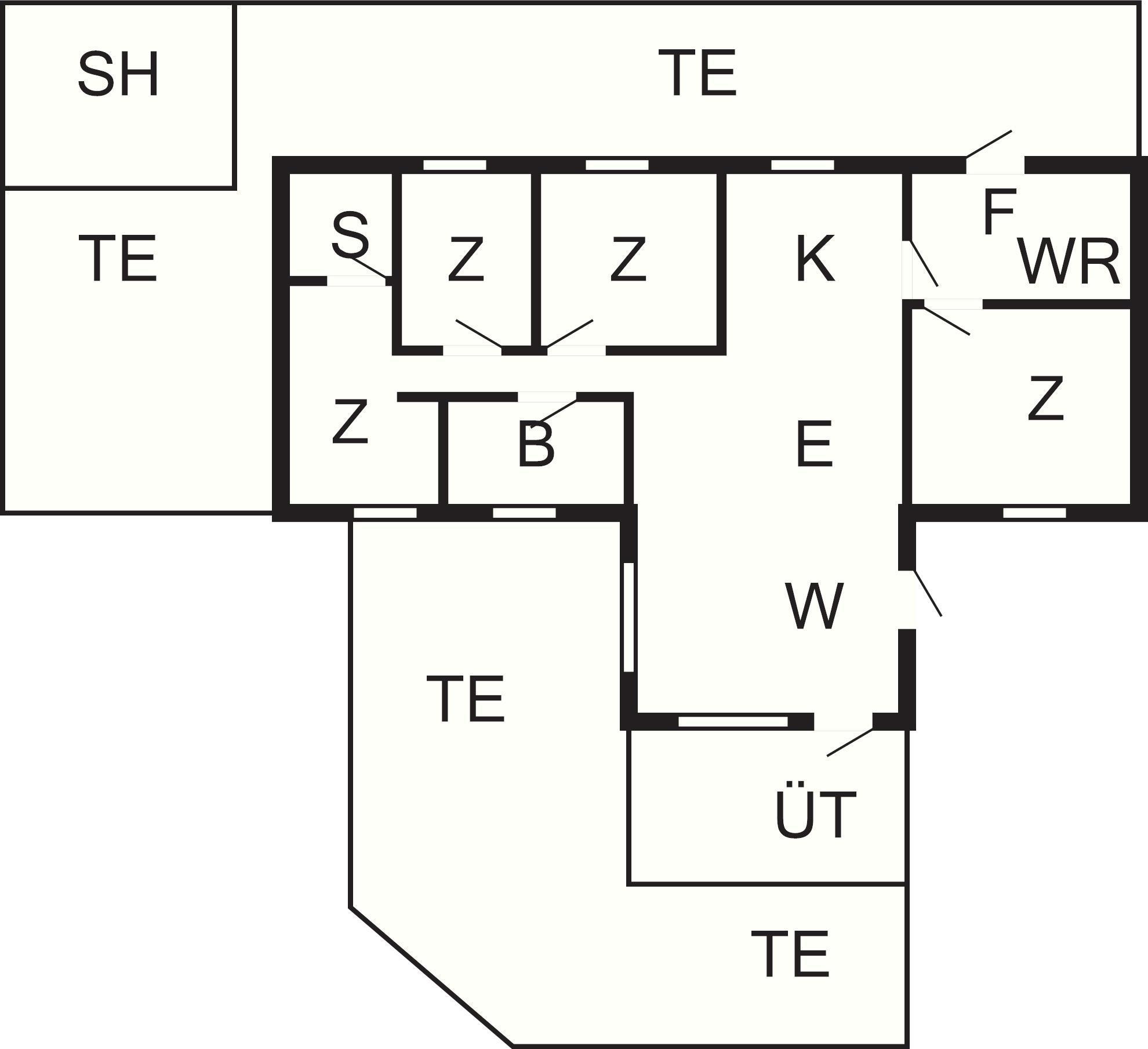 Bad: WC, Waschb., Dusche, Fußbodenheiz.