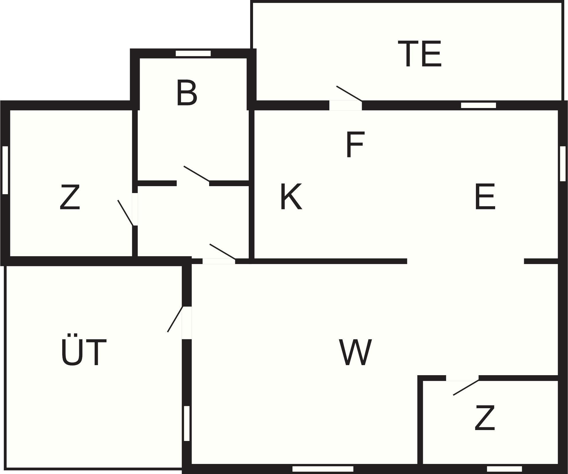 Off. Küche: E-Herd, Kühlschr. m. Gefrierfach, Mikrow., Abzugsh., Kaffeem., Waschm.