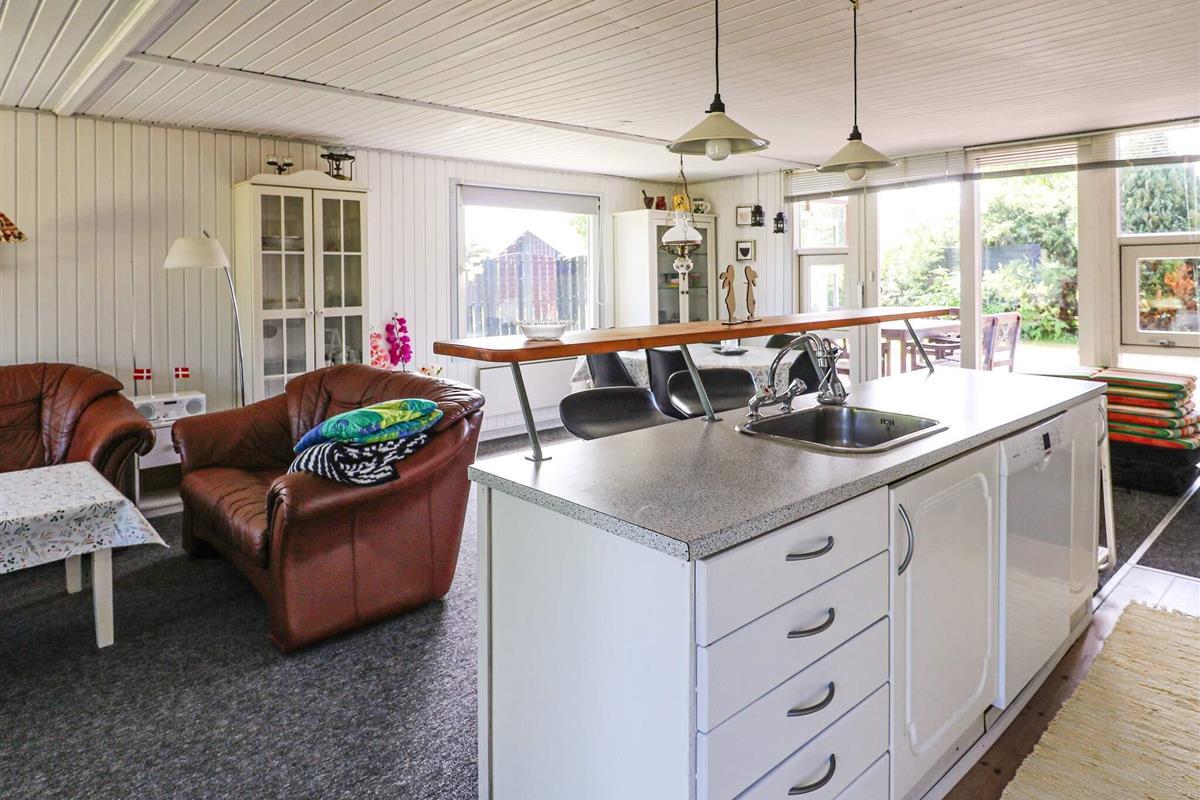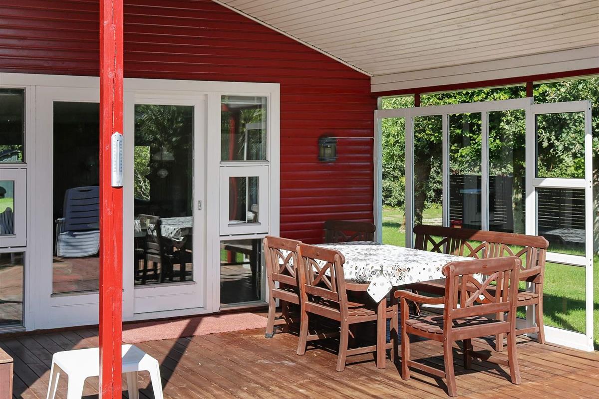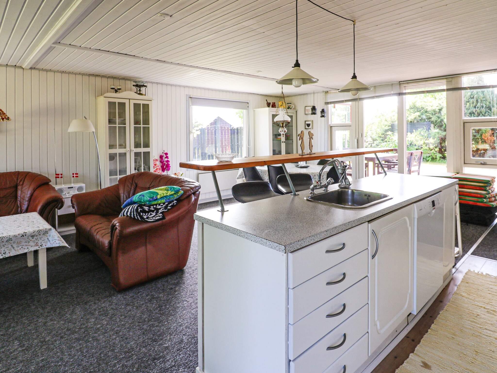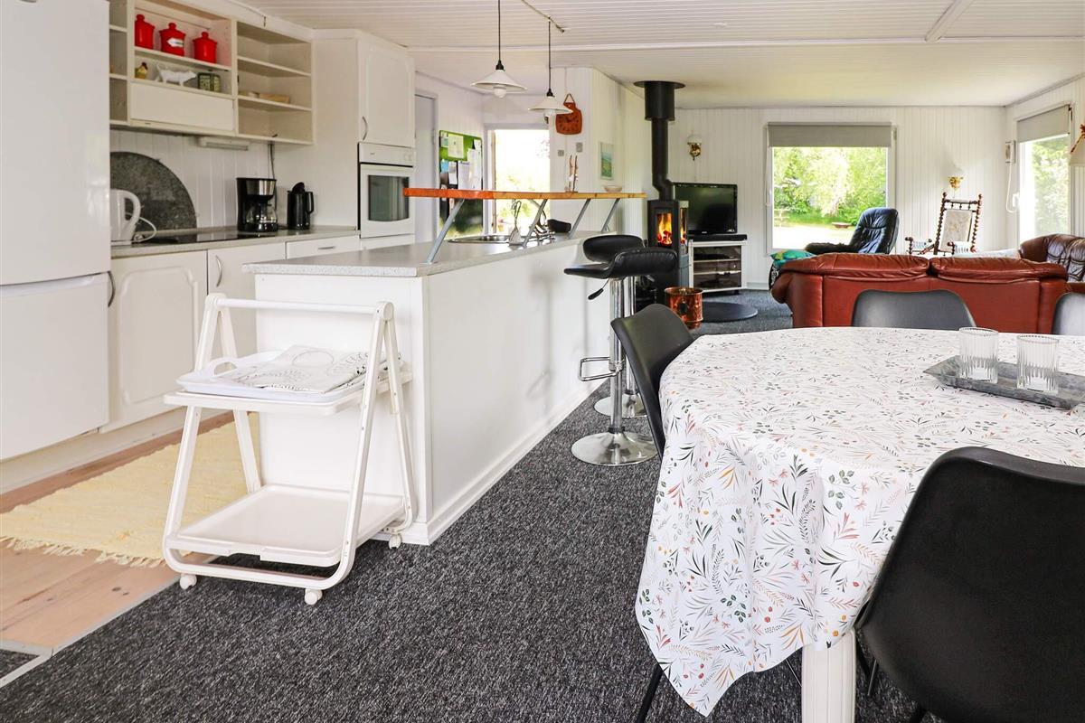 Ferienhaus in einem ruhigen Gebiet, von dem das Meer zu Fuß erreichbar ist. Sie können das Wasser vom Grundstück aus sehen. Im Innern des Hauses erwartet Sie ein helles, geräumiges Wohnzimmer, das offen mit Küche und Essplatz verbunden ist. Außerdem gibt es ein Schlafzimmer mit Doppelbett und eines mit 3/4 Bett und zwei Kojenbetten. Bad mit Badewanne und Dusche. Der Garten ist ungestört und verfügt über teilweise überdachte Terrassenfläche mit Gartenmöbeln sowie einen Sandkasten für Kinder.