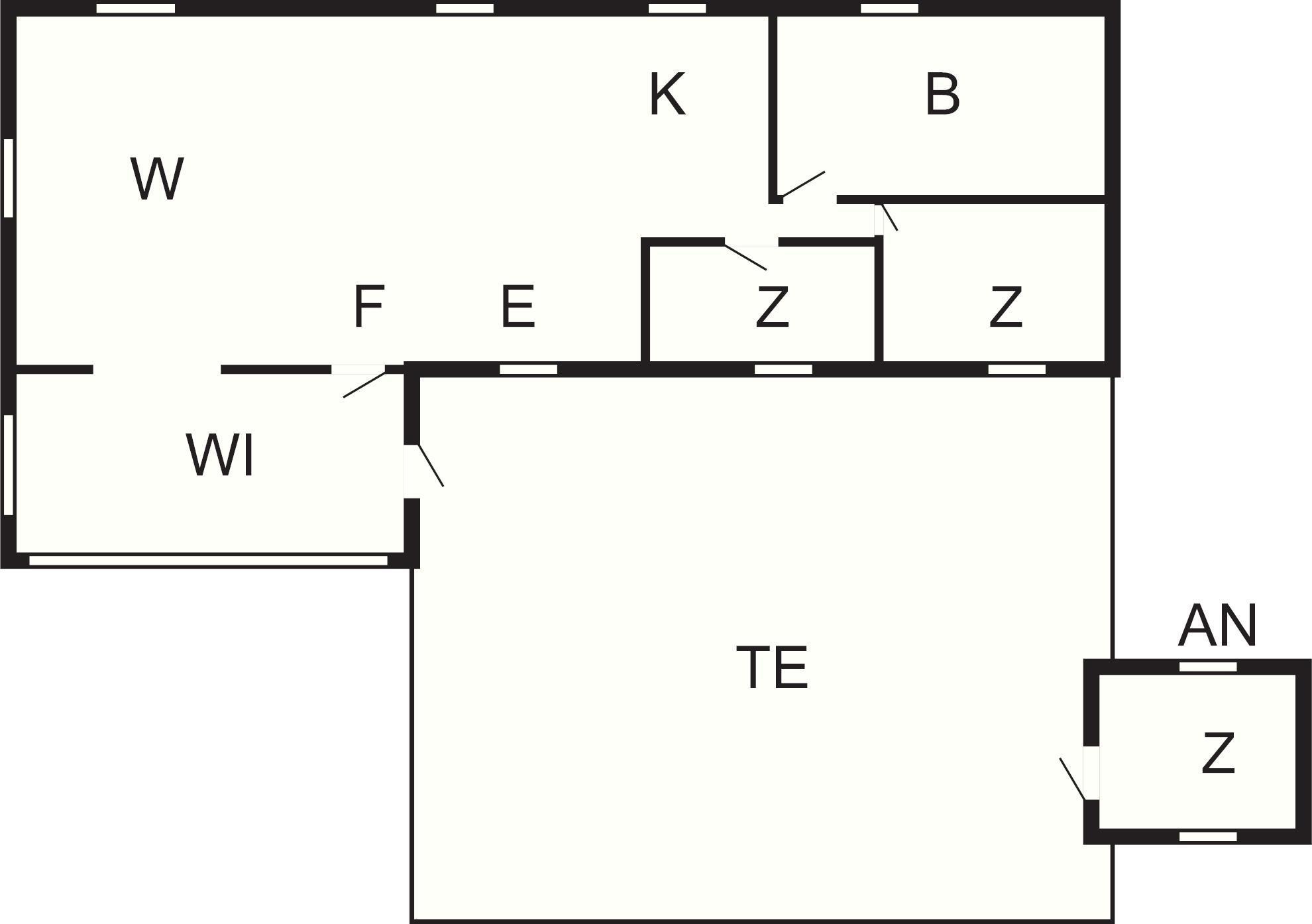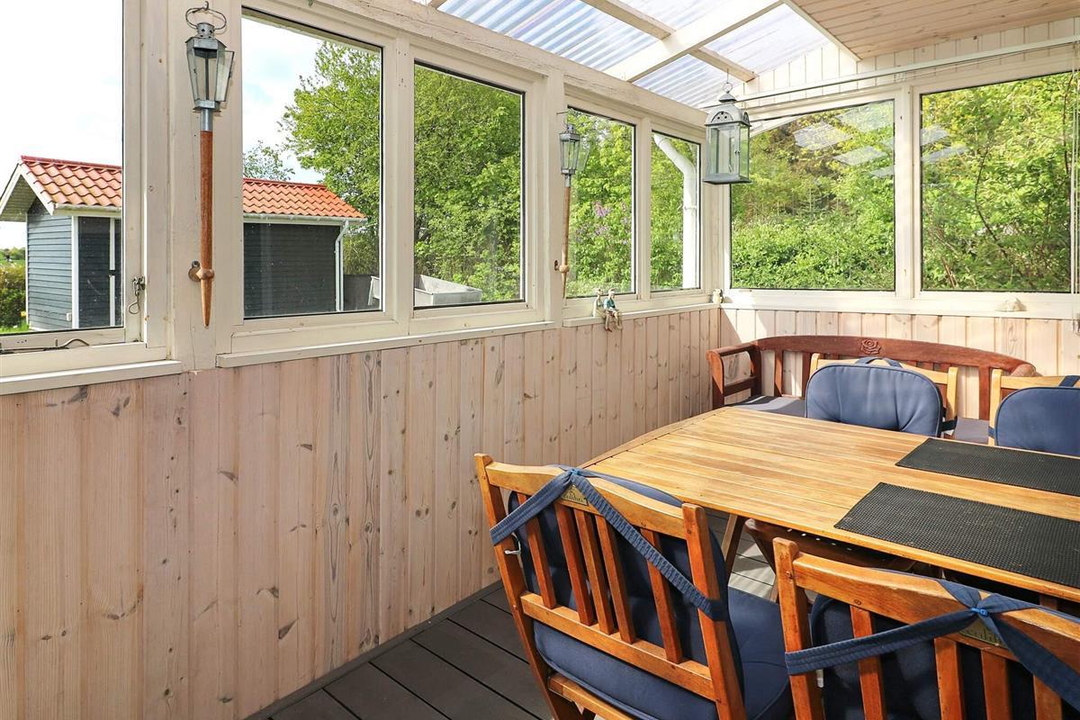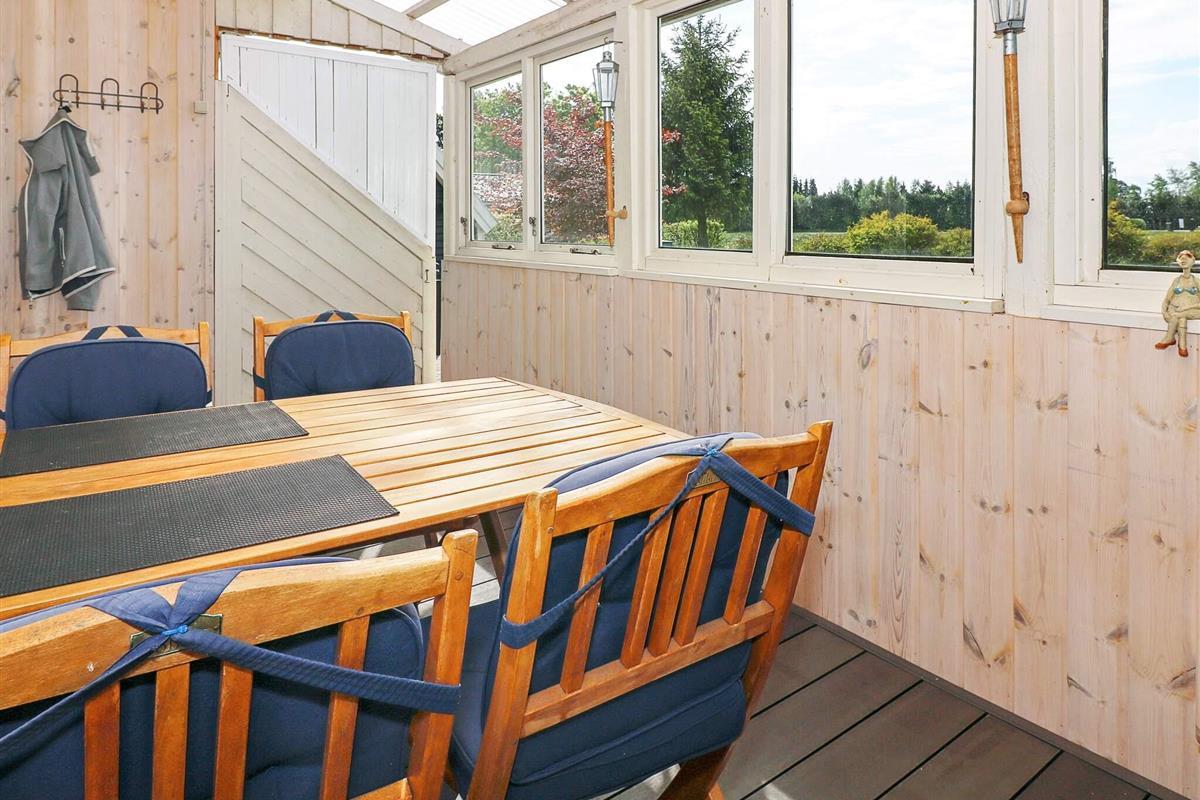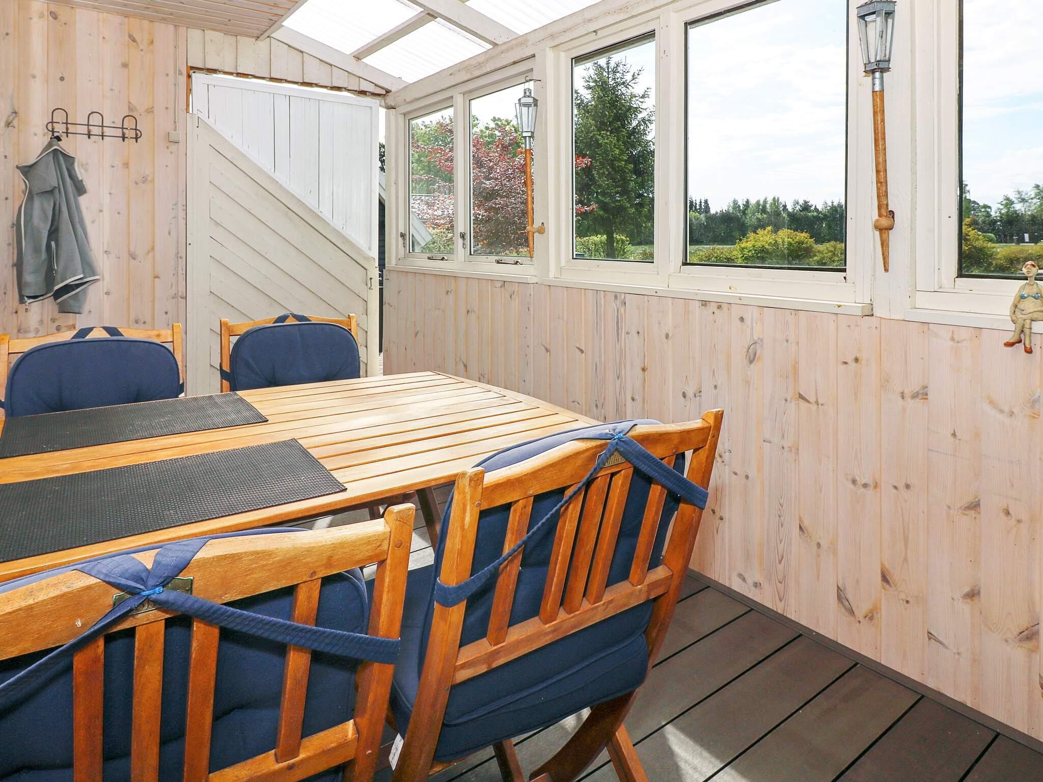 Im Anschluss an die Terrassenfläche steht ein kleiner Annex mit zwei weiteren Schlafplätzen. Von der verglasten Veranda und der Terrasse aus genießen Sie schönen Ausblick zu den umliegenden Feldern.