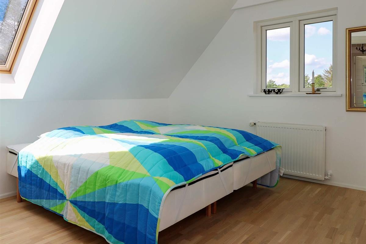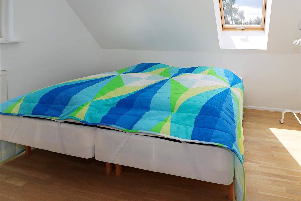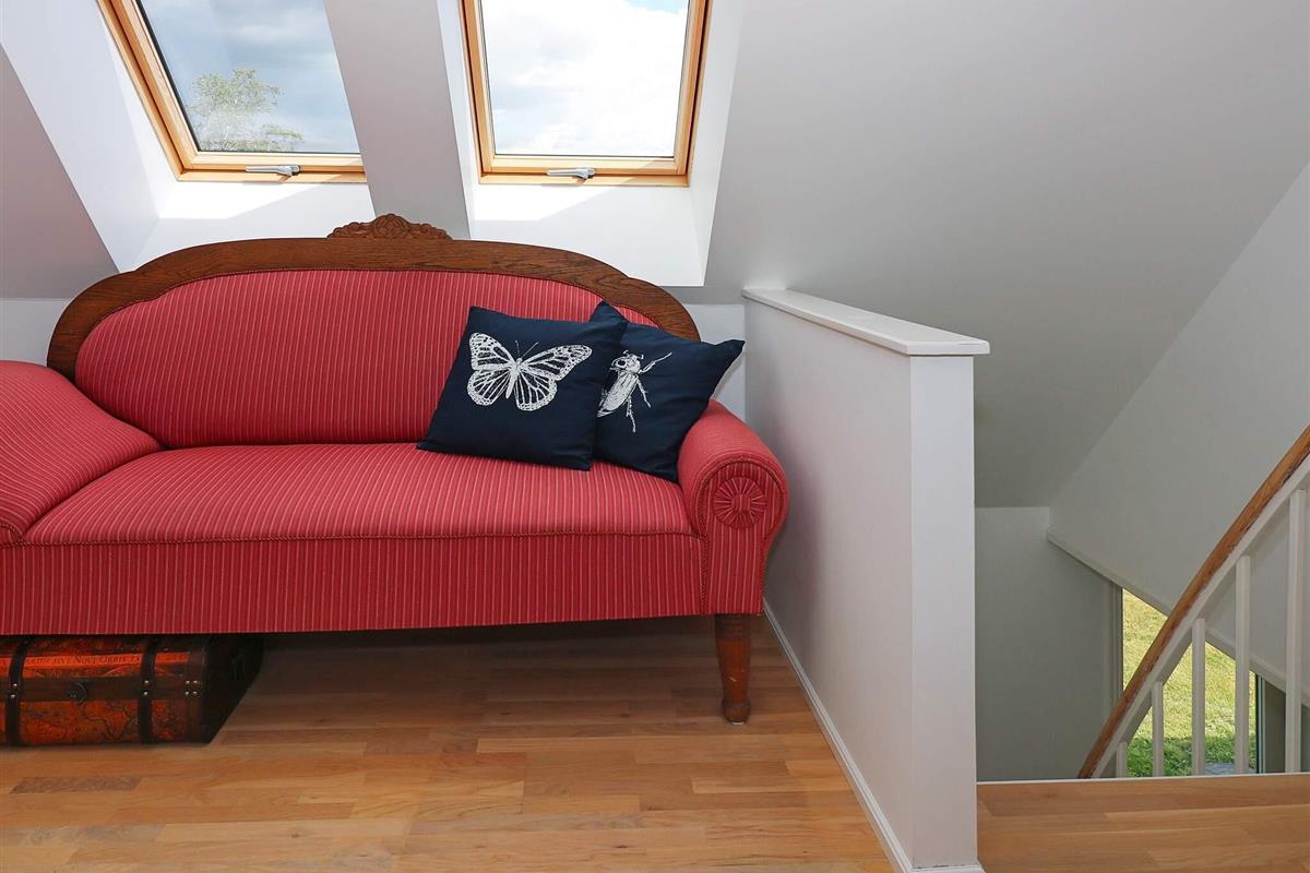 Vom Eingangsbereich führt eine Treppe hinauf ins Dachgeschoss, wo sich die beiden anderen Schlafzimmer und ein kleinerer Aufenthaltsbereich befinden.