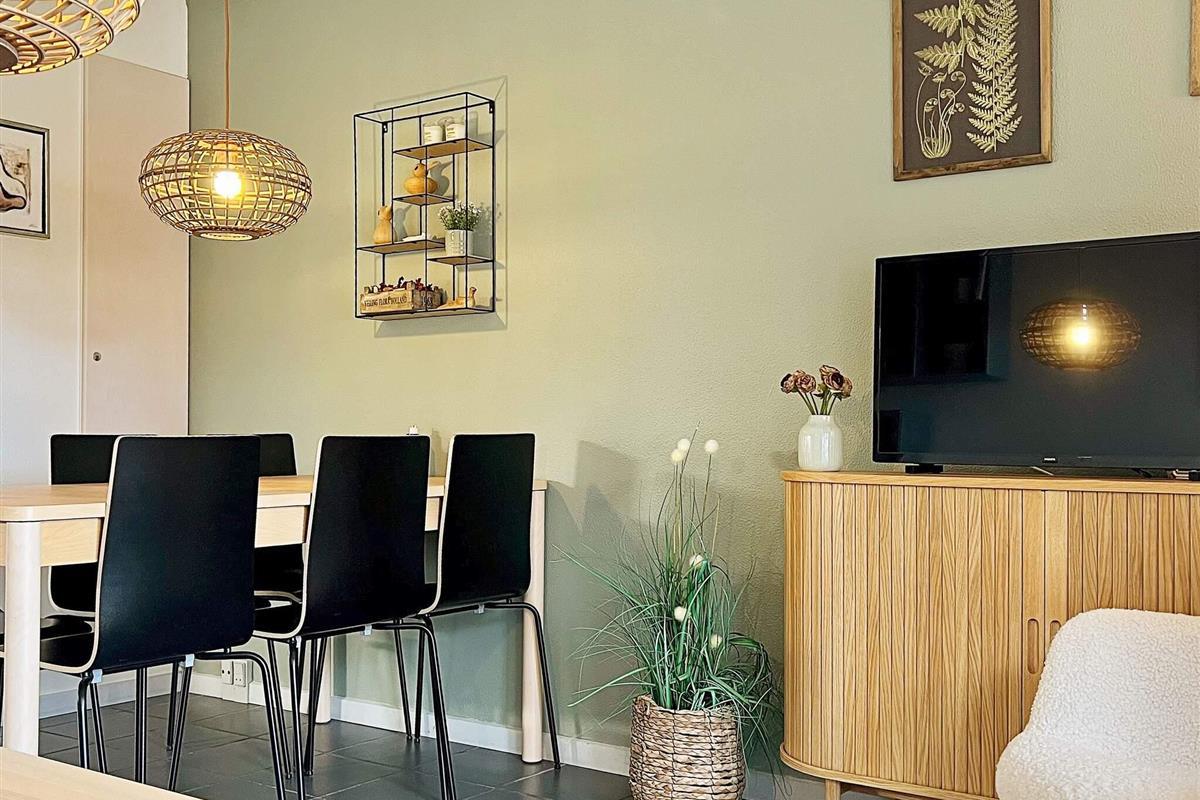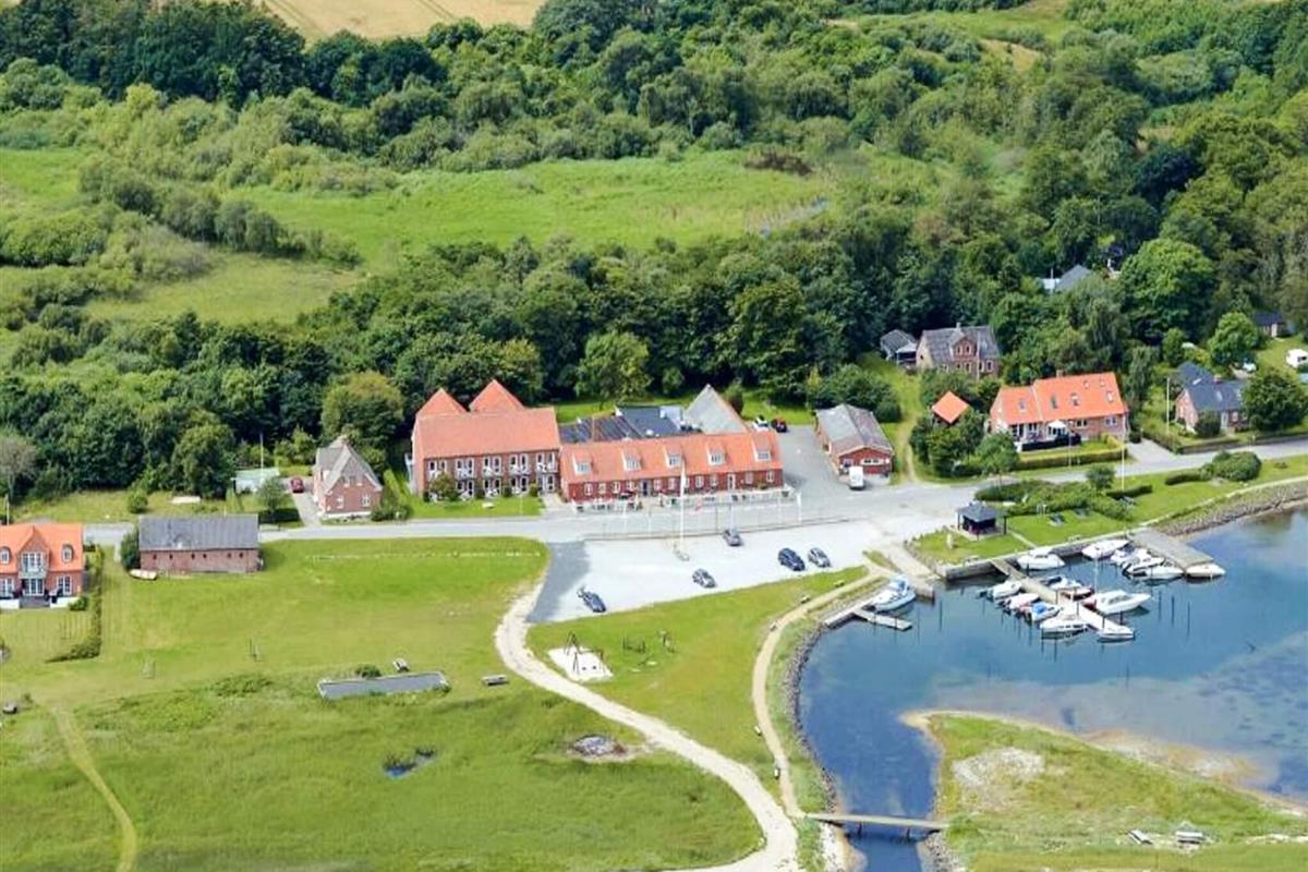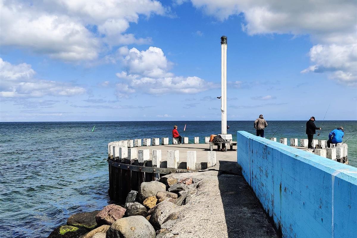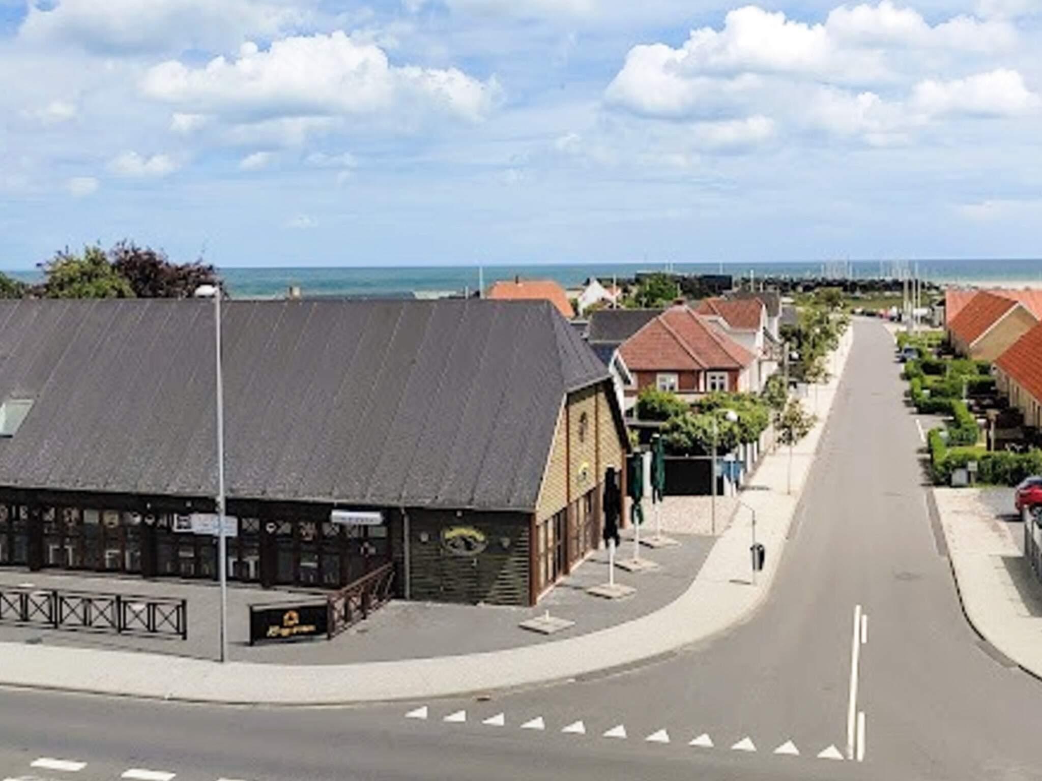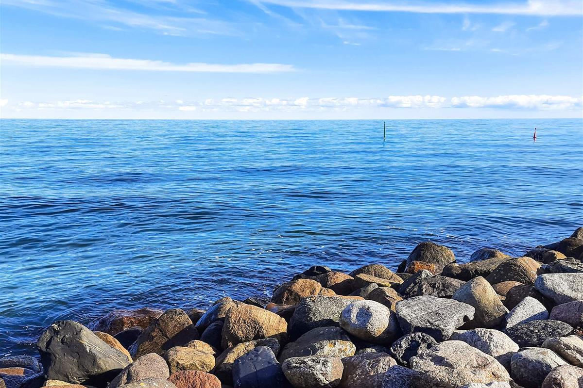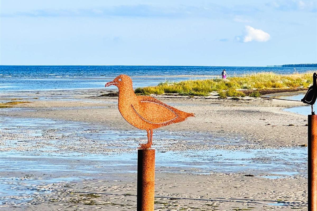 Ferienwohnung mit Meerblick und zugleich besonders attraktiver Lage im Ort, direkt neben dem kinderfreundlichen Strandufer sowie unweit des kleinen Hafens und des Ortskerns von Øster Hurup.