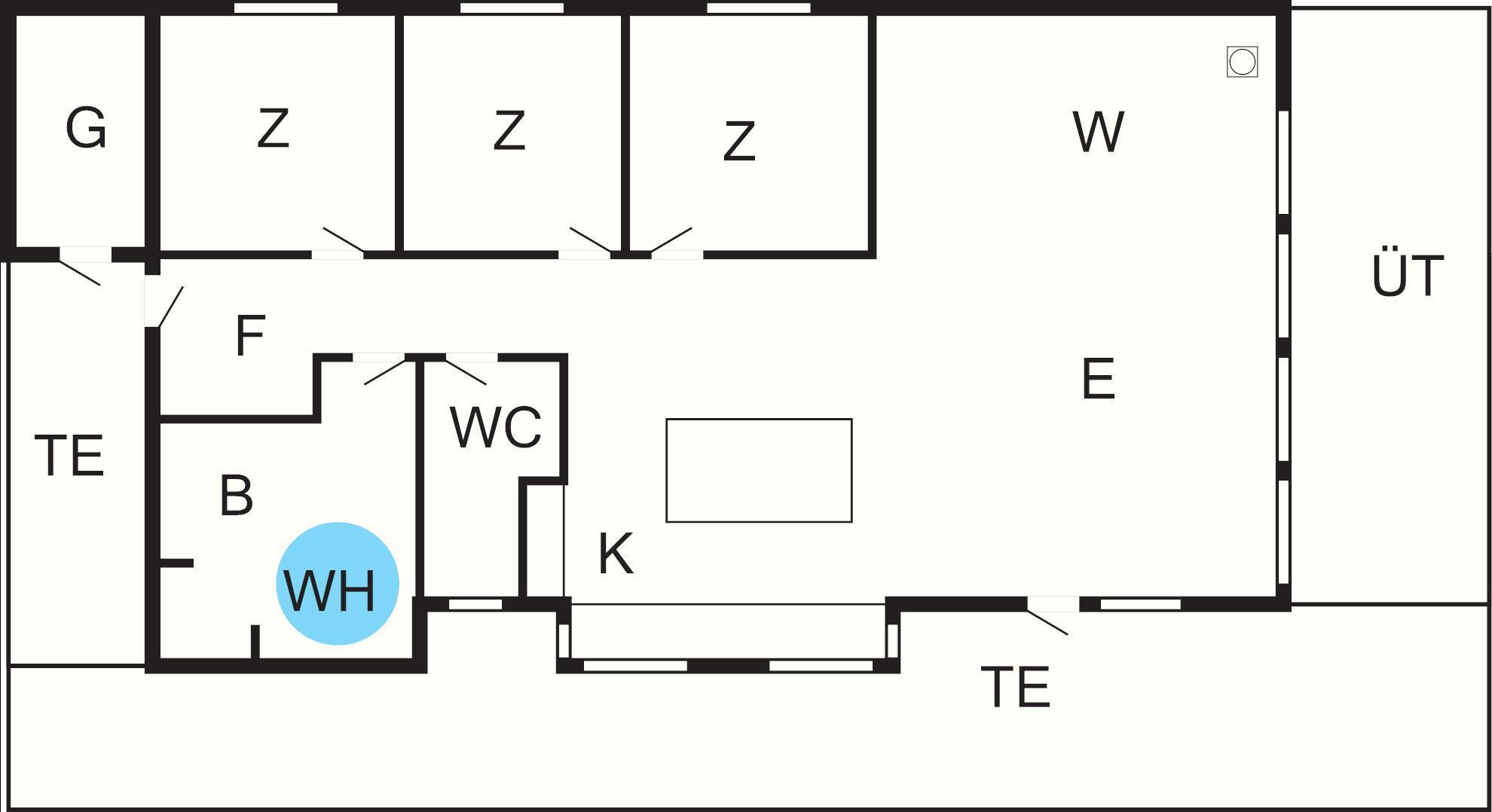 Bad: WC, Waschb., Dusche, Fußbodenheiz.